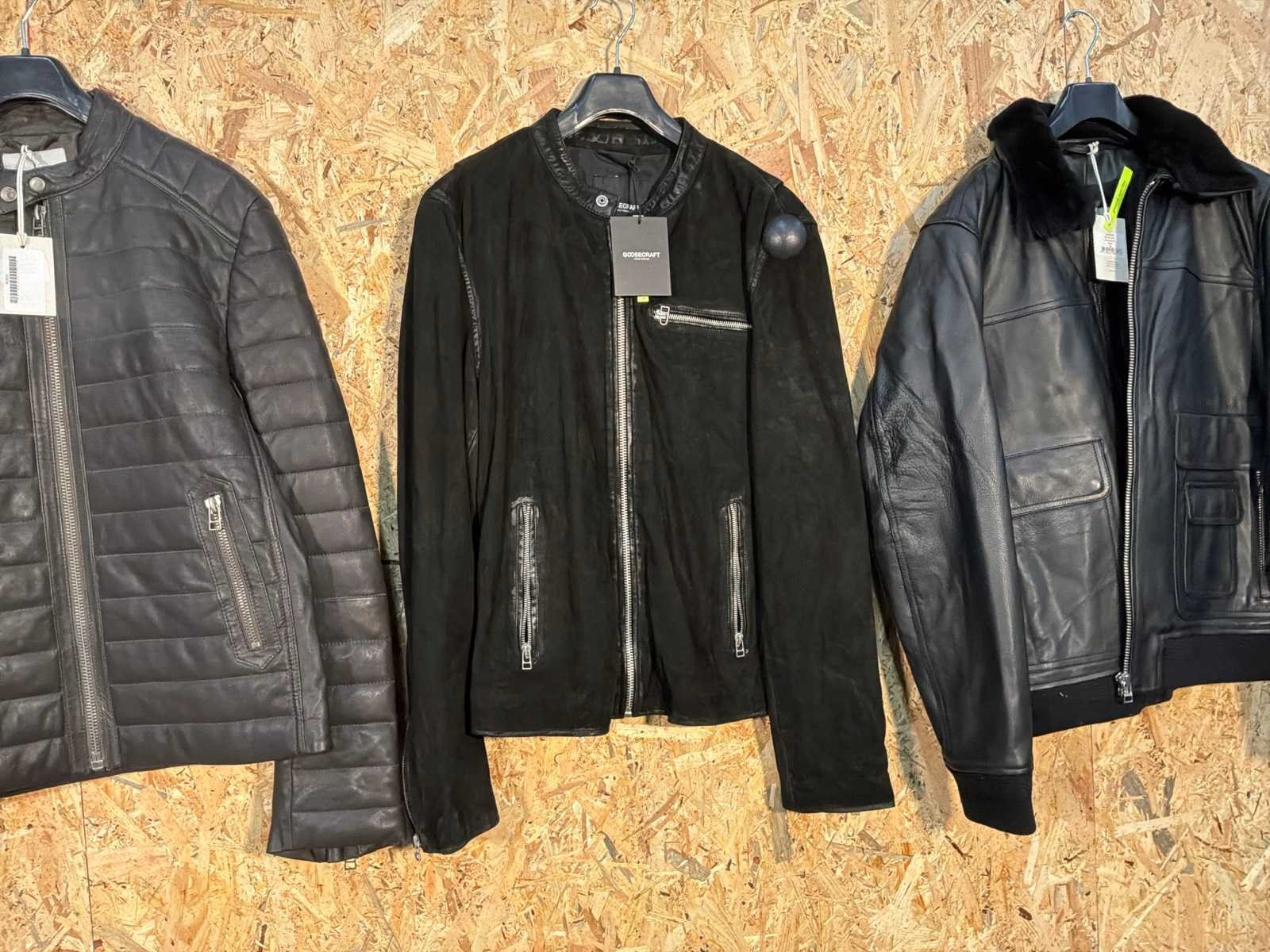Diverse leren heren/dames jassen in verschillende modellen, kleuren en maten. Inclusief kledinghangers. Mochten erop de items beveiligingstags zitten worden deze nog verwijderd voor de uitleverdag. Merk: Goose-craft