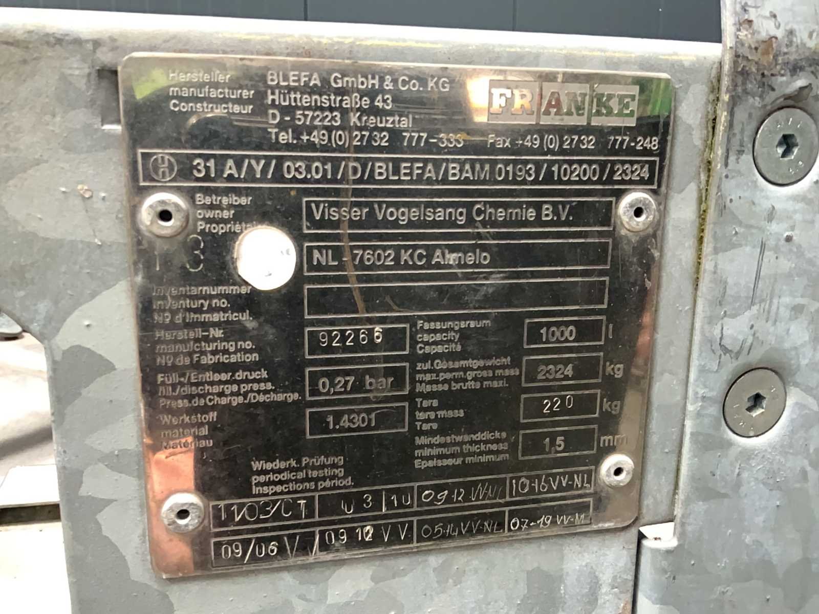 Inhoud: 1000 liter. Merk: Franke Totale afmeting Breedte: 1000mm Mixer: true Mangat: true Capaciteit.: 1000l Eigen gewicht: 2324kg Totale afmeting L: 1200mm Rvs: true Totale afmeting Hoogte: 2100mm