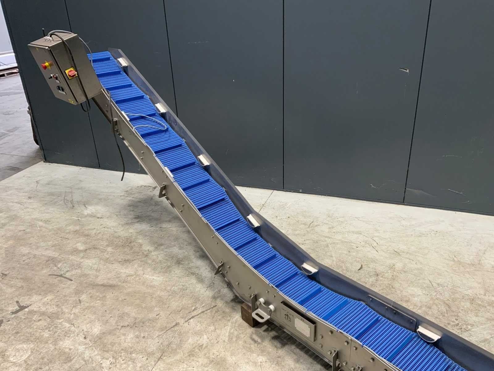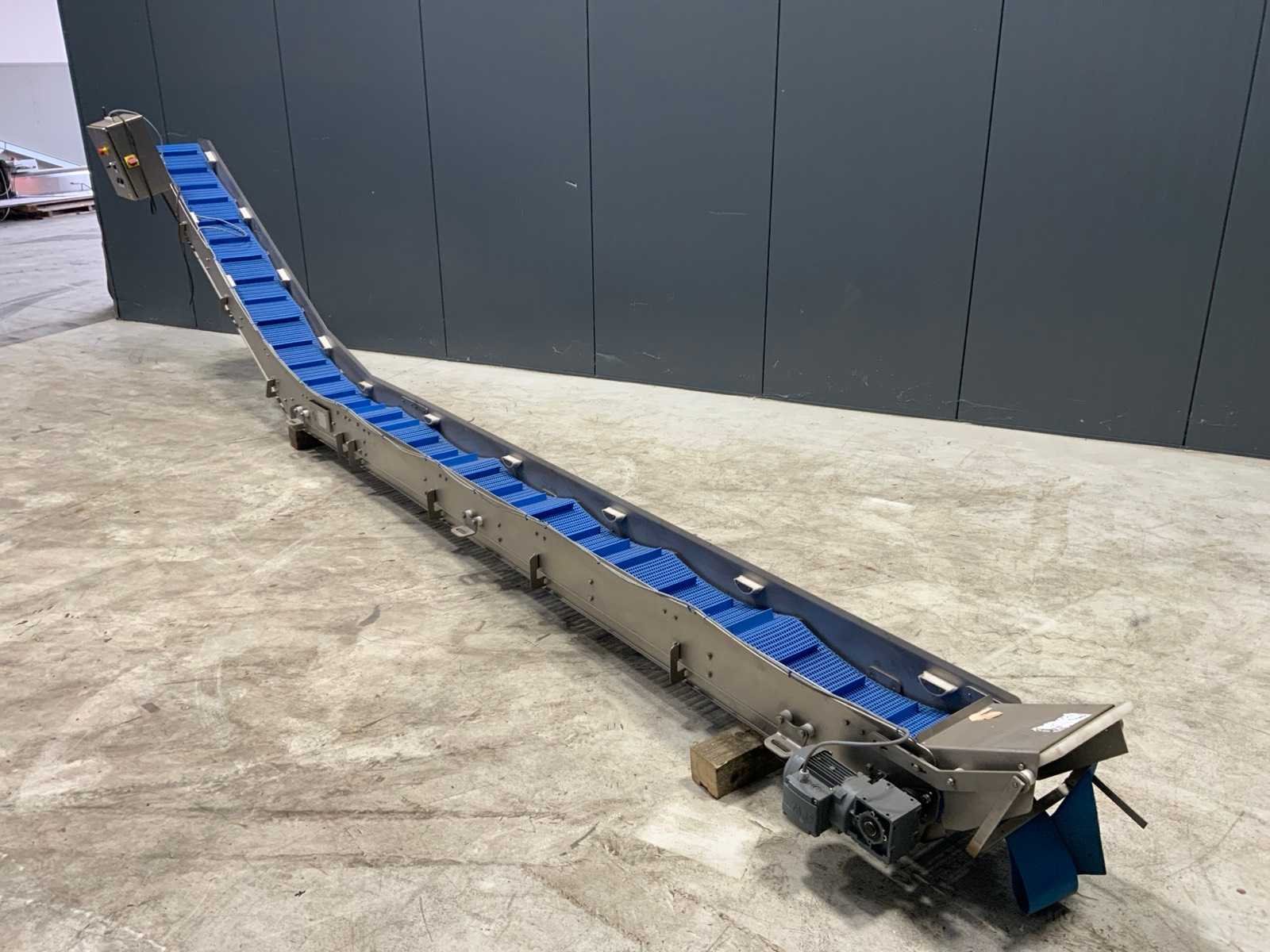 Voorzien van SEW aandrijving. Merk: Intocon Bouwjaar: 2015 Band afm. l: 5700mm Band afm. b: 280mm Totale afmeting L: 5700mm Totale afmeting Breedte: 500mm Totale afmeting Hoogte: 1400mm