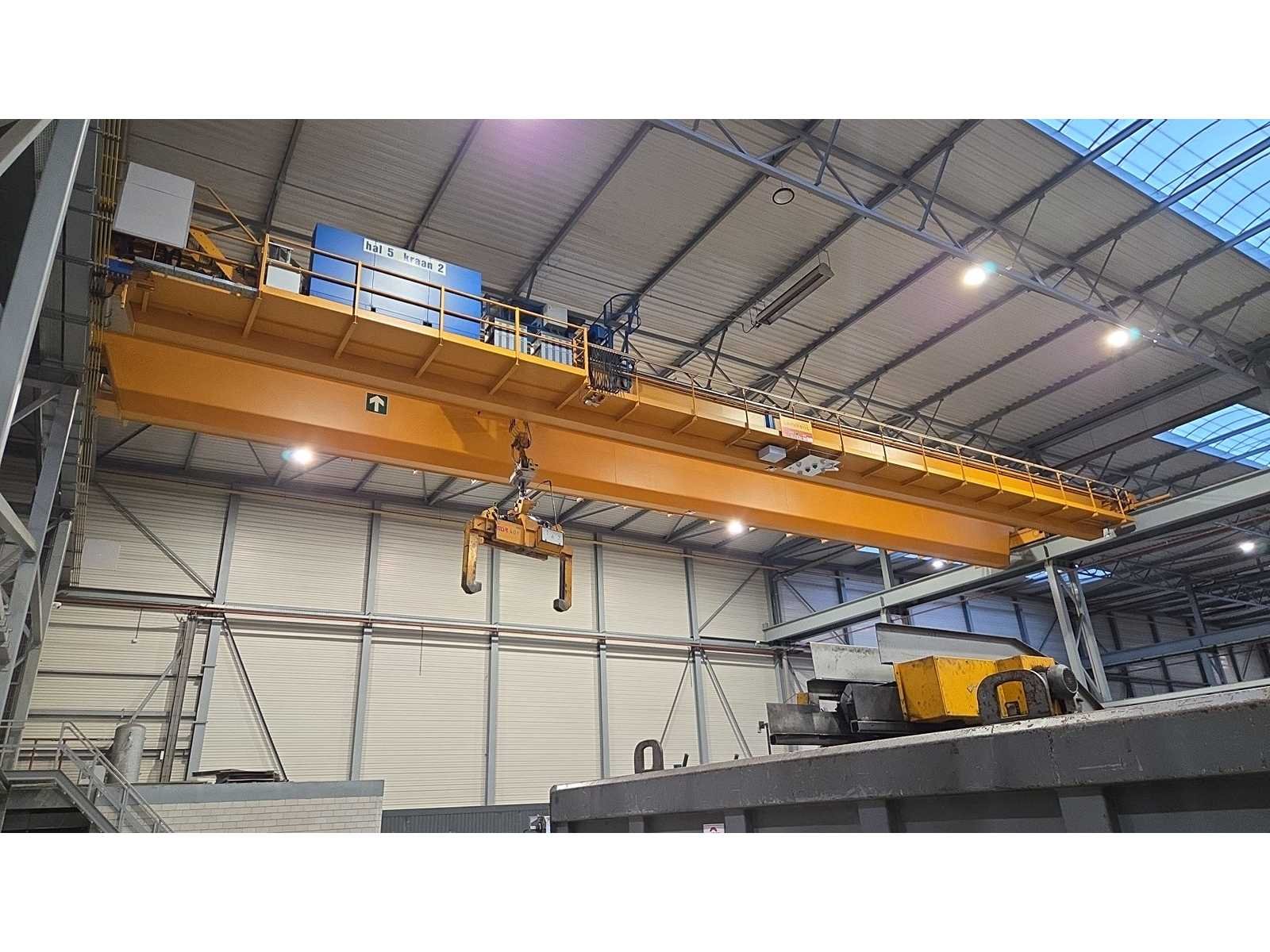 Voorzien van ramshoorn haak, frequentie regeling voor kraan rijden en hijsen/zakken, Abus joystick bediening, kraanboek en complete geschiedenis aanwezig, Let op: coil volg systeem + hijsmaterialen/klemmen + stroomafnemer niet inbegrepen, kavel betreft kraan 1 in hal 1 Merk: Abus/Lemmens Type: 40.000 KG x 28,80 m Bouwjaar: 2007 Hijsvermogen: 40000kg Max. hijshoogte: 15m Dubbelligger: true Draadloze afstandsbediening: true Met kraanboek: true Eigen gewicht: 38500kg