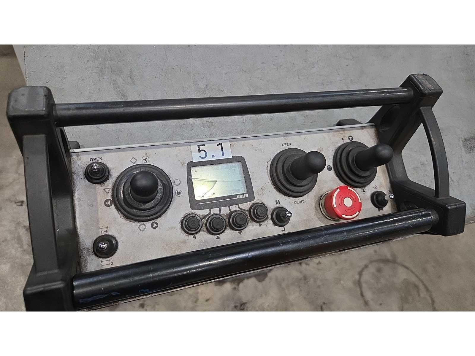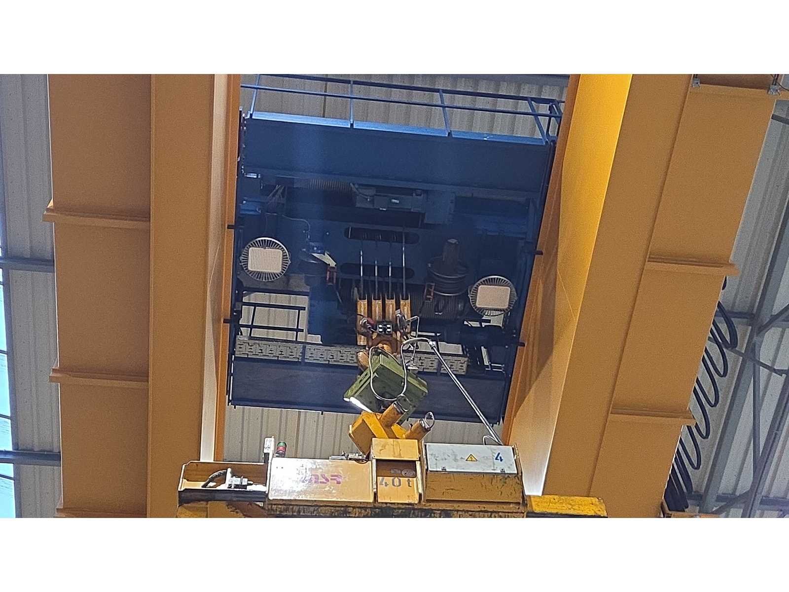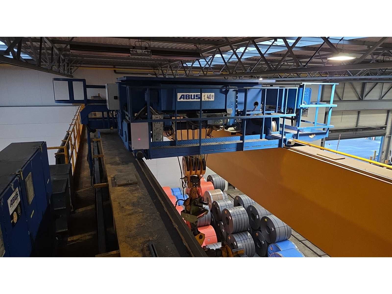 Voorzien van ramshoorn haak, frequentie regeling voor kraan rijden en hijsen/zakken, Abus joystick bediening, kraanboek en complete geschiedenis aanwezig, Let op: coil volg systeem + hijsmaterialen/klemmen + stroomafnemer niet inbegrepen, kavel betreft kraan 2 in hal 4 Merk: Abus/Lemmens Type: 40.000 KG x 28,80 m Bouwjaar: 2007 Hijsvermogen: 40000kg Max. hijshoogte: 15m Dubbelligger: true Draadloze afstandsbediening: true Met kraanboek: true Eigen gewicht: 38500kg