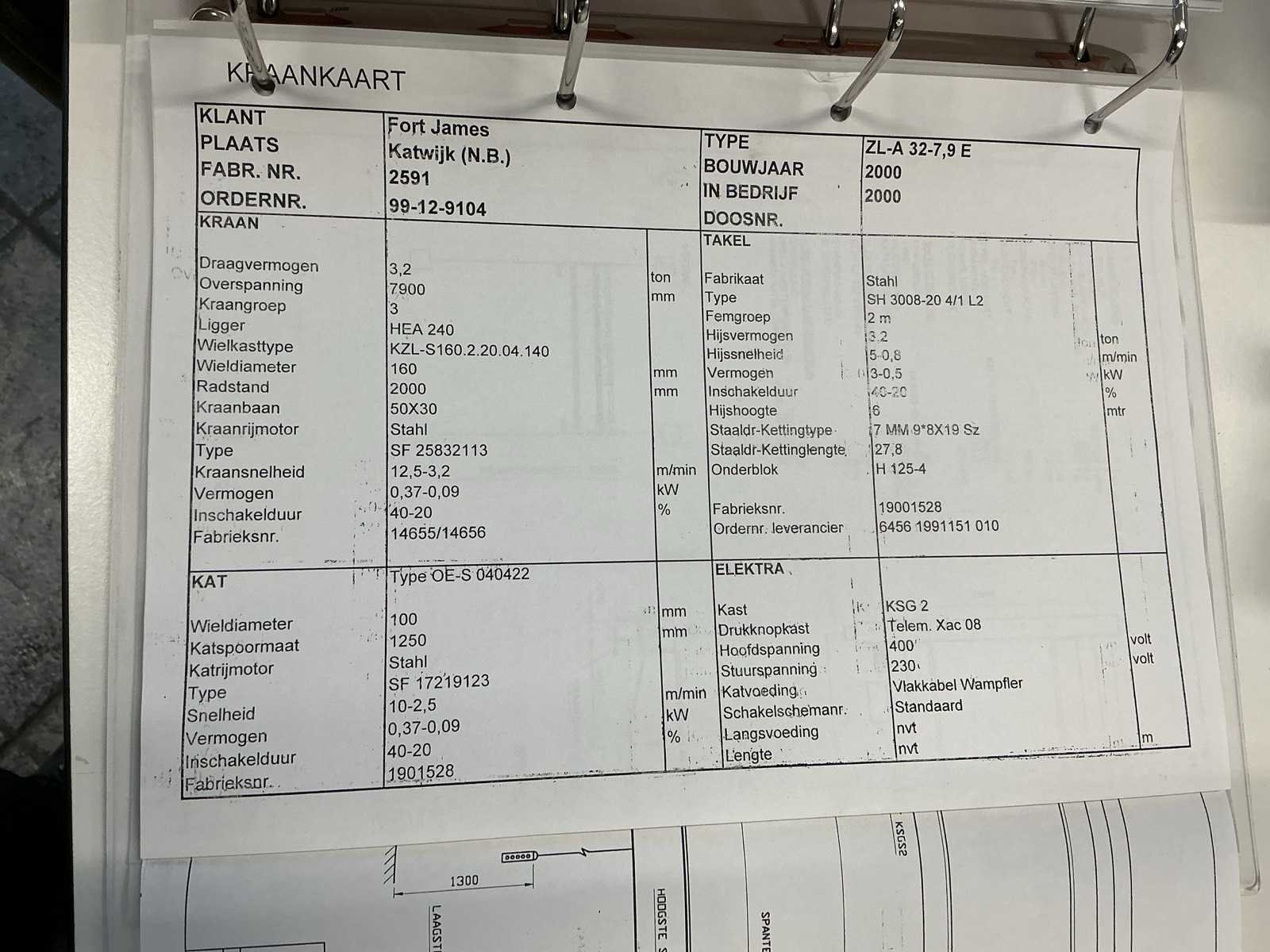 Voorzien van bedrade afstandsbediening, kat met takel in 2019 vernieuwd, kraanboek aanwezig Merk: Stahl Type: 3.200 KG x 7,90 m Bouwjaar: 2000 Serienummer: 2591 Overspanning: 7.9m Hijsvermogen: 3200kg Max. hijshoogte: 6m Dubbelligger: true Met kraanboek: true Totale afmeting L: 8000mm Totale afmeting Breedte: 2310mm