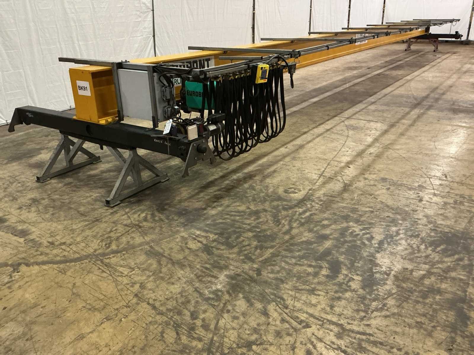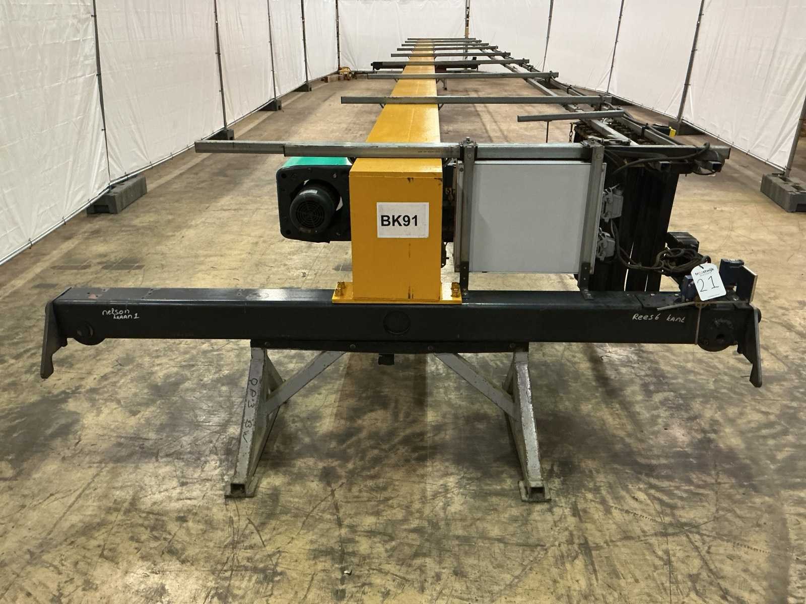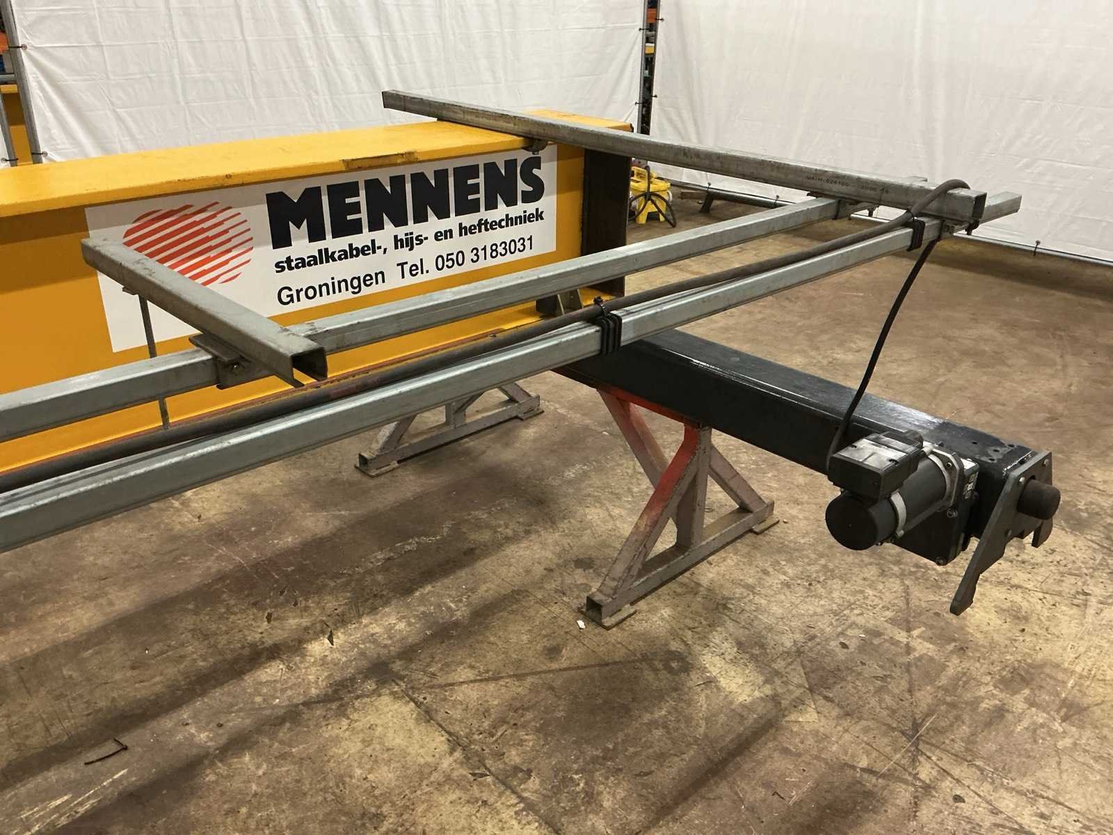 Voorzien van radiografische besturing, kraanboek en complete geschiedenis aanwezig, Merk: Verlinde Type: 3.200 KG x 14,25 m Bouwjaar: 2006 Serienummer: 1424 Overspanning: 14.25m Hijsvermogen: 3200kg Max. hijshoogte: 6m Draadloze afstandsbediening: true Met kraanboek: true Totale afmeting L: 14500mm Totale afmeting Breedte: 2420mm
