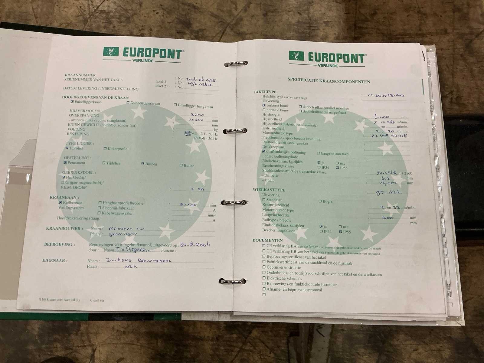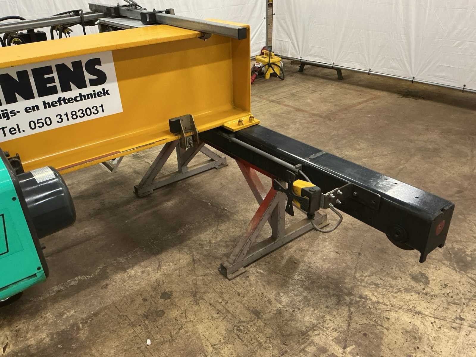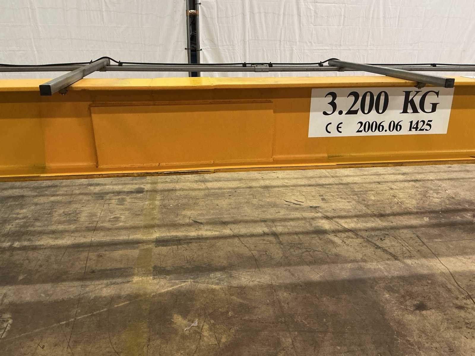 Voorzien van radiografische besturing, kraan is ooit ingekort en later weer verlengd, kraanboek en complete geschiedenis aanwezig, Merk: Verlinde Type: 3.200 KG x 14,47 m Bouwjaar: 2006 Serienummer: 1425 Overspanning: 14.47m Hijsvermogen: 3200kg Max. hijshoogte: 6m Draadloze afstandsbediening: true Met kraanboek: true Totale afmeting L: 14500mm Totale afmeting Breedte: 2390mm