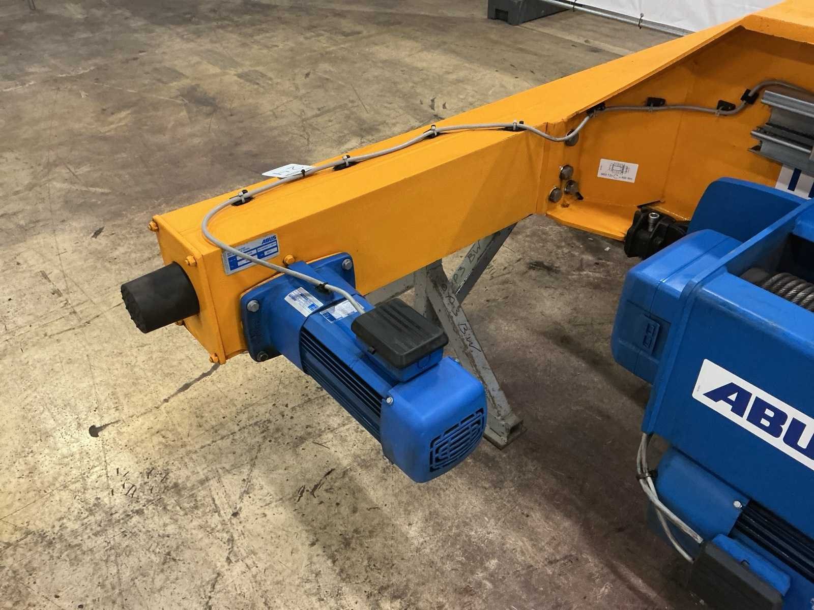 Voorzien van bedrade bediening, geen kraanboek bijgesloten, Merk: Abus Type: 12.500 KG x 5,74 m Bouwjaar: 2011 Serienummer: 110-014358 Overspanning: 5.74m Hijsvermogen: 12500kg Max. hijshoogte: 6m Totale afmeting L: 6000mm Totale afmeting Breedte: 2250mm