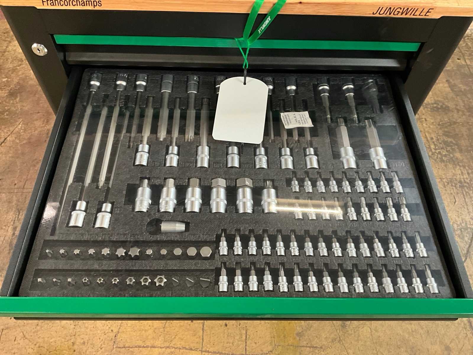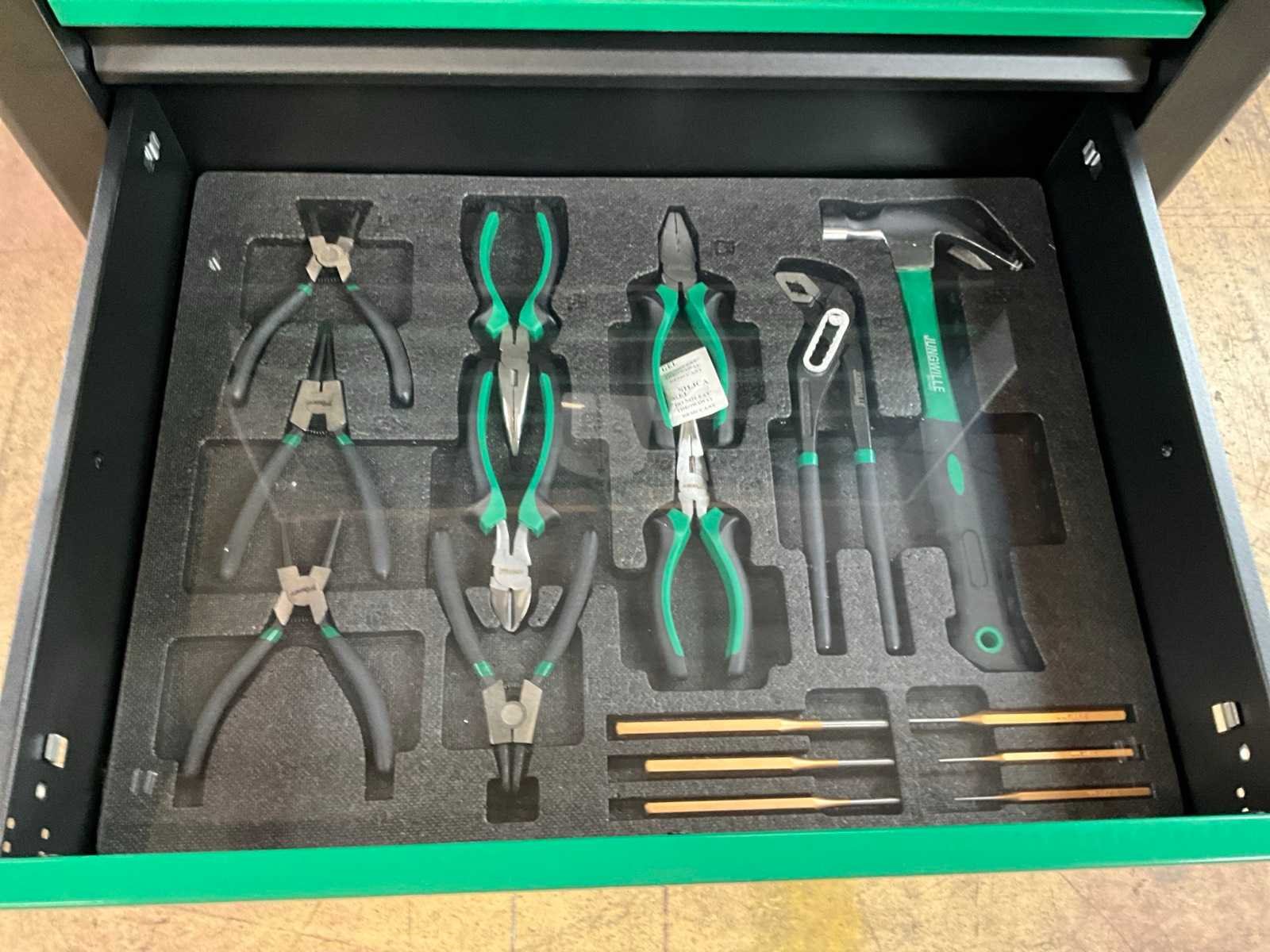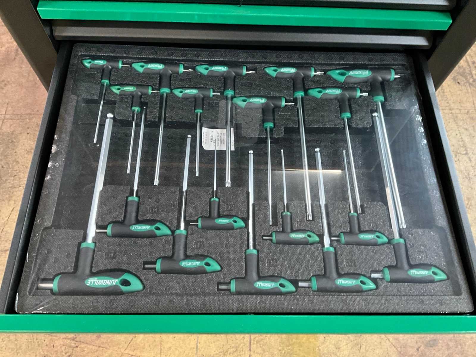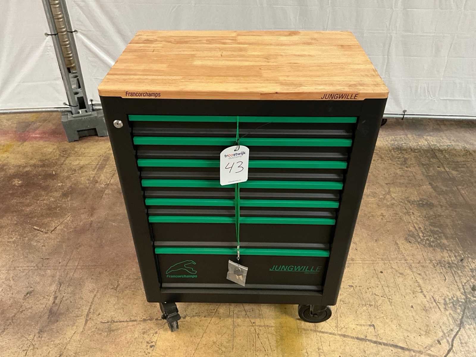 Nieuwe gereedschapswagen compleet gevuld, lades gelagerd, Merk: Jungwille Type: Francorchamps Aantal laden: 7 Met inhoud: true Totale afmeting L: 700mm Totale afmeting Breedte: 450mm Totale afmeting Hoogte: 970mm