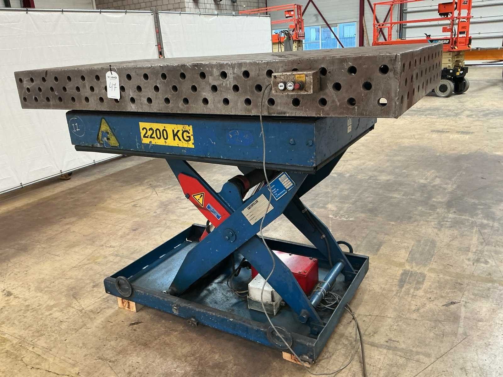 Heftafel voorzien van lastafel, hydraulische bediening, Merk: Buter Type: H 30-11 2.200 KG Bouwjaar: 1996 Serienummer: A 11 2071 Plateau afm. l: 2000mm Plateau afm. b: 1000mm Elektrisch bediend: true Capaciteit.: 2200kg Hefhoogte: 1400mm Aansluiting: 400V Totale afmeting L: 2000mm Totale afmeting Breedte: 1000mm Totale afmeting Hoogte: 620mm