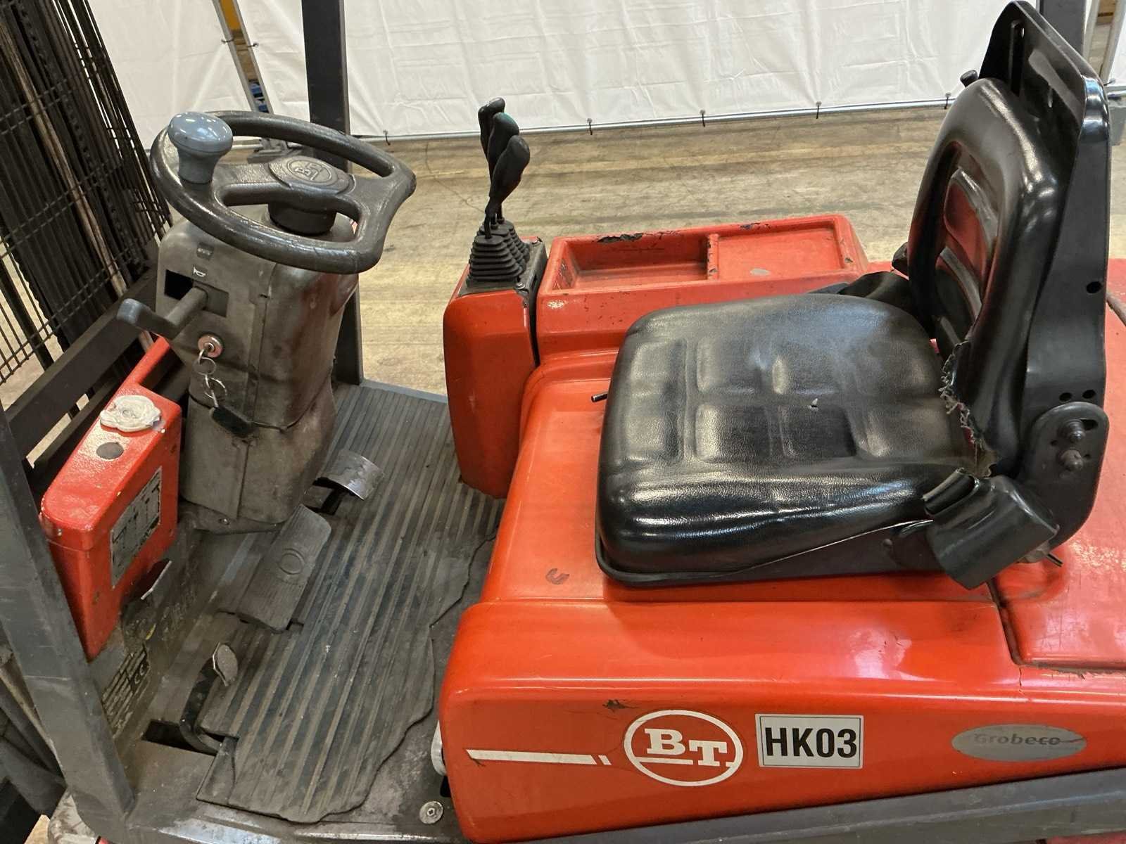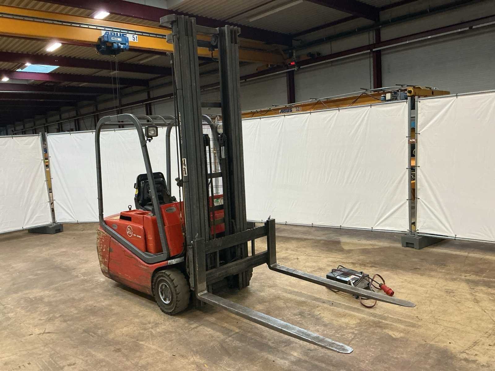 Voorzien van werkkampen, maximale lepel breedte 1080 mm, inclusief lader, 48V batterij, Merk: BT Type: CBE 1.500 KG Bouwjaar: 2002 Serienummer: 219336CE Brandstof: Elektrisch Mast: Triple Soort band: Volrubber banden Aantal wielen: 3 Afgelezen urenstand: 26690 Accu lader: true Free-lift: true Side-shift: true Triple mast: true Eigen gewicht: 3500kg Hefvermogen: 1500kg Lepellengte: 1500mm Max. hefhoogte: 6200mm Hefhoogte: 6200mm Vol rubber banden: true Minimale doorrijhoogte: 2700mm Totale afmeting L: 3600mm Totale afmeting Breedte: 1100mm Totale afmeting Hoogte: 2700mm