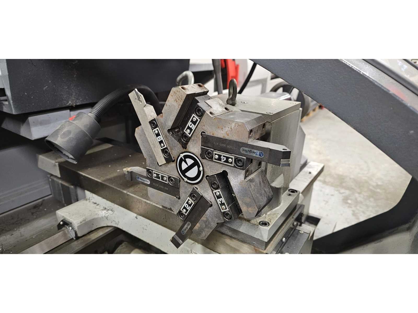 Staat op locatie in Ledeacker, bezichtigen alleen op afspraak mogelijk, Merk: Huvema Type: HU 400 x 850 CNC Bouwjaar: 2007 Serienummer: 750277 Draailengte: 850mm Holle spil Ø: 52mm Snelheid van n =: 200rpm Snelheid tot n =: 2200rpm Aantal gereedschapwisselstations: 6 Koelmiddelpomp: true Besturing, merk, type: Simens Aansluiting: 400V Machinegewicht: 1500kg Afmeting l: 2200mm Afmeting b: 1300mm Afmeting h: 2100mm