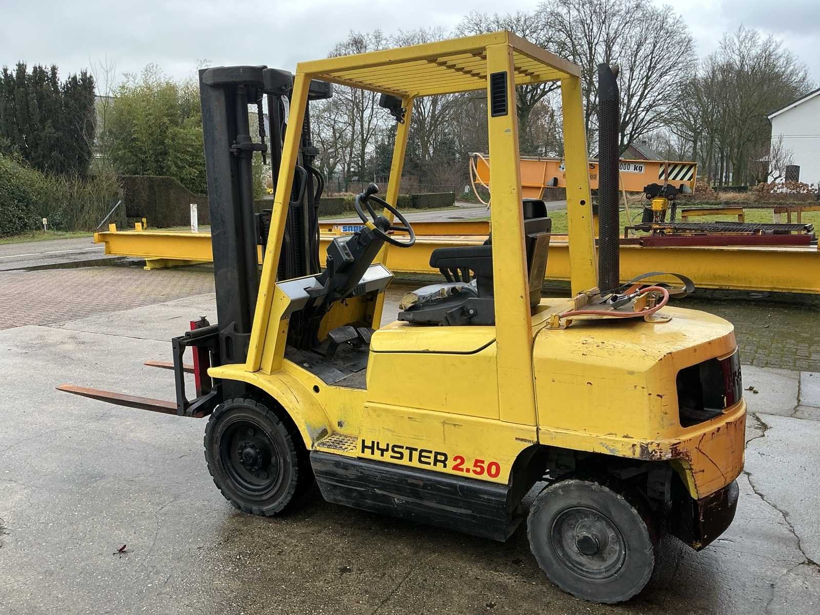 Startmotor recent vervangen, wordt verkocht zonder gasfles, staat op locatie in Ledeacker, bezichtigen alleen op afspraak mogelijk, Merk: Hyster Type: H 2.50 XM 2.500 KG Bouwjaar: 1996 Brandstof: LPG Mast: Triple Soort band: Volrubber banden Aantal wielen: 4 Afgelezen urenstand: 12098 Free-lift: true Side-shift: true Triple mast: true Eigen gewicht: 4100kg Hefvermogen: 2500kg Lepellengte: 1200mm Max. hefhoogte: 4900mm Hefhoogte: 4900mm Vol rubber banden: true Minimale doorrijhoogte: 2120mm Totale afmeting L: 3900mm Totale afmeting Breedte: 1030mm Totale afmeting Hoogte: 2120mm LPG: true