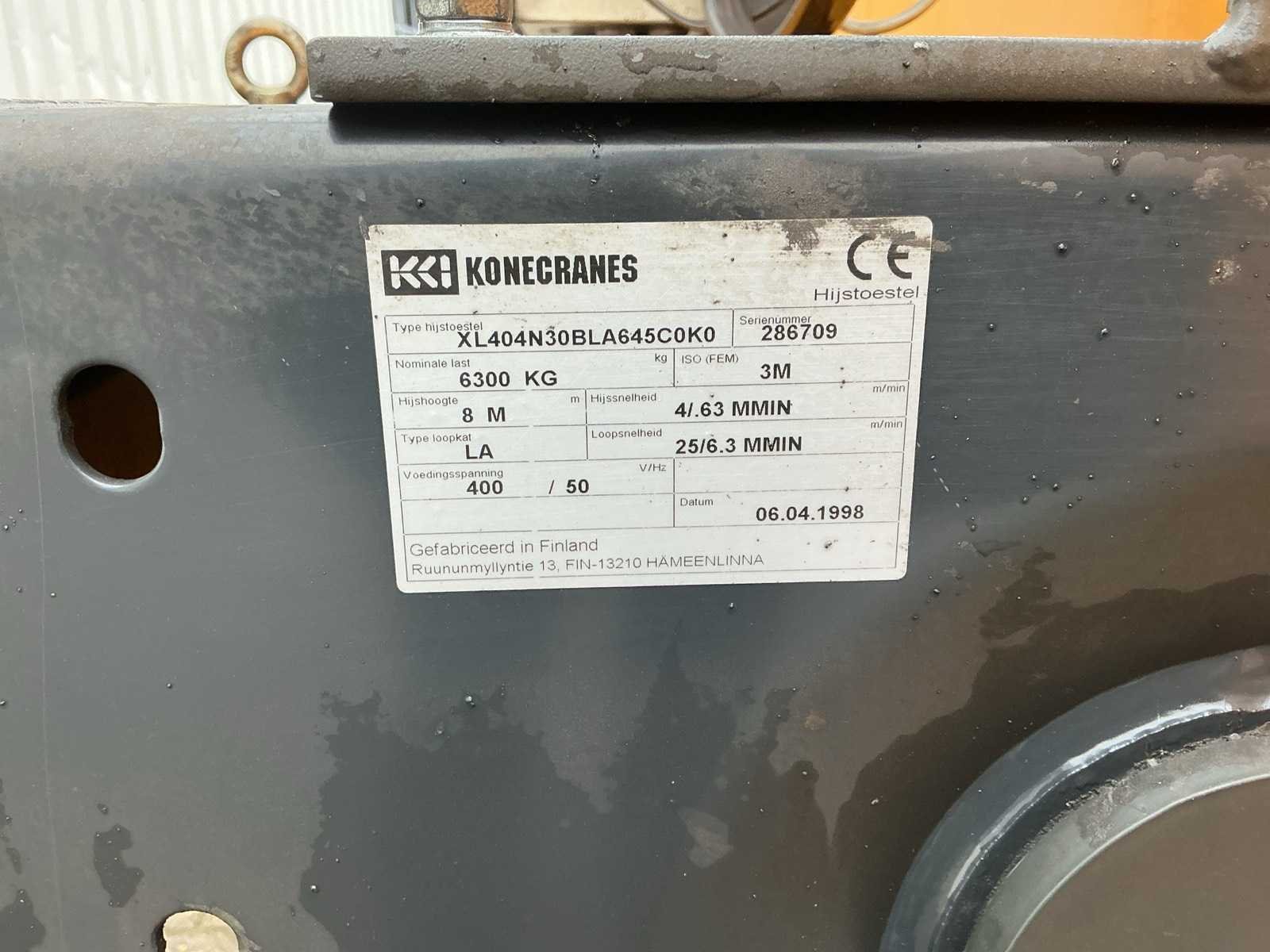 1998 konecranes 6.300 kg x 24,16 m bovenloopkraan