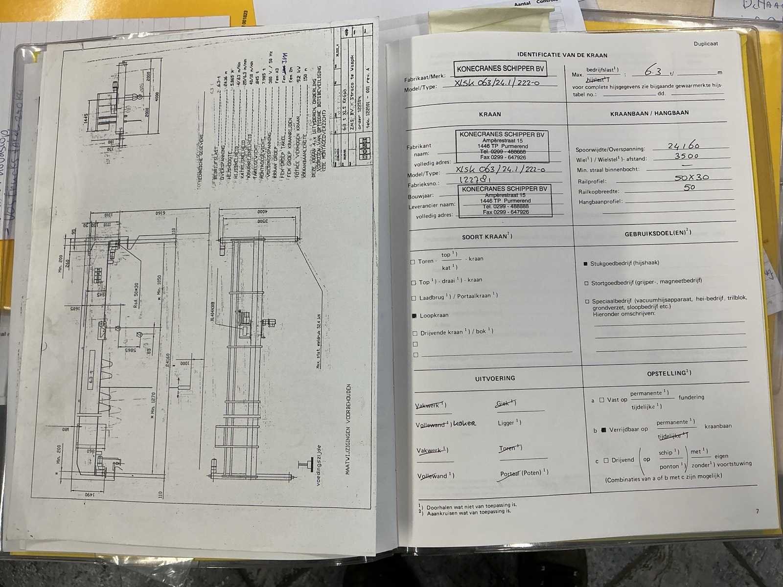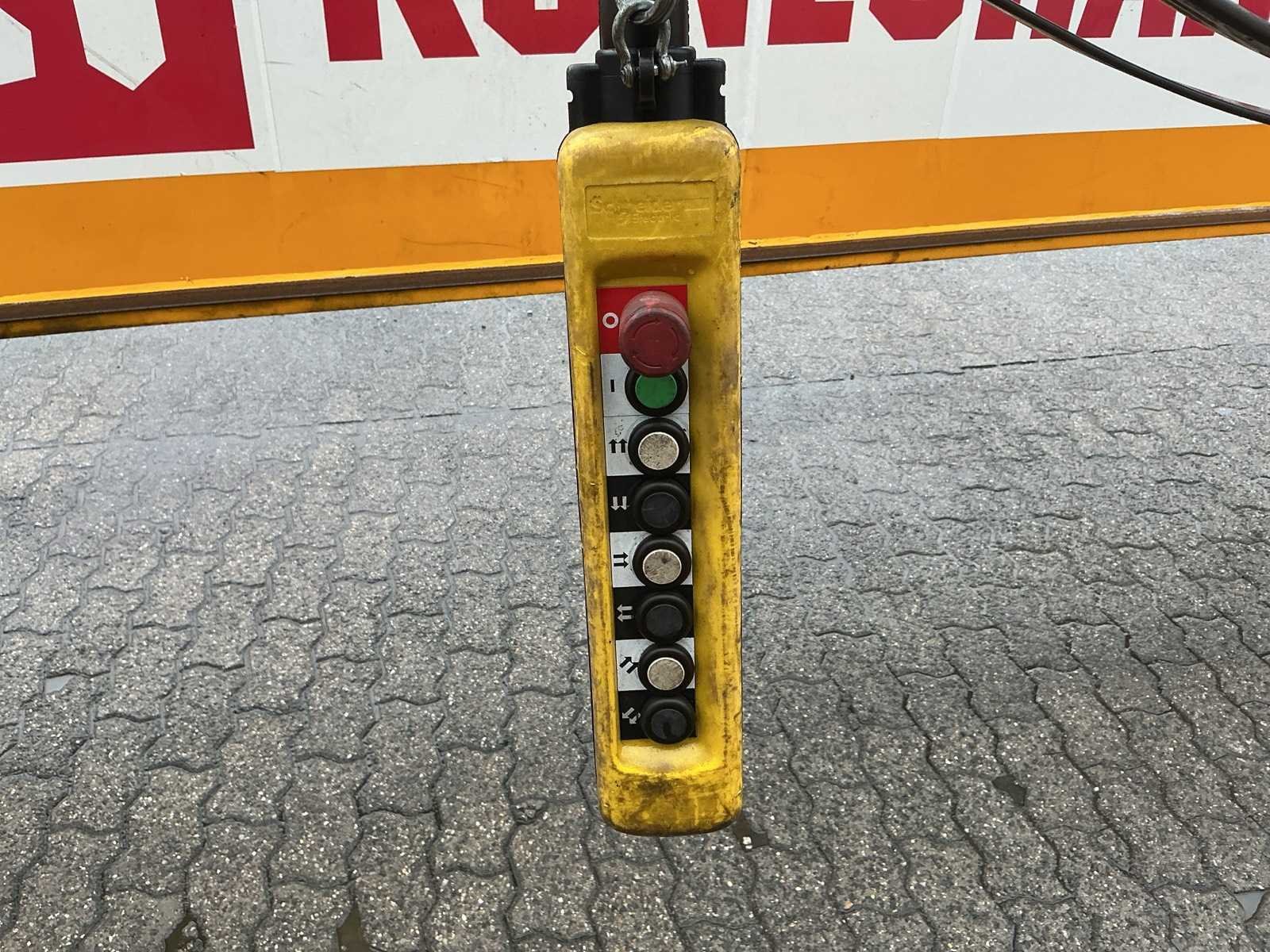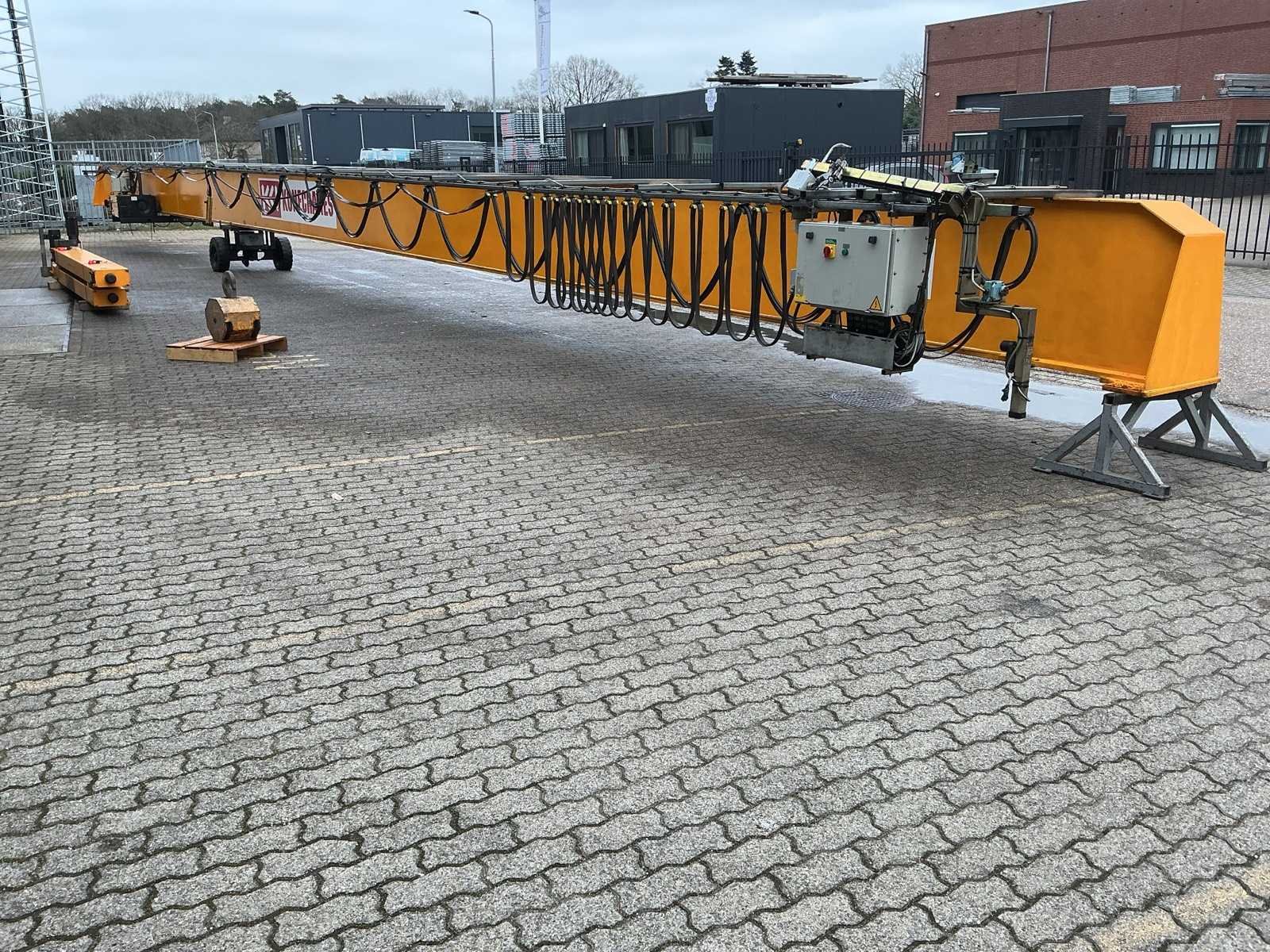 Voorzien van bedrade bediening, kraanboek aanwezig, Merk: Konecranes Type: 6.300 KG x 24,16 m Bouwjaar: 1998 Serienummer: 112781 Overspanning: 24.16m Hijsvermogen: 6300kg Max. hijshoogte: 8m Met kraanboek: true Eigen gewicht: 8000kg Totale afmeting L: 24300mm Totale afmeting Breedte: 4000mm Totale afmeting Hoogte: 1300mm