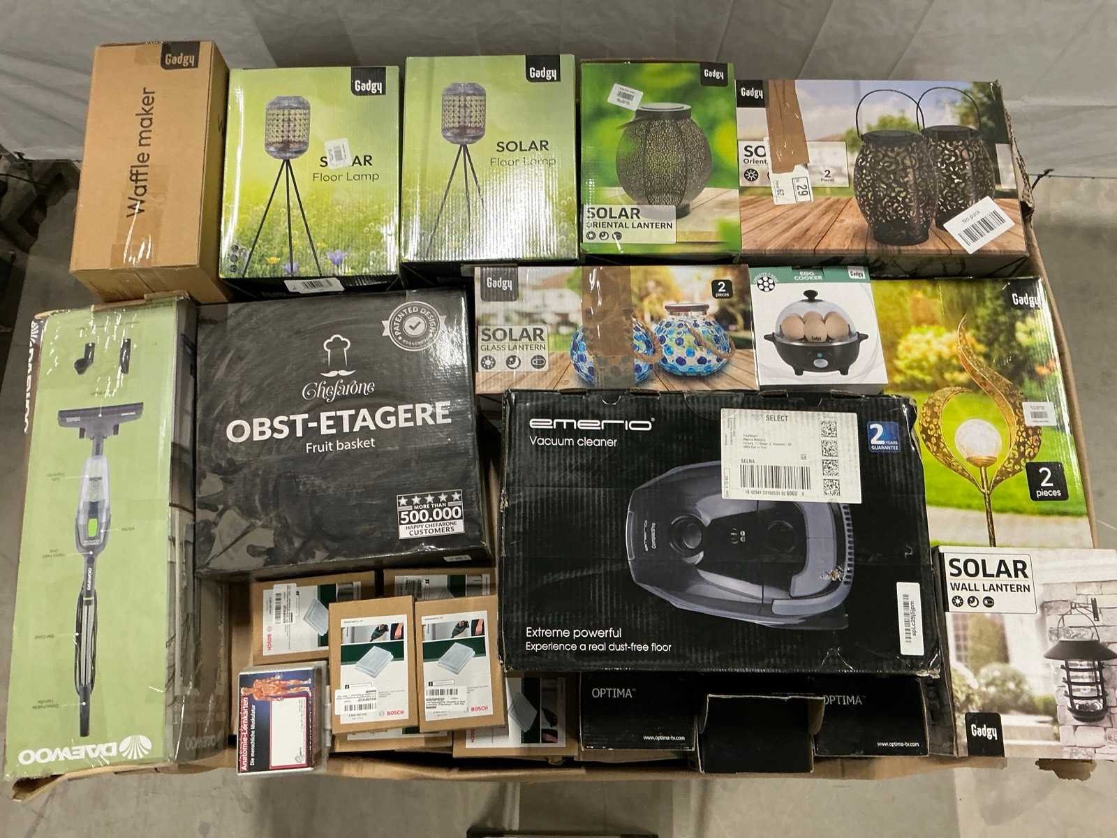 Dit betreft een partij retourgoederen van een grote online retailer. De goederen bestaan uit diverse productcategorieën. Ongecontroleerd: werking onbekend (mix van werkend, incompleet, beschadigd, te gebruiken voor onderdelen). Kom op de kijkdag om te om zo een goed beeld te krijgen van de reden van retour. Merk: Pallet