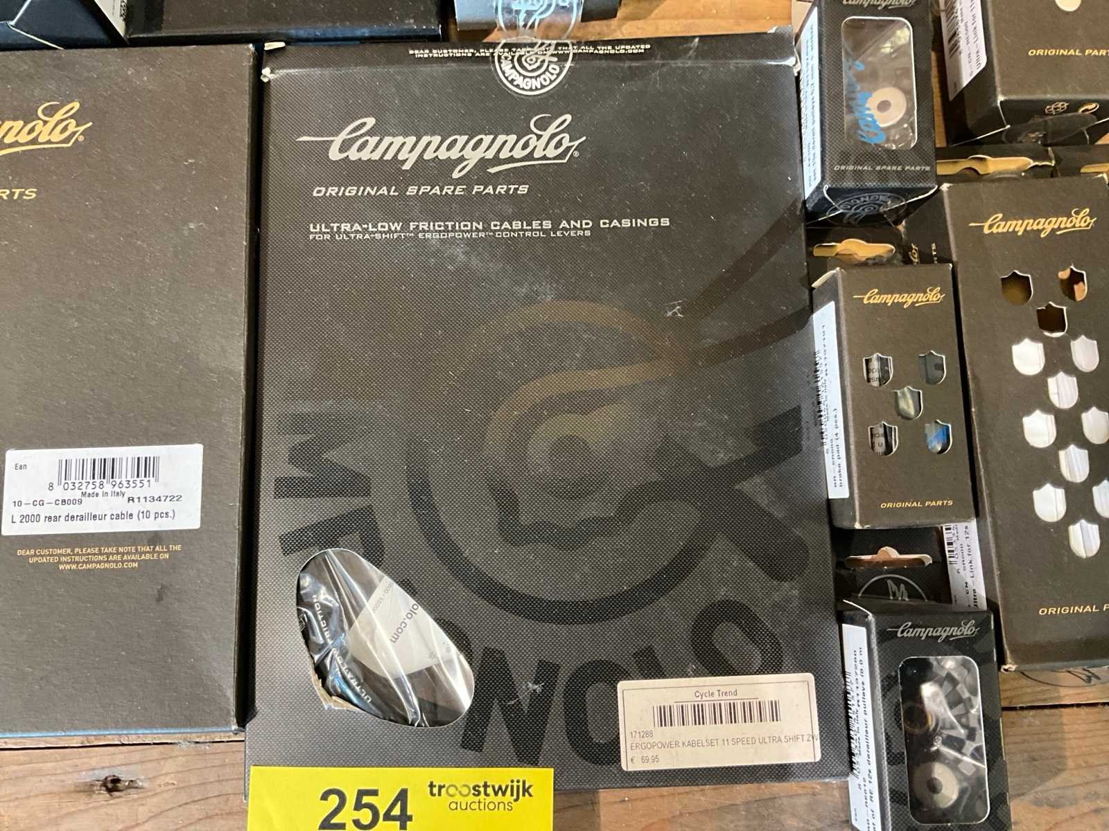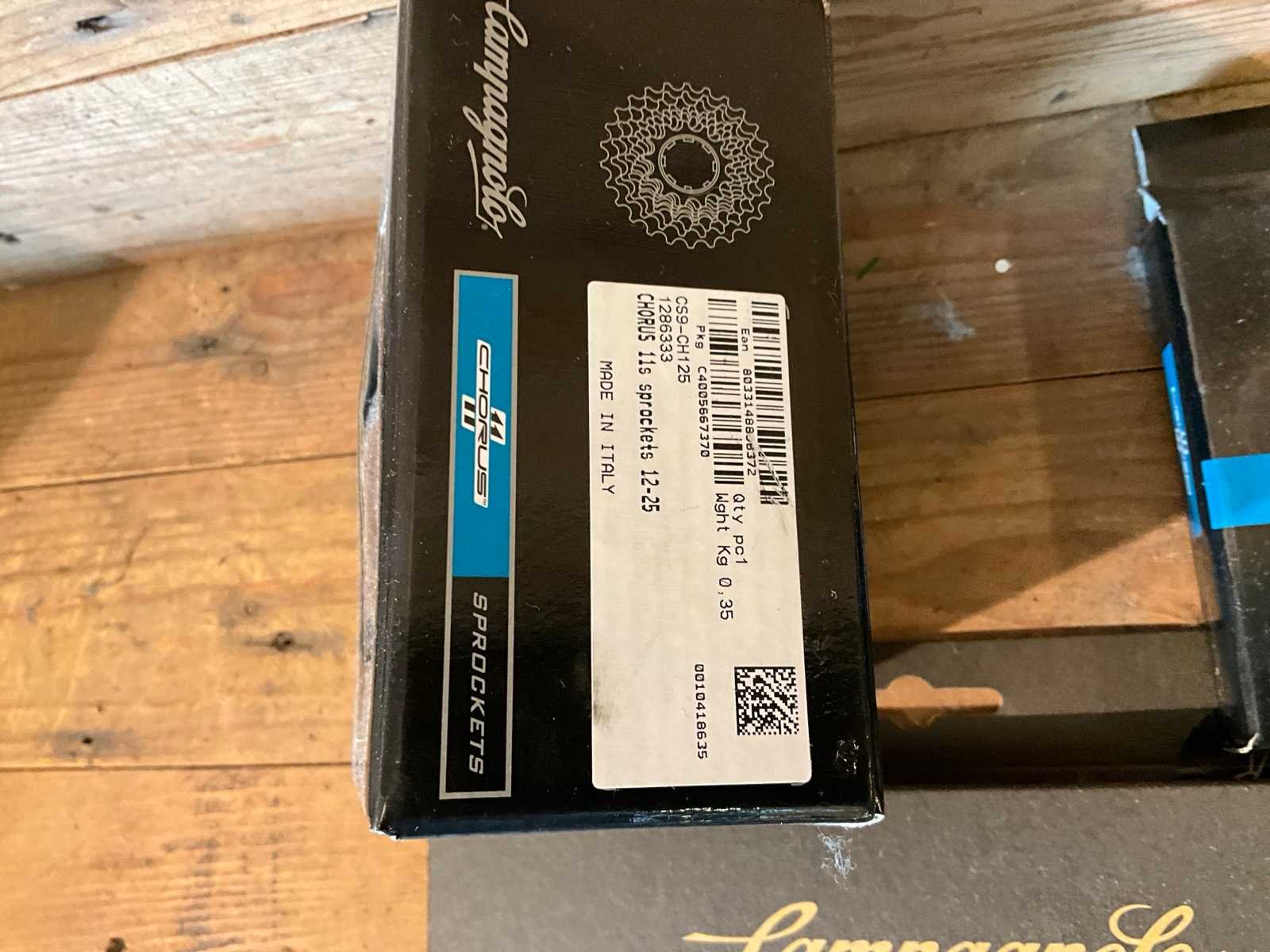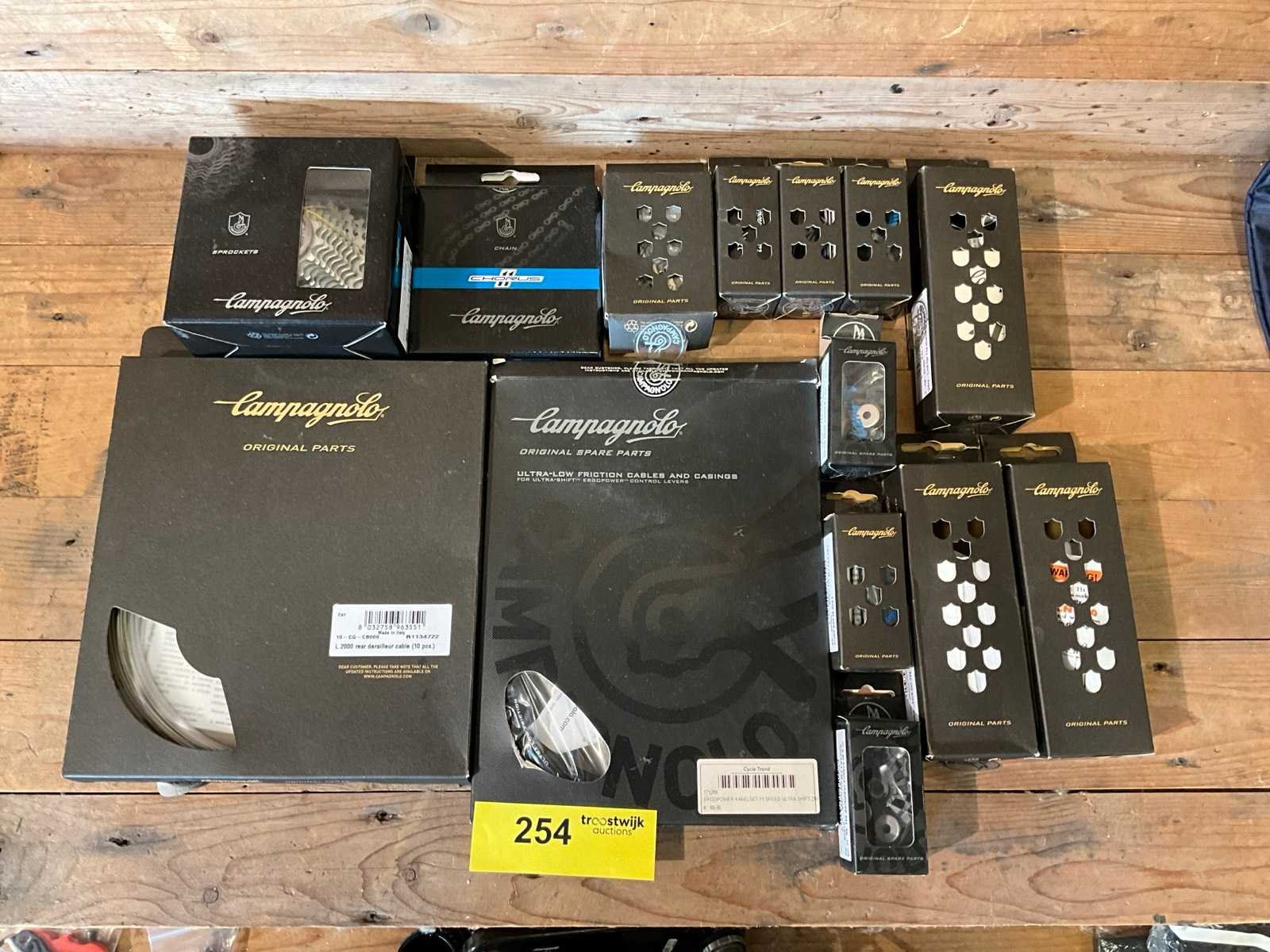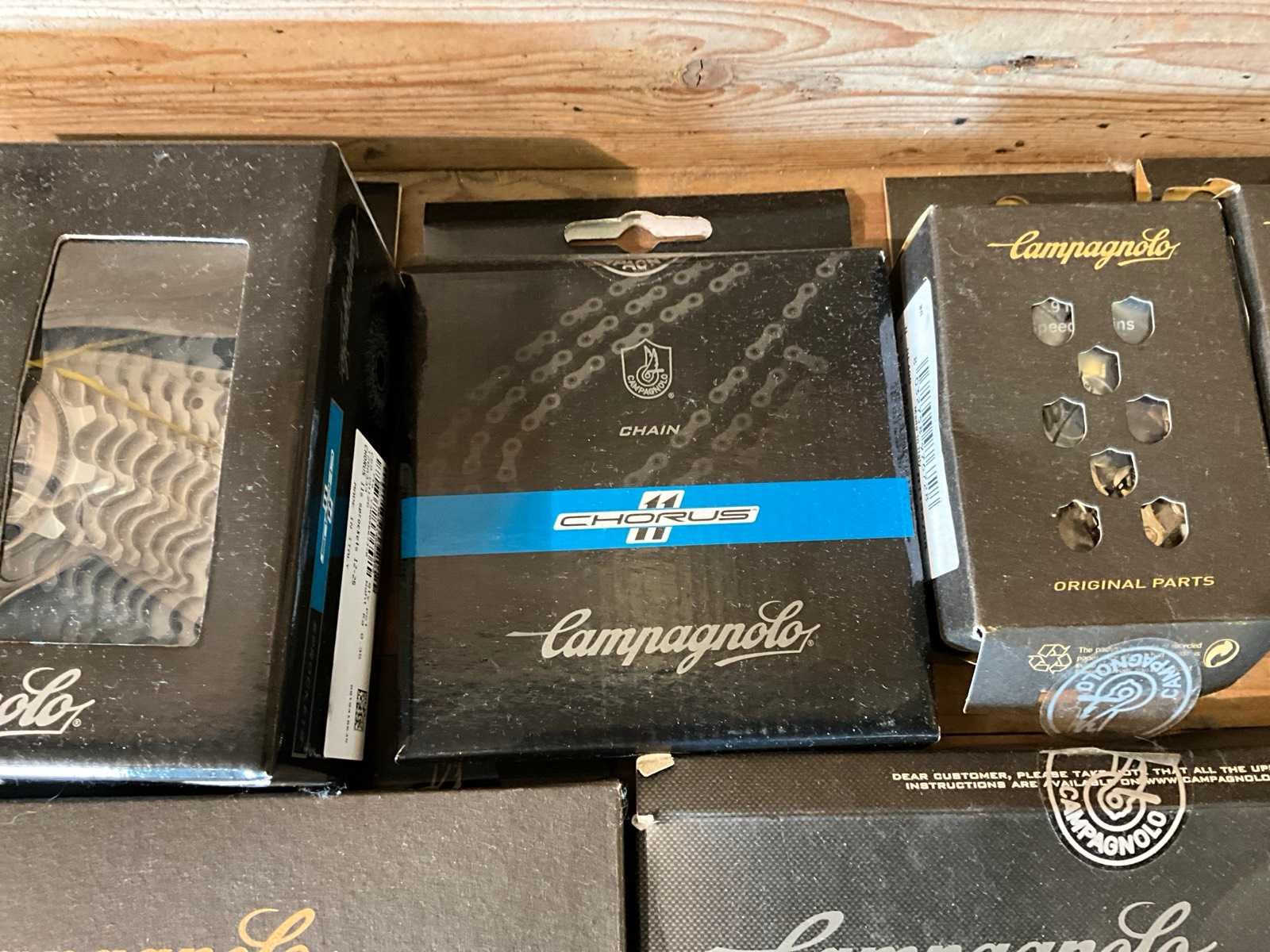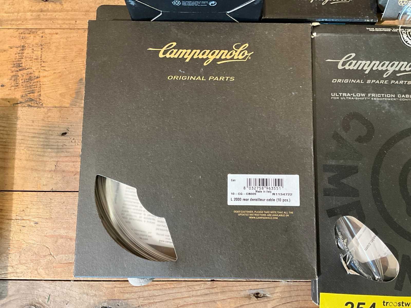 Bestaande uit onder andere: cassette, achterderailleur kabels, ketting, kabelset, etc Merk: Campagnolo