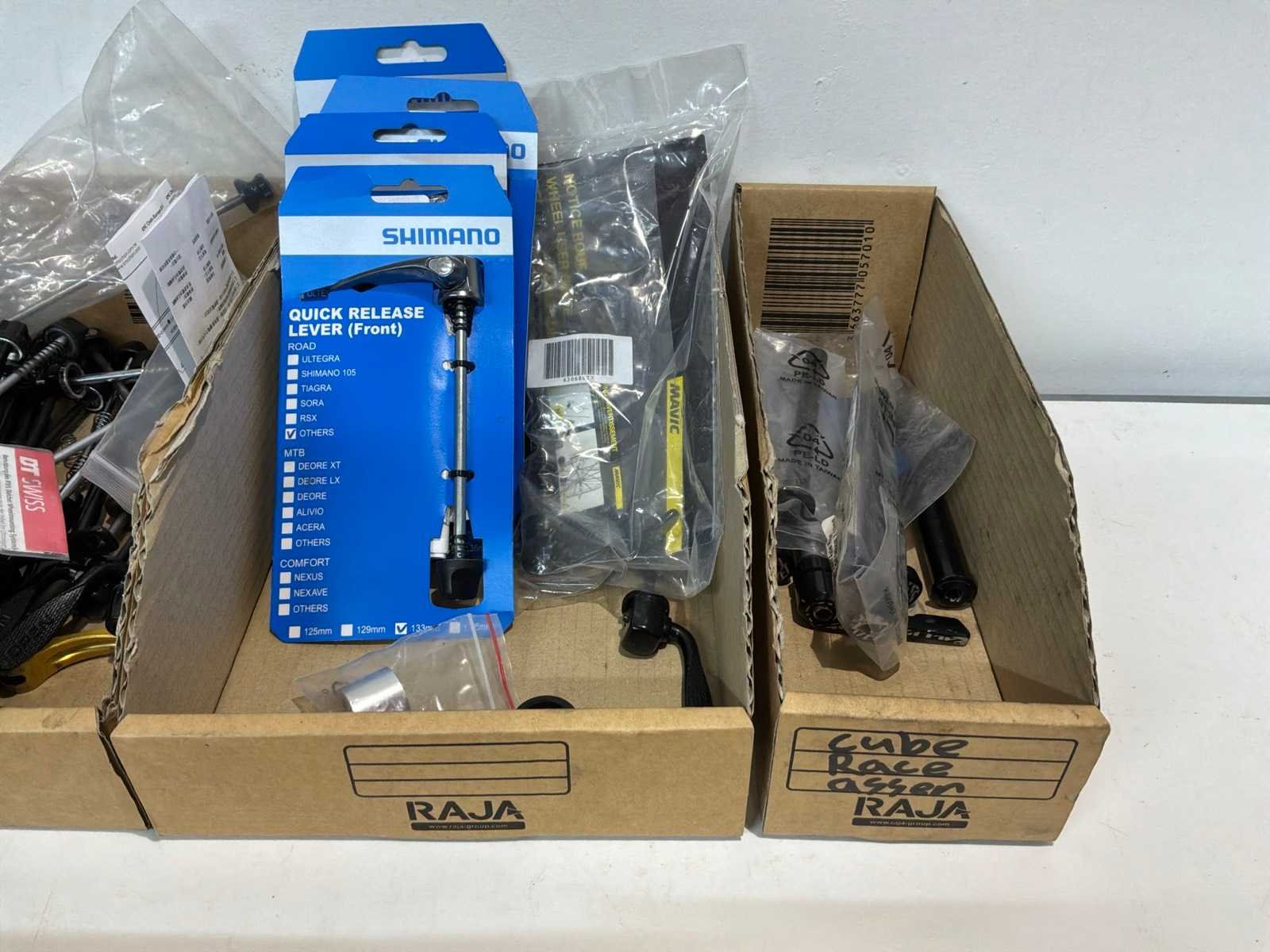 Inhoud van 10 dozen, diverse merken en maten. Merk: Shimano / DT Swiss / Hope Model: diverse steekassen