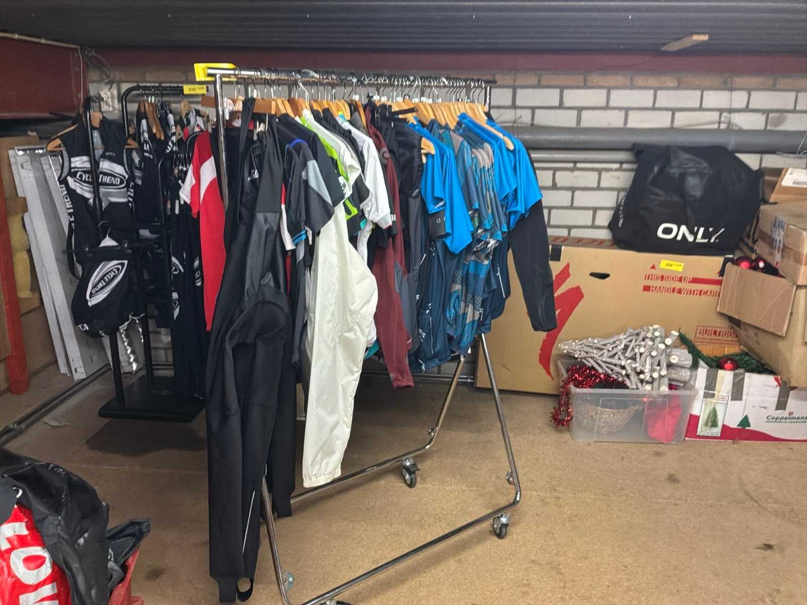 Diverse merken fietskleding. Mix van dames en herenkleding. Verschillende maten en soorten. Inclusief rek. Merk: Craft / mr velo / giordana / carvico / megmeister