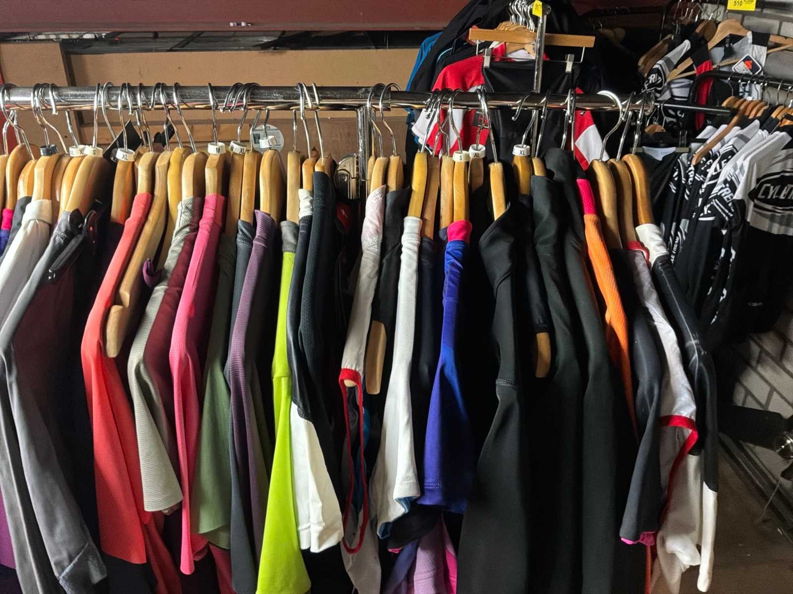 Diverse merken fietskleding. Mix van dames en heren. Verschillende maten en soorten. Inclusief rek. Merk: Craft / mr velo / giordana / carvico / megmeister