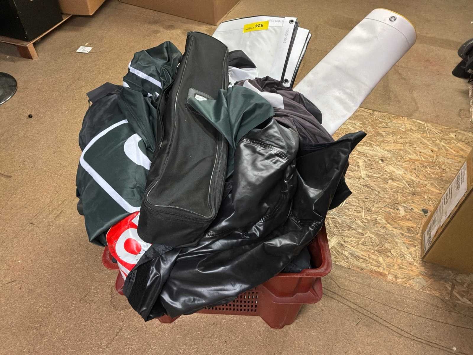 Bestaande uit tent zonder stokken, banners en Beachvlaggen