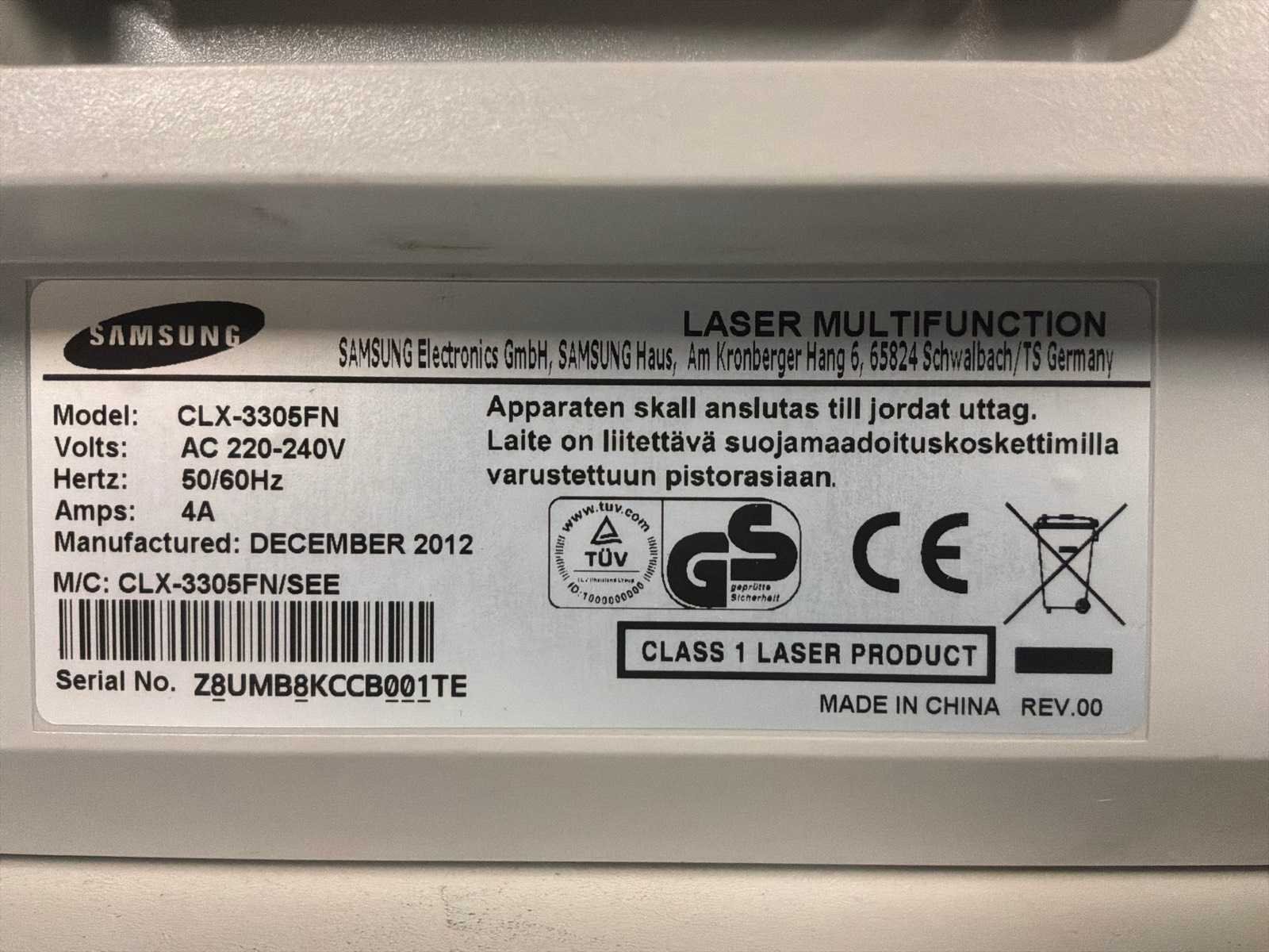 Werking niet bekend. Merk: Samsung Type: CLX-3305FN Bouwjaar: 2012