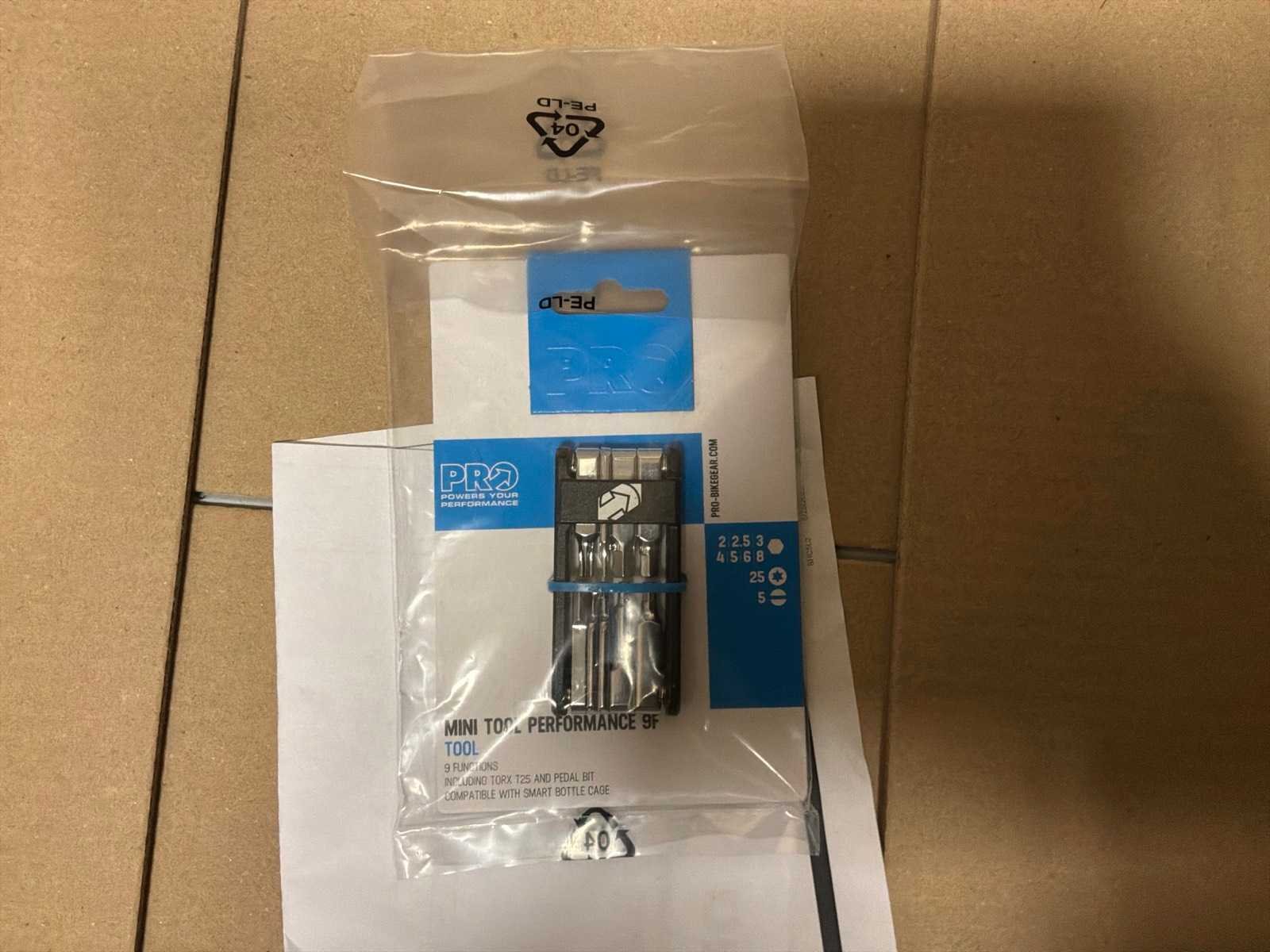 Bestaande uit: zadels, bidons,bidonhouder, sturen, gereedschap, tasjes, stuurtape, zadelpen, fietspomp. Merk: Pro