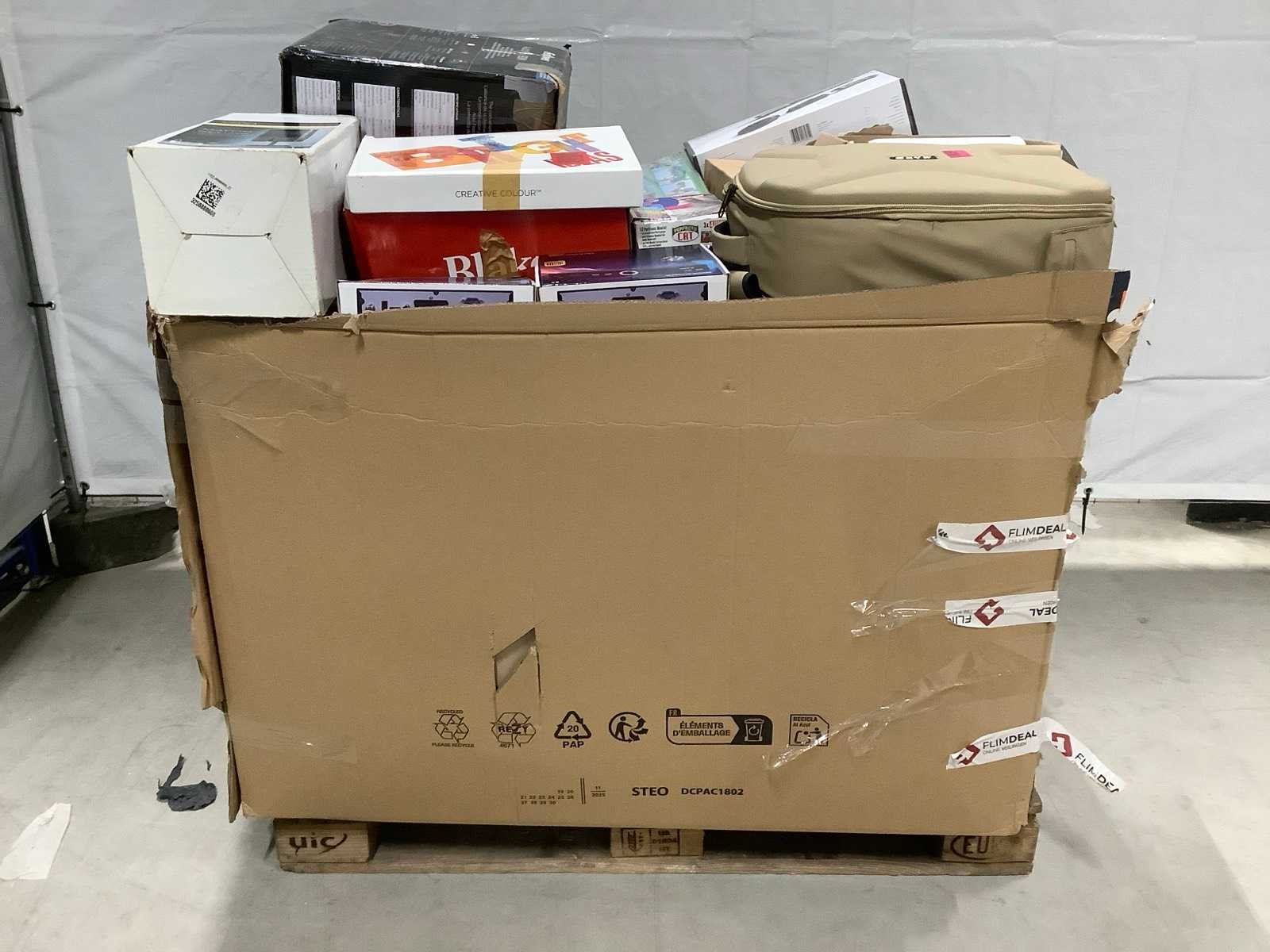 Dit betreft een partij retourgoederen van een grote online retailer. De goederen bestaan uit diverse productcategorieën. Ongecontroleerd: werking onbekend (mix van werkend, incompleet, beschadigd, te gebruiken voor onderdelen). Kom op de kijkdag om te om zo een goed beeld te krijgen van de reden van retour. Merk: Pallet