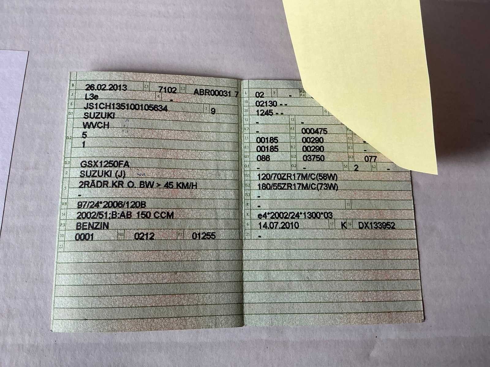 Euro4 Merk: Suzuki Model: GSX1250 FA Brandstof: Benzine Chassisnummer: JS1CH135100105634 Datum eerste toelating: 26/02/2013 Vermogen (kW): 85kW Afgelezen kilometerstand: 15009km Nationaliteit documenten: Duitsland Aantal sleutels: 2 Startinformatie: Start en rijdt Bouwjaar: 2013