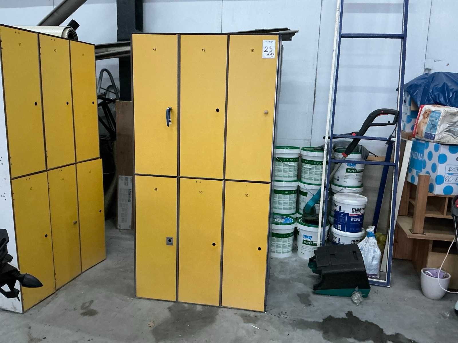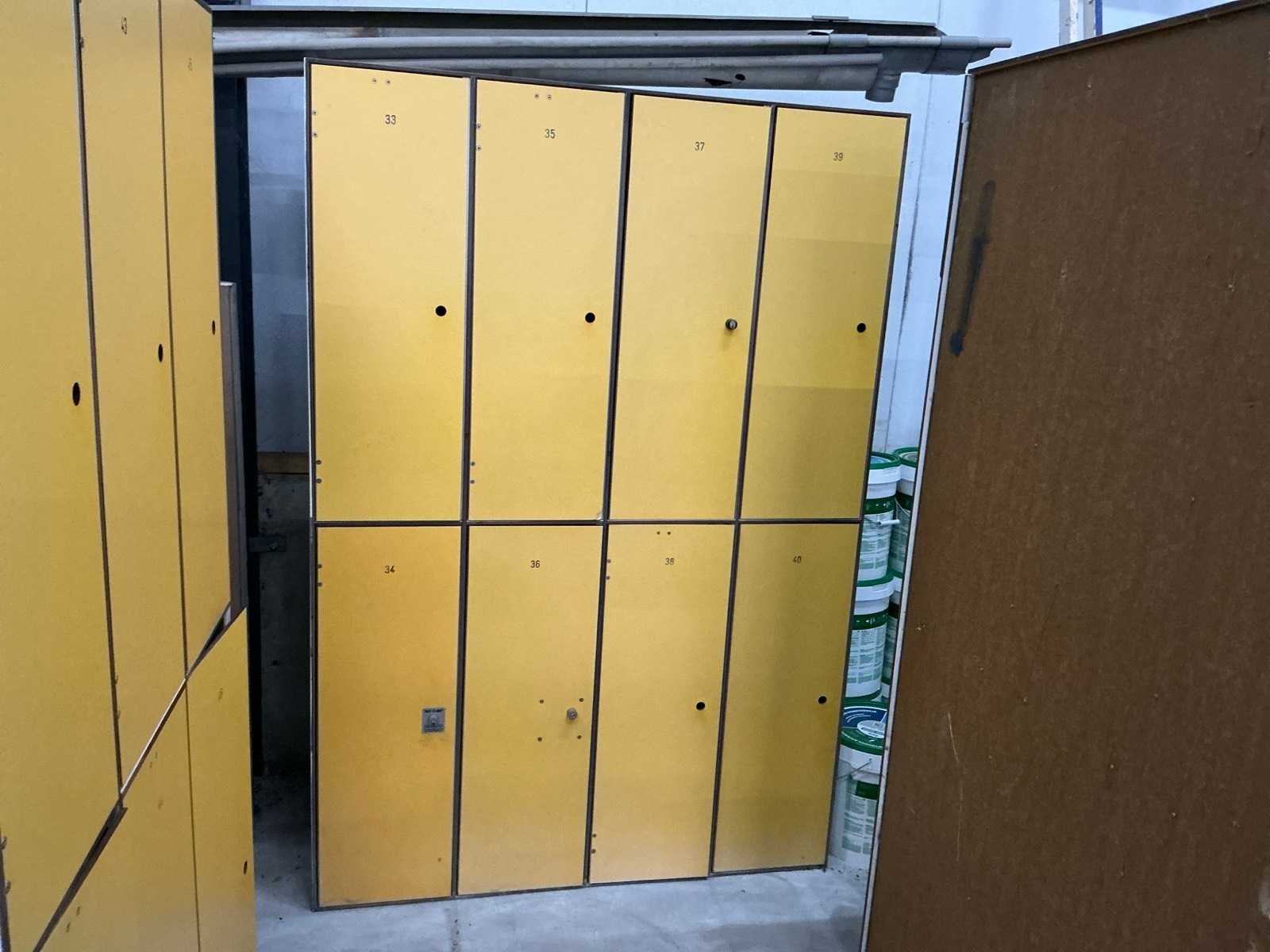 2x lockerkast 6 deuren; 1x lockerkast 8 deuren; zonder sloten; 1 deur defect Lengte: 96cm Breedte: 59cm Hoogte: 185cm Materiaal: HPL Diepte: 55cm