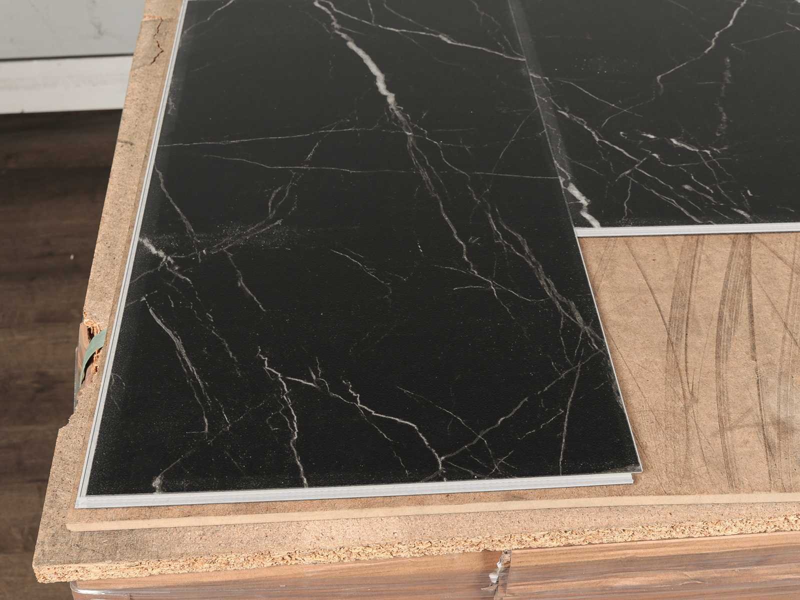Kwaliteits pvc click tegel vloer, voorzien van XPS onderlaag, vloer bestaat uit 4 mm plus 1 mm XPS onderlaag, voorzien van solid polymeer core (SPC), stabiel vloer vereist geen aclimatisatie voor installatie, akoestisch dempend, ideaal voor gebruik in combinatie met vloerverwarming, krasbestendig en slijt vast, huisdiervriendelijk, onderhouds arm, water bestendig, vorstbestendig, anti slip, 60 pakken a 1,674 m2 Merk: Airial flooring Product type: PVC Oppervlakte: 100m² Geschikt voor vloerverwarming: Ja V-groef: Ja Afwerking: Voelbaar structuur, XPS onderlaag, anti slip, met v-groef Aantal m² per verpakking: 1.674m² Kleur: Marmor dark T08 Gewicht: 1020kg Lengte: 610mm Breedte: 305mm Materiaal: PVC