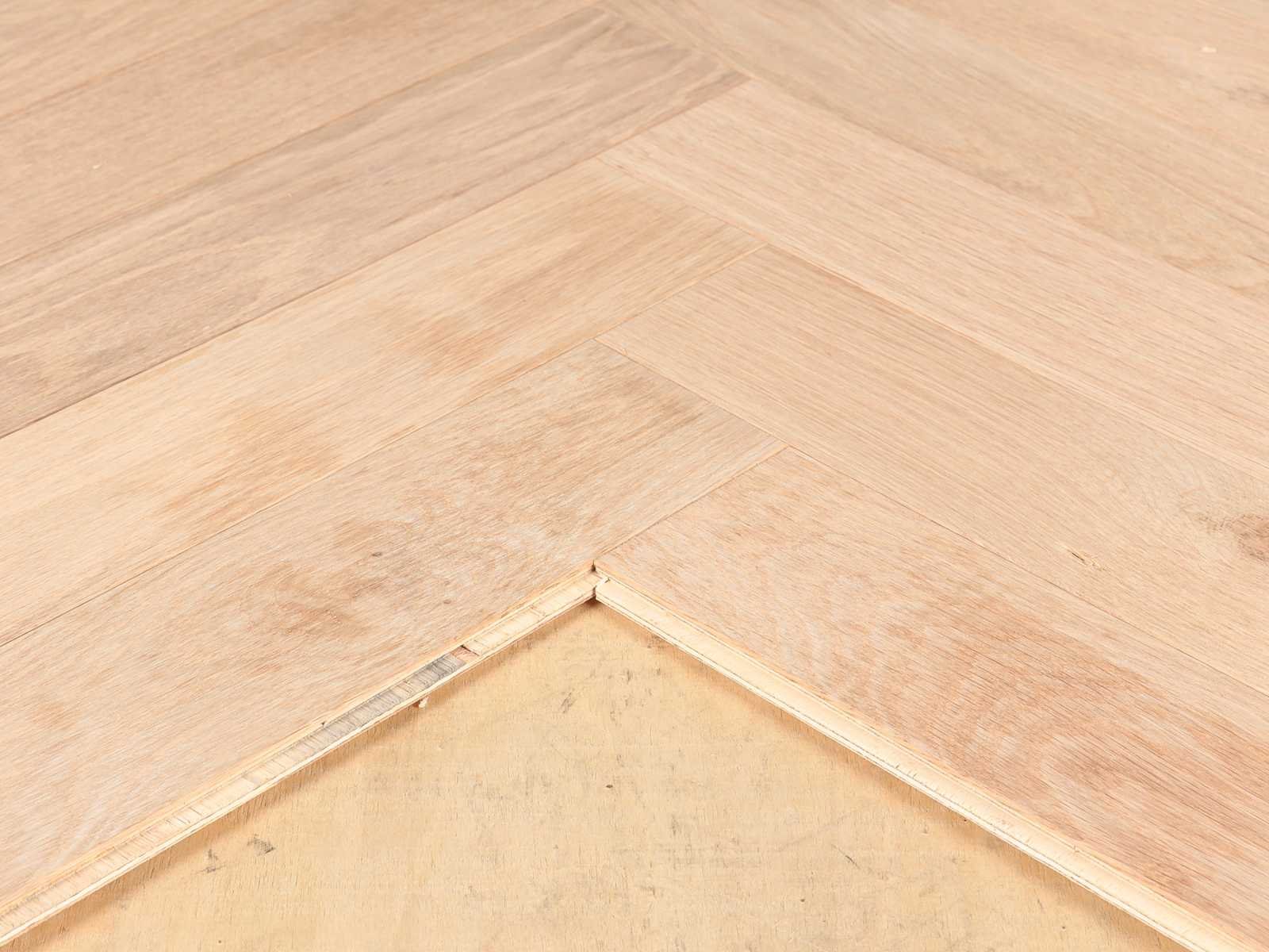 Mes en groef systeem, geschikt voor alle soorten vloer en koelverwarmingen, onbehandeld visgraat, kwaliteits parketvloer, vloer is van hoogwaardig Europees eiken hout, dikte 12,7 mm, 174 pakken a 0,583 m2 Merk: Select floor Product type: Parket Oppervlakte: 101m² Geschikt voor vloerverwarming: Ja V-groef: Ja Afwerking: Onbehandeld, rustiek, gerookt, met v-groef Aantal m² per verpakking: 0.583m² Kleur: Light brushed unfinished 322HB Gewicht: 1045kg Lengte: 540mm Breedte: 90mm Materiaal: Eiken multiplank