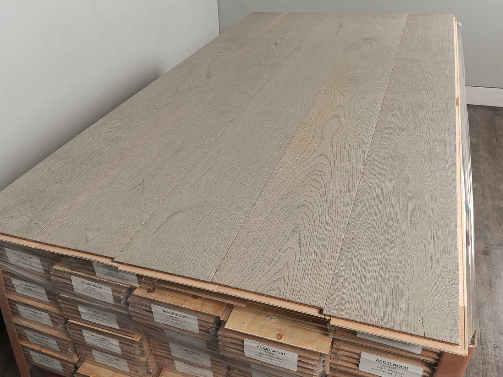 Gemakkelijk te leggen wegens clicksysteem, geschikt voor alle soorten vloer en koelverwarmingen, kwaliteits parketvloer, vloer is van hoogwaardig Europees eiken hout, kant en klaar behandeld, dikte 13,5 mm, toplaag 3 mm, 17 pakken a 2,075 m2 Merk: Angelwood Product type: Parket Oppervlakte: 35m² Geschikt voor vloerverwarming: Ja V-groef: Ja Afwerking: Geolied, geborsteld, met v-groef Aantal m² per verpakking: 2.075m² Kleur: Light grey oak 835-1 Gewicht: 310kg Lengte: 1820mm Breedte: 190mm Materiaal: Eiken multiplank