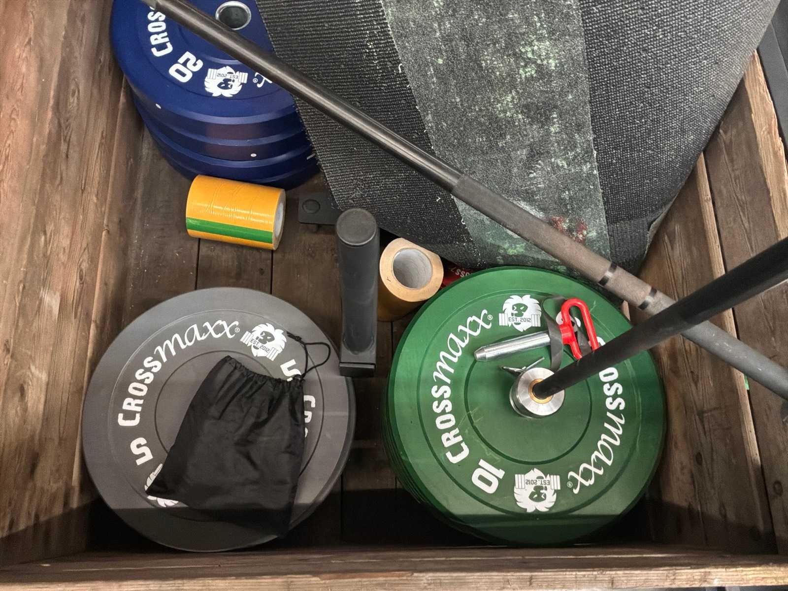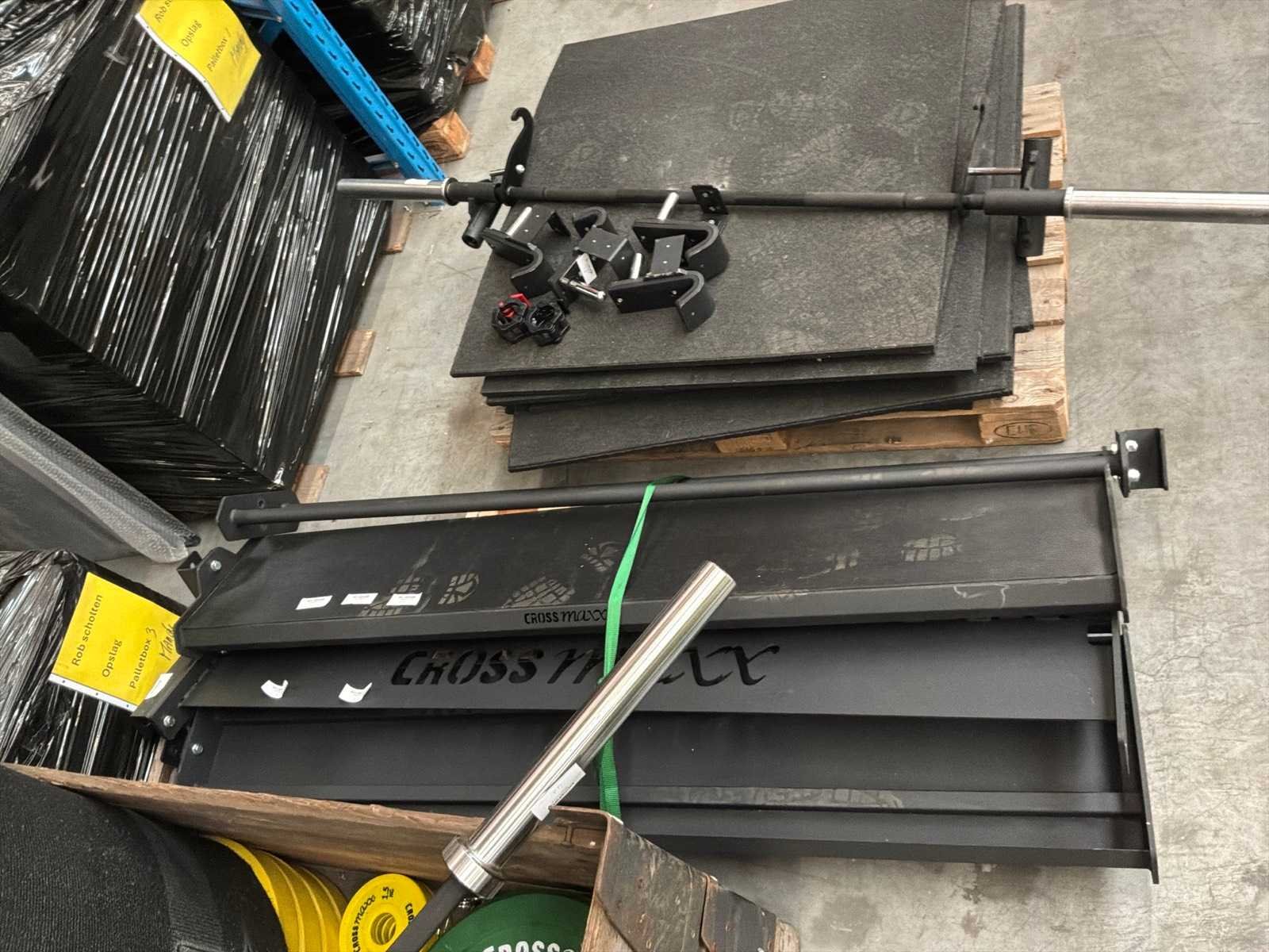 Sprinttrack 10x1, zwart met witte belijningen, start/finish LMX1225 LMX® Aerobic Mat Wall Rack (voor 10 mats) LMX1265 LMX® Hip Thrust Box LMX1283 CROSSMAXX® 6 Digit Timer (met remote) LMX1652 CROSSMAXX® XL Plate Holder for Pulley - 4 stuks LMX1671 CROSSMAXX® XL Spacer Set (hoogtes: 10 cm, 15 cm, 15 cm , 20 cm) totaal 4 stuks LMX1734 CROSSMAXX® XL J-Hook Set - 2 stuks 4 LMX1735 CROSSMAXX® XL Plate Holder for Rig - 4 stuks LMX1755 CROSSMAXX® XL Upright Stand 75x75mm 240CM- 4 stuks LMX1756 CROSSMAXX® XL 180CM Logo Crossbar LMX1758 CROSSMAXX® XL Dip Station for Rig v2 LMX1760 CROSSMAXX® XL 110CM Crossbar - 5 stuks LMX1781 CROSSMAXX® XL 110CM Single Beam v2 LMX1785 CROSSMAXX® XL 180CM Ball Shelf M LMX1787 CROSSMAXX® XL 180CM Kettlebell Shelf - 2 stuks LMX34 CROSSMAXX® Olympic Comp Bar 50MM, 220CM 20KG LMX44 CROSSMAXX® Olympic Comp Bar 50MM, 200CM 15KG (Black/Chrome) LMX53 CROSSMAXX® Fast Lock Collaret 50MM - 2 stuks LMX95.015 CROSSMAXX® Elite Fractional Plate 1,5KG (Yellow) - 3 stuks LMX95.025 CROSSMAXX® Elite Fractional Plate 2,5KG (Red) - 3 stuks LMX98.05 CROSSMAXX® Technique Plate 50MM 5KG (Grey) - 6 stuks LMX98.10 CROSSMAXX® Bumper Plate 50MM 10KG (Green) - 6 stuks LMX98.15 CROSSMAXX® Bumper Plate 50MM 15KG (Yellow) - 4 stuks LMX98.20 CROSSMAXX® Bumper Plate 50MM 20KG (Blue) - 4 stuks Merk: Crossmax Model: Complete set