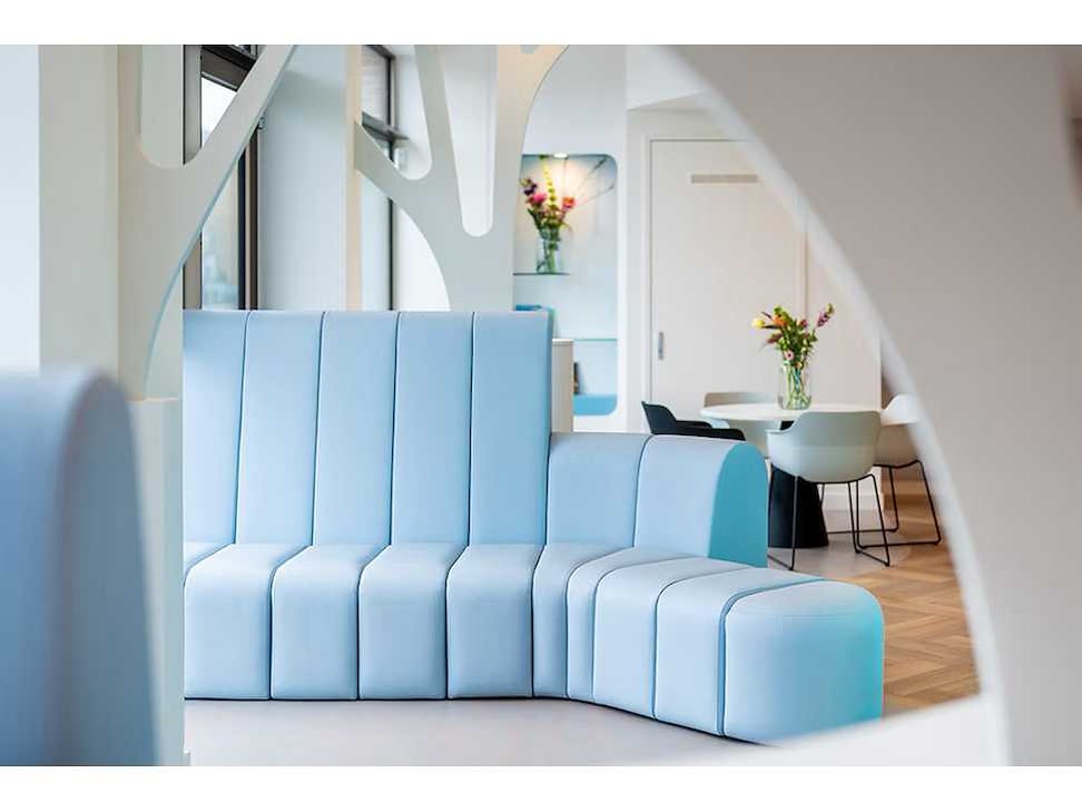 Bestaande uit losse secties. Kleur: Lichtblauw Lengte: 300cm Breedte: 87cm Hoogte: 130cm Materiaal: Sky
