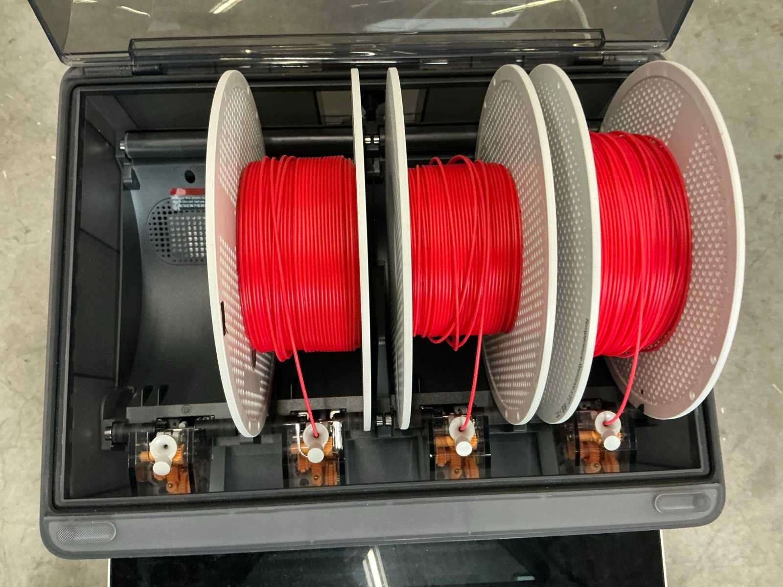 Met 3d filament producten (verschillende kleuren en maten rollen) Merk: Bambu Model: Lab X1 carbon combo Lengte: 38.5cm Breedte: 42cm Hoogte: 88cm