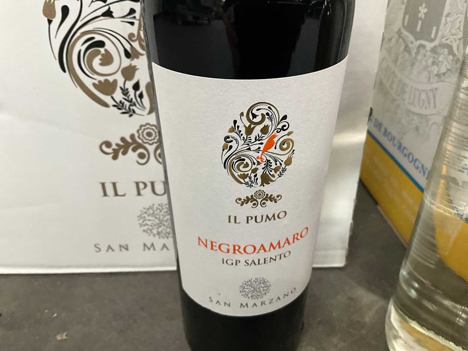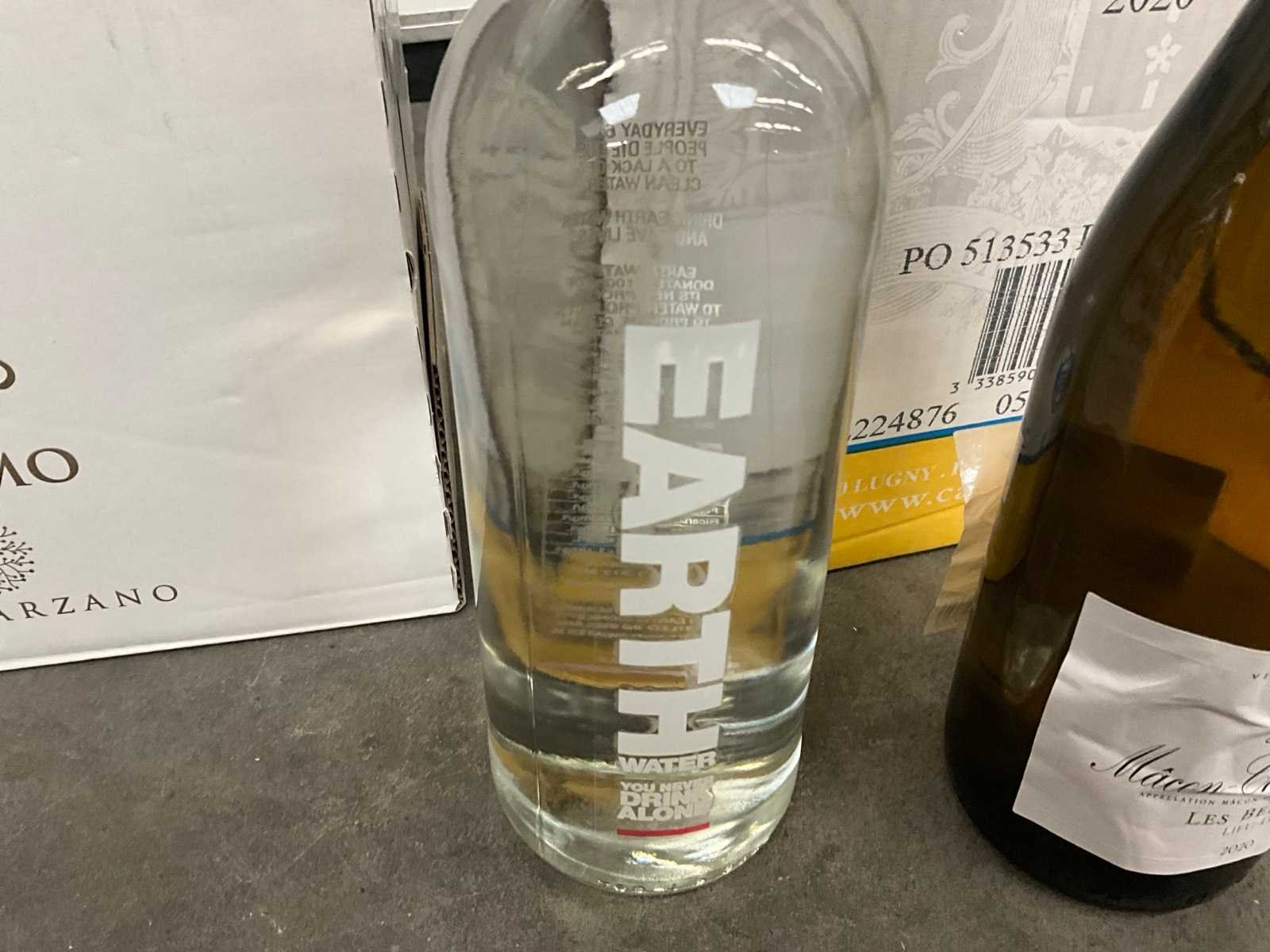 6x fles negroamaro IGP salento 2017, 3x fles macon chardonnay les beluses 2020, 1x fles earth water