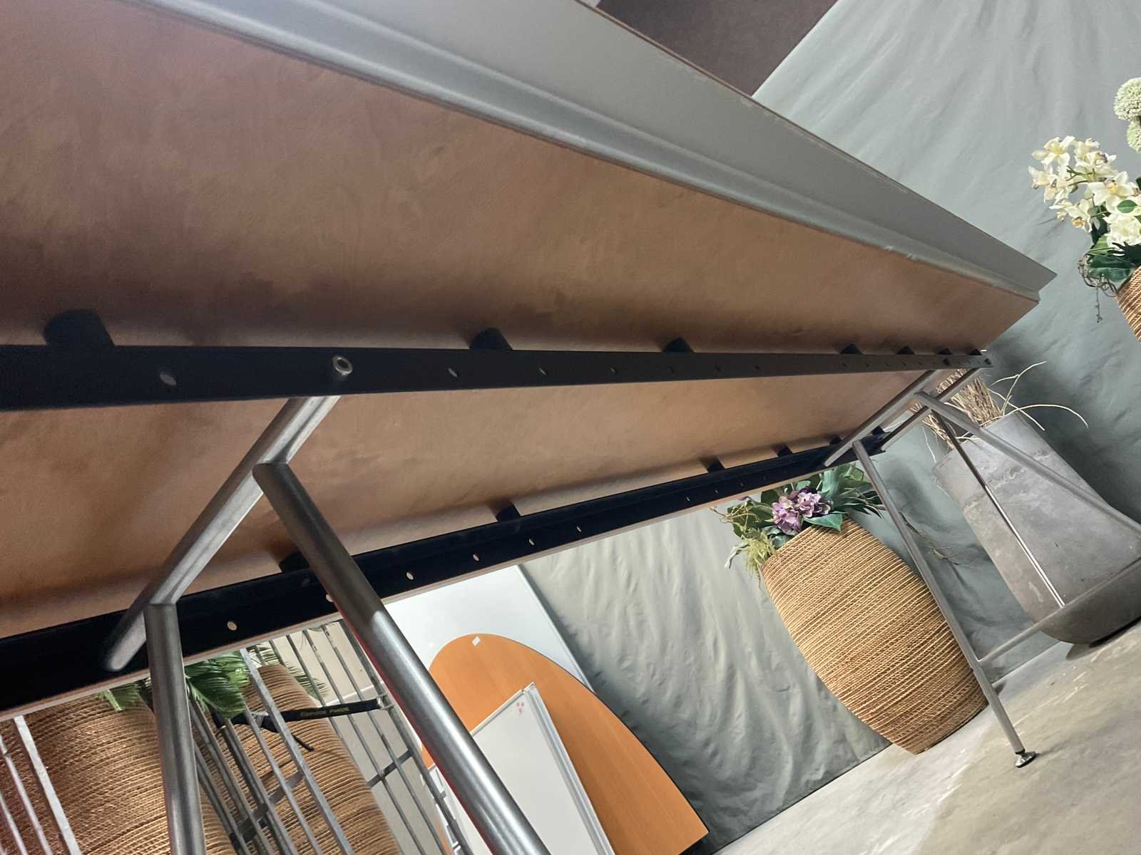 Voorzien van frame waarvan poten verplaatst kunnen worden Stoelen en decoratie niet inbegrepen Merk: Atelier Alinea Kunstenaar: Alinea Lengte: 250cm Breedte: 74cm Hoogte: 75cm