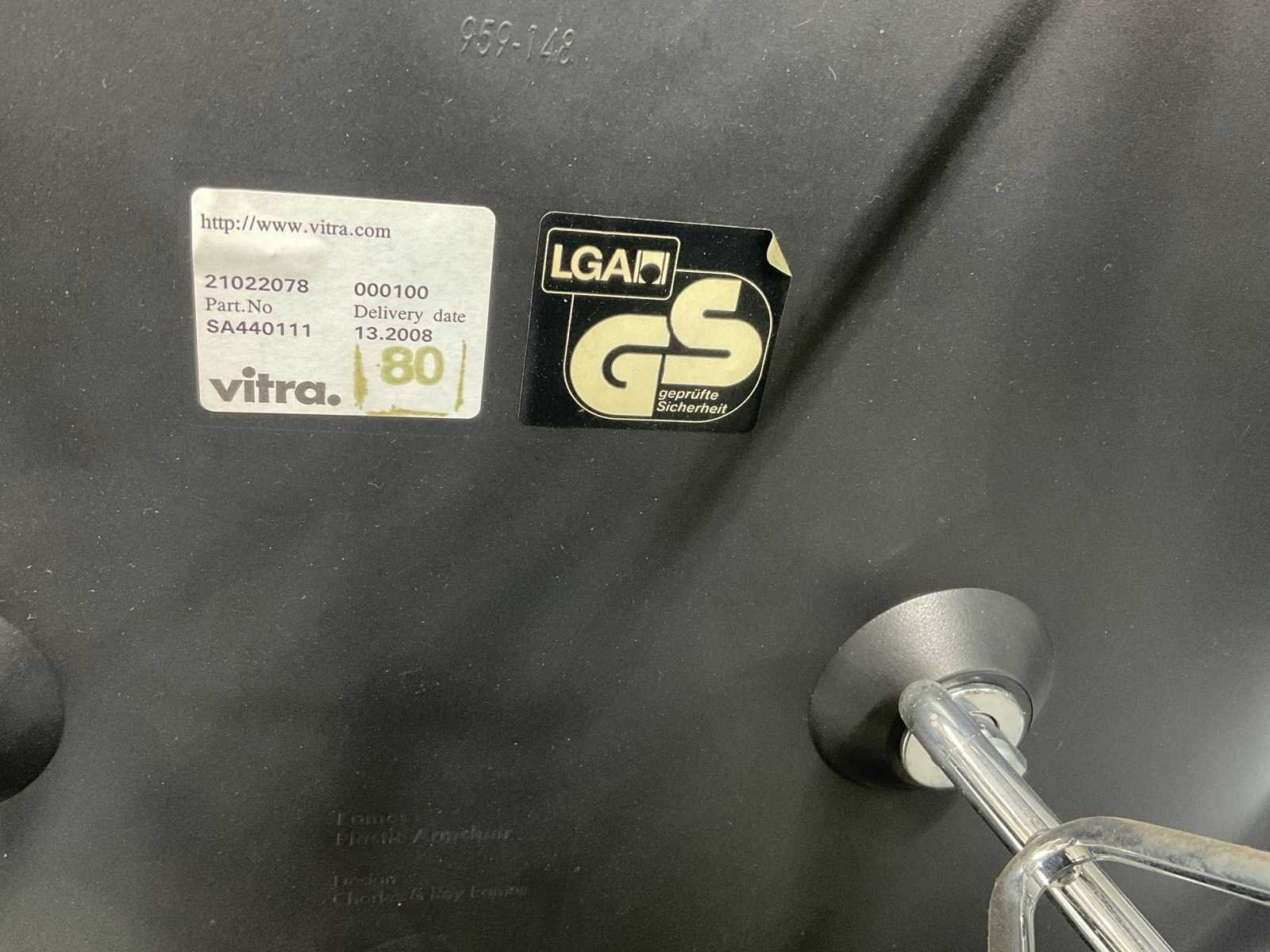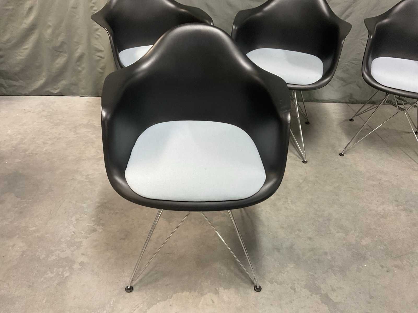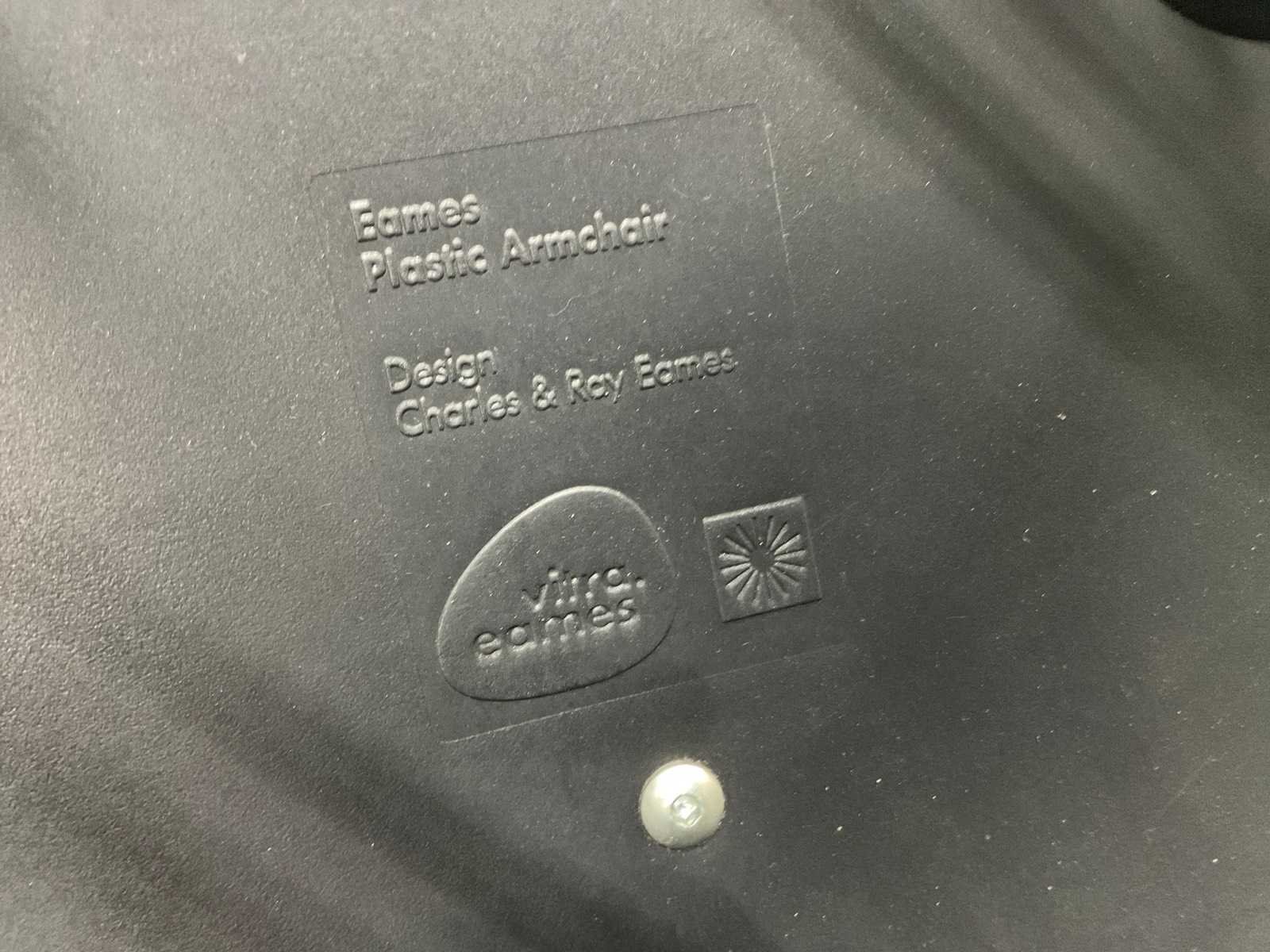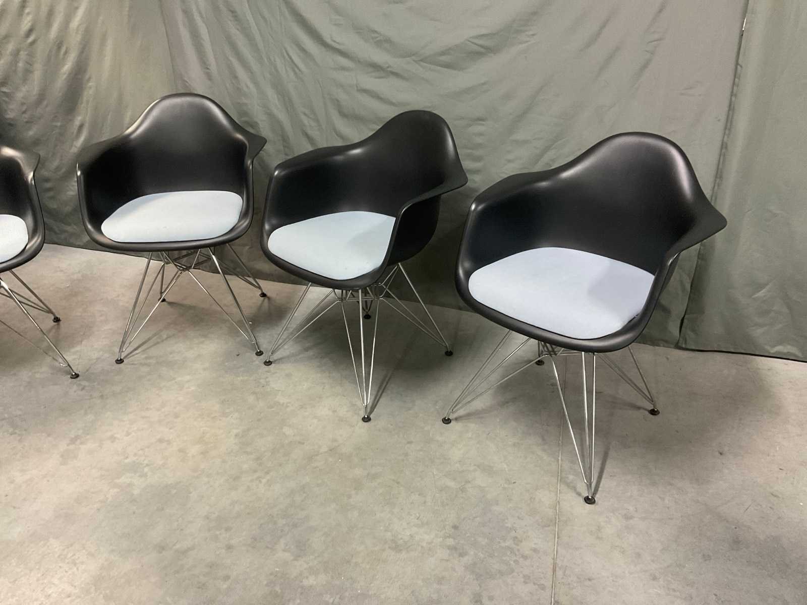 Plastic armchair voorzien van zitkussen en chroom onderstel Zithoogte ca. 43 cm Tafel niet inbegrepen Kunstenaar: Charles en Ray Eames Fabrikant: Vitra Model: DAR Handtekening/stempel: true Lengte: 63cm Breedte: 59cm Hoogte: 83cm