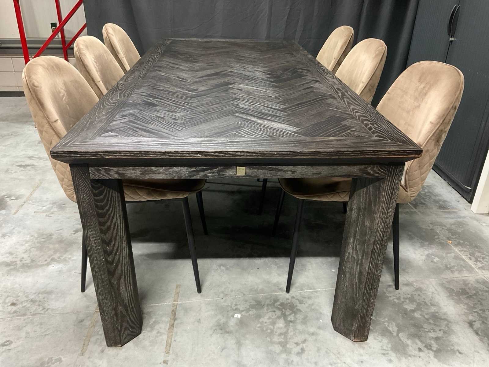 Merk: Rivièra Maison Model: Gold label Product type: Belmont Kleur: Donkerbruin/zwart Lengte: 220cm Breedte: 100cm Hoogte: 77cm Materiaal: Eiken