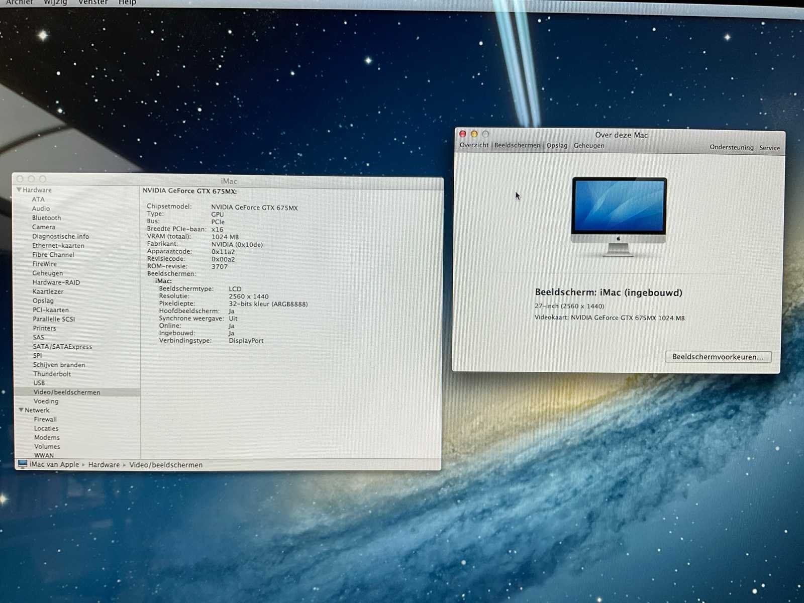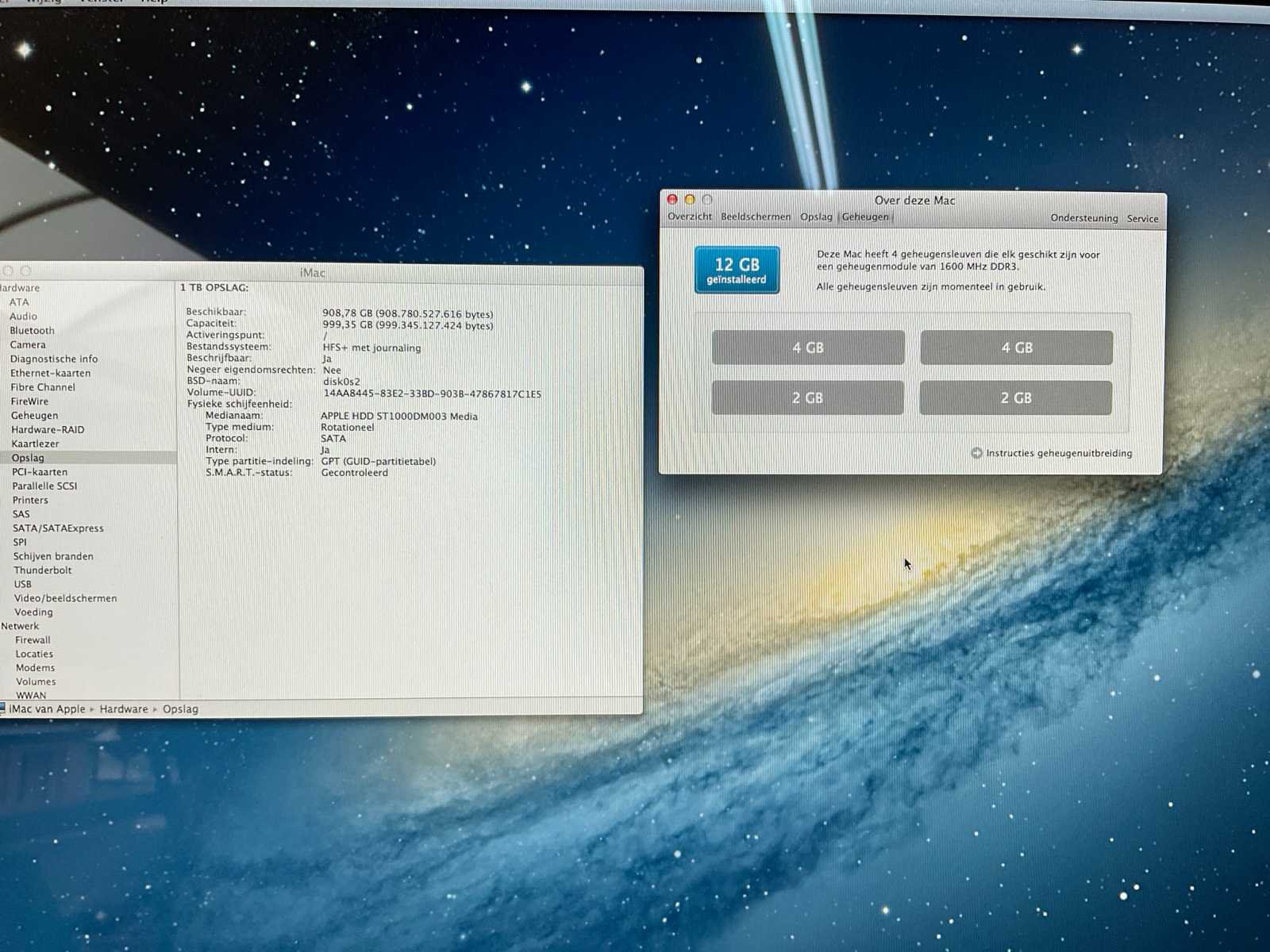 Merk: Apple Type: 27 inch Processor type: Intel core i5 Processor snelheid: 3.2Ghz Besturingssysteem: Os x RAM Geheugen Type: 12 Opslagcapaciteit: 1000GB Wifi: true Ethernet: 1 USB poorten: 4 Met voedingskabel: true Beelddiagonaal: 27''