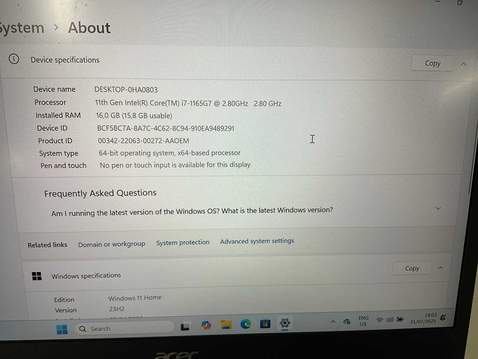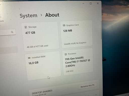 Merk: Acer Type: Aspire A514-54 Processor type: 11th gen intel core i7 Processorsnelheid Ghz: 2,8 RAM Geheugen: 16GB Totale opslagcapaciteit: 500GB Besturingssysteem: Windows 11 home Met adapter: true Wifi: true USB poorten: 3 Koptelefoon aansluiting: true Webcam: true