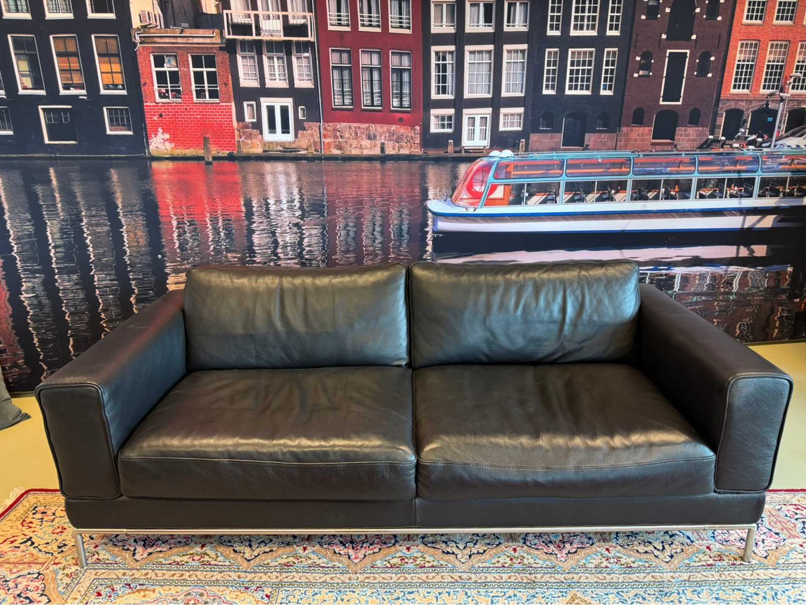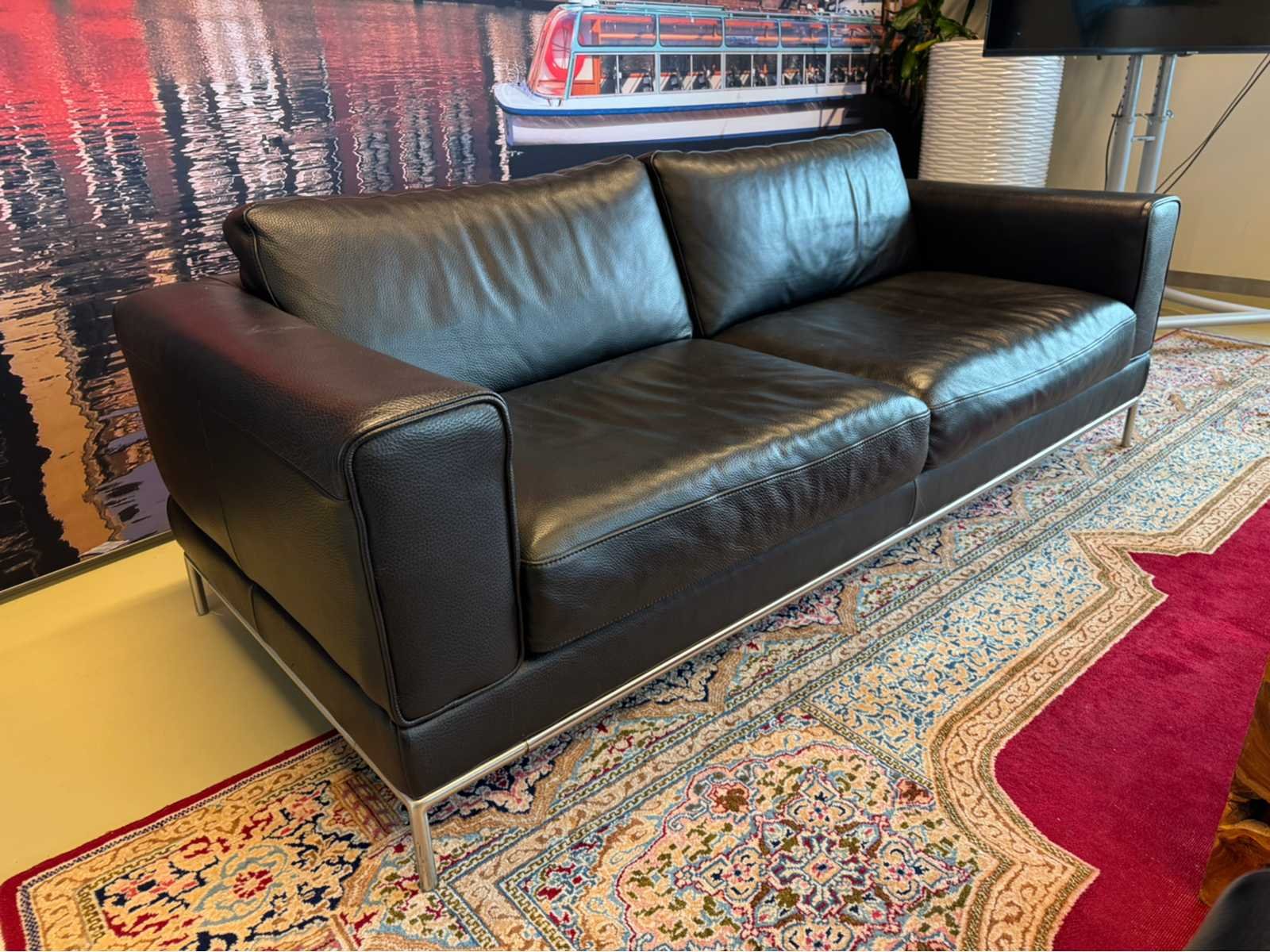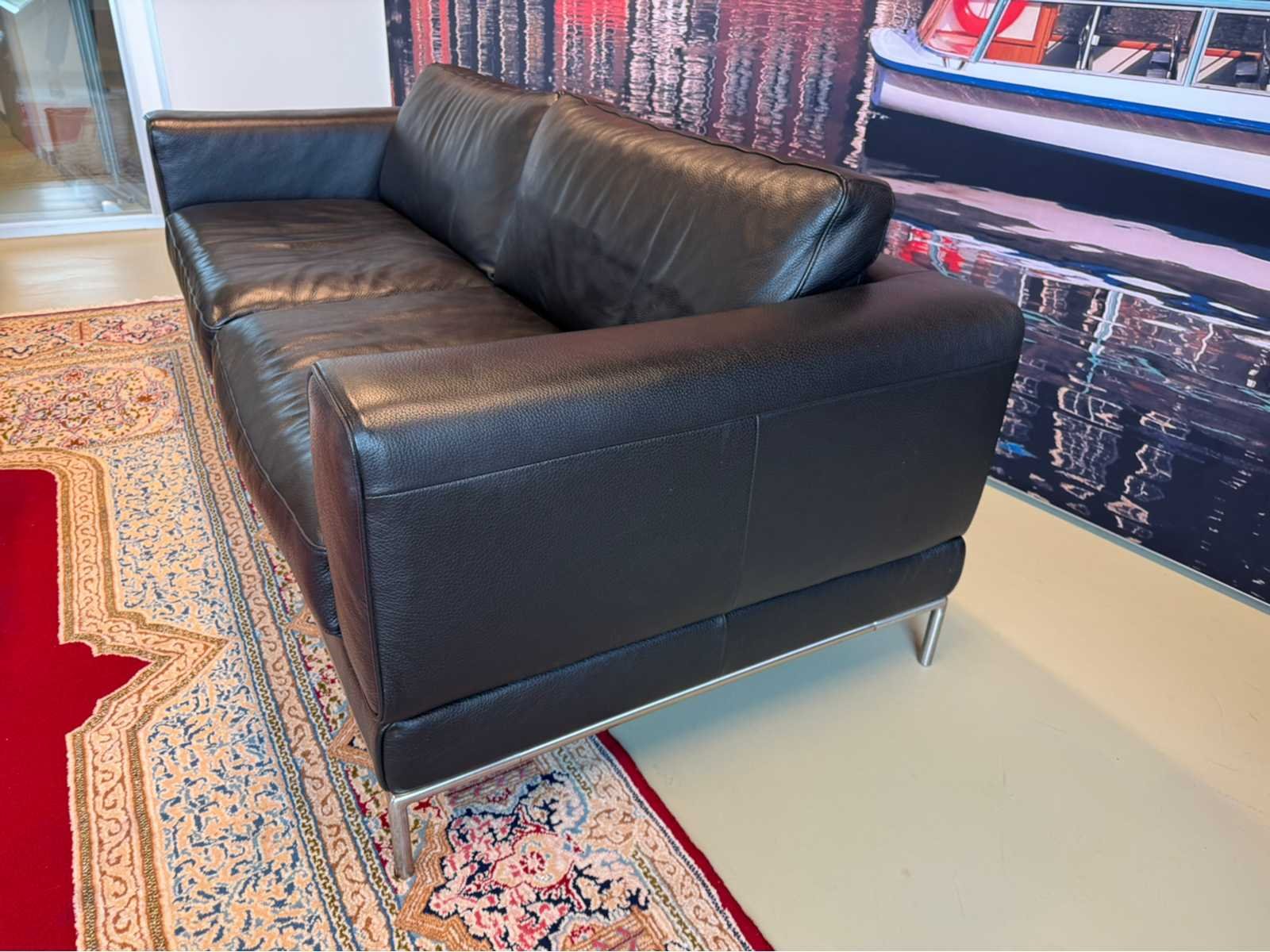 Voorzien van uitneembare kussens Op metalen poten Zitplaatsen: 2.5 Lengte: 205cm Breedte: 90cm Hoogte: 75cm Zithoogte: 40cm Diepte: 55cm Materiaal: Kunstleder