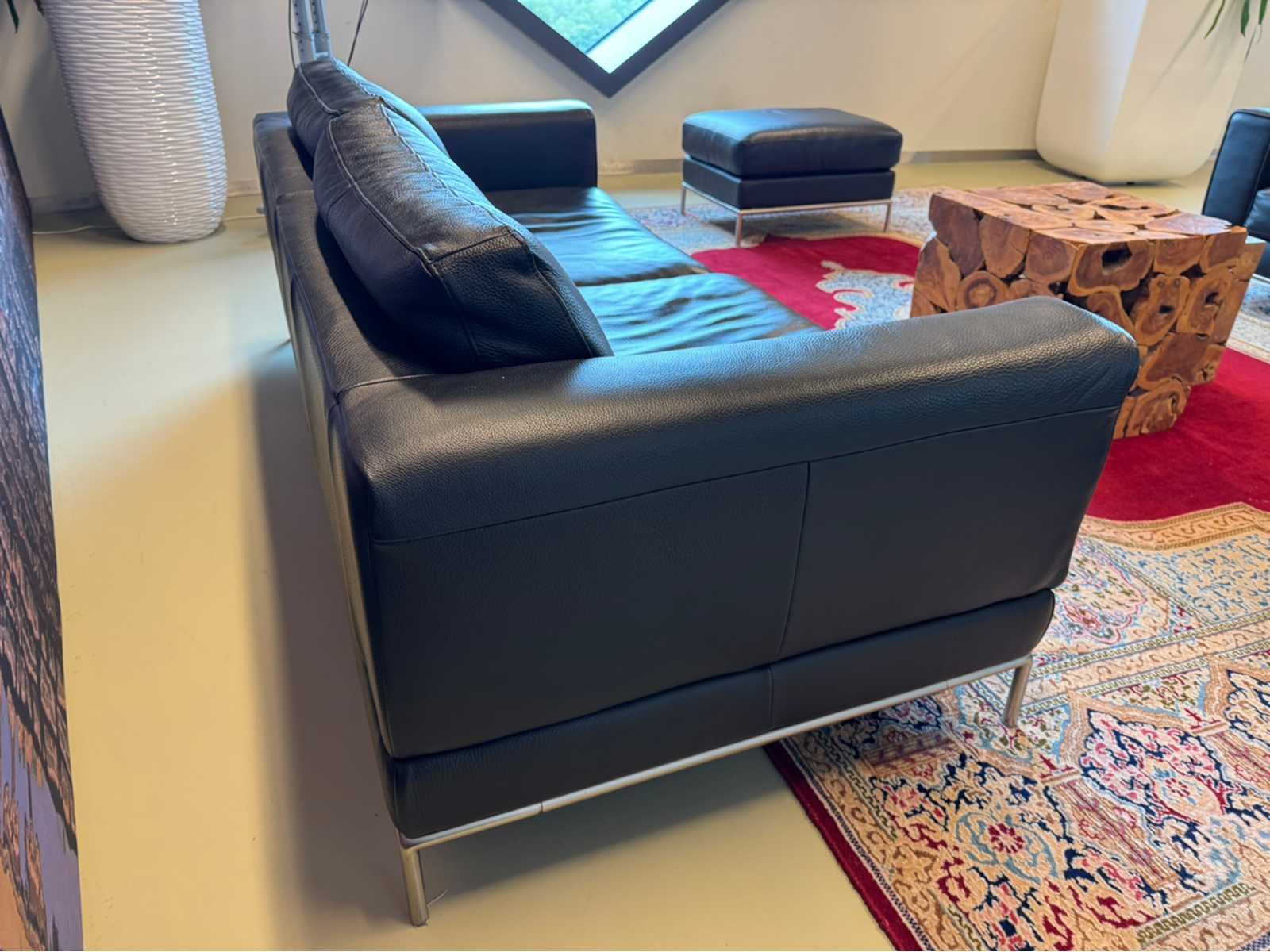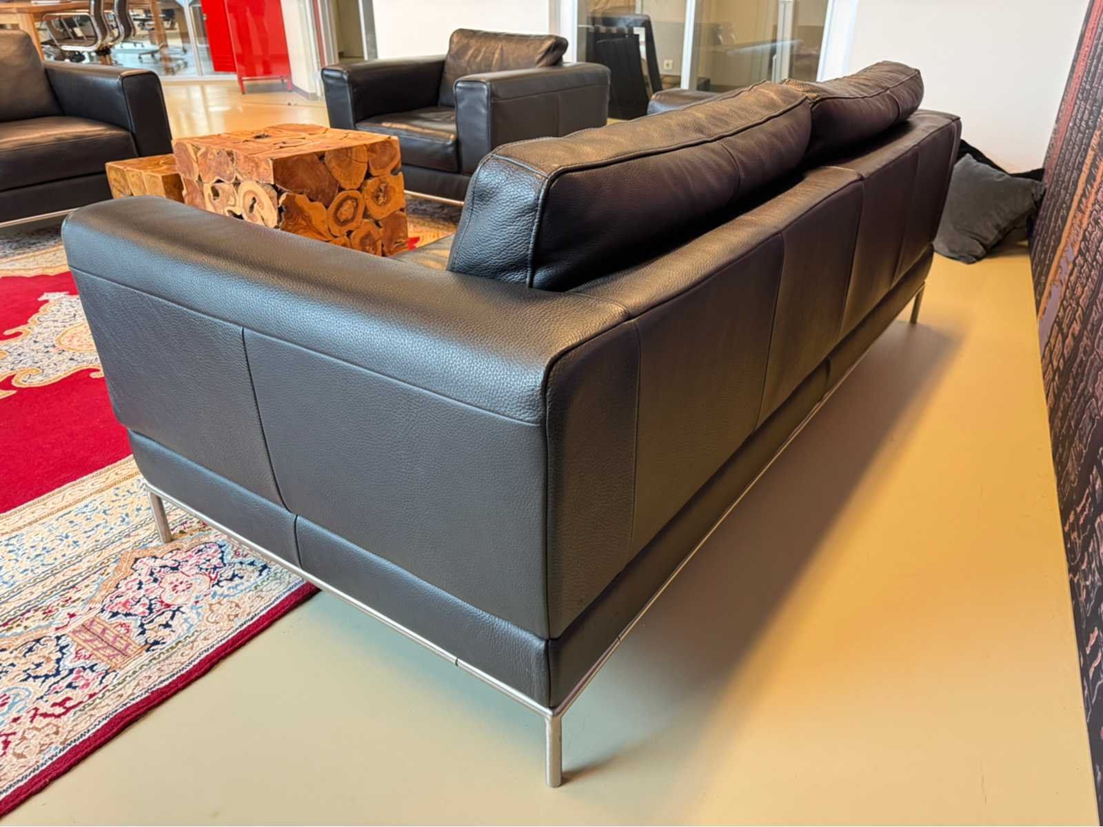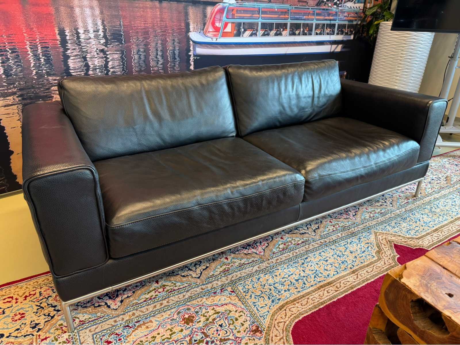 Voorzien van uitneembare kussens Op metalen poten Zitplaatsen: 2.5 Lengte: 205cm Breedte: 90cm Hoogte: 75cm Zithoogte: 40cm Diepte: 55cm Materiaal: Kunstleder