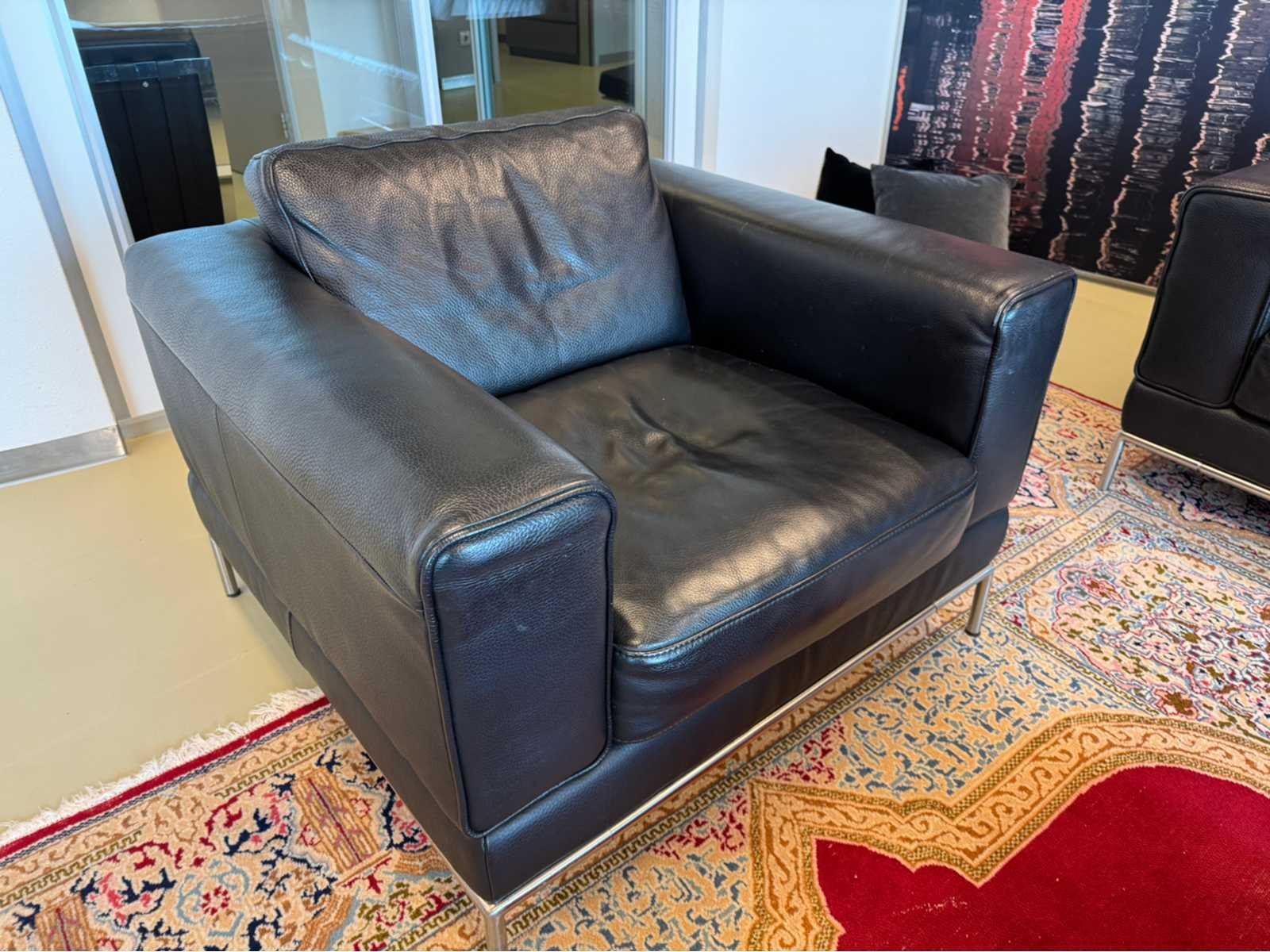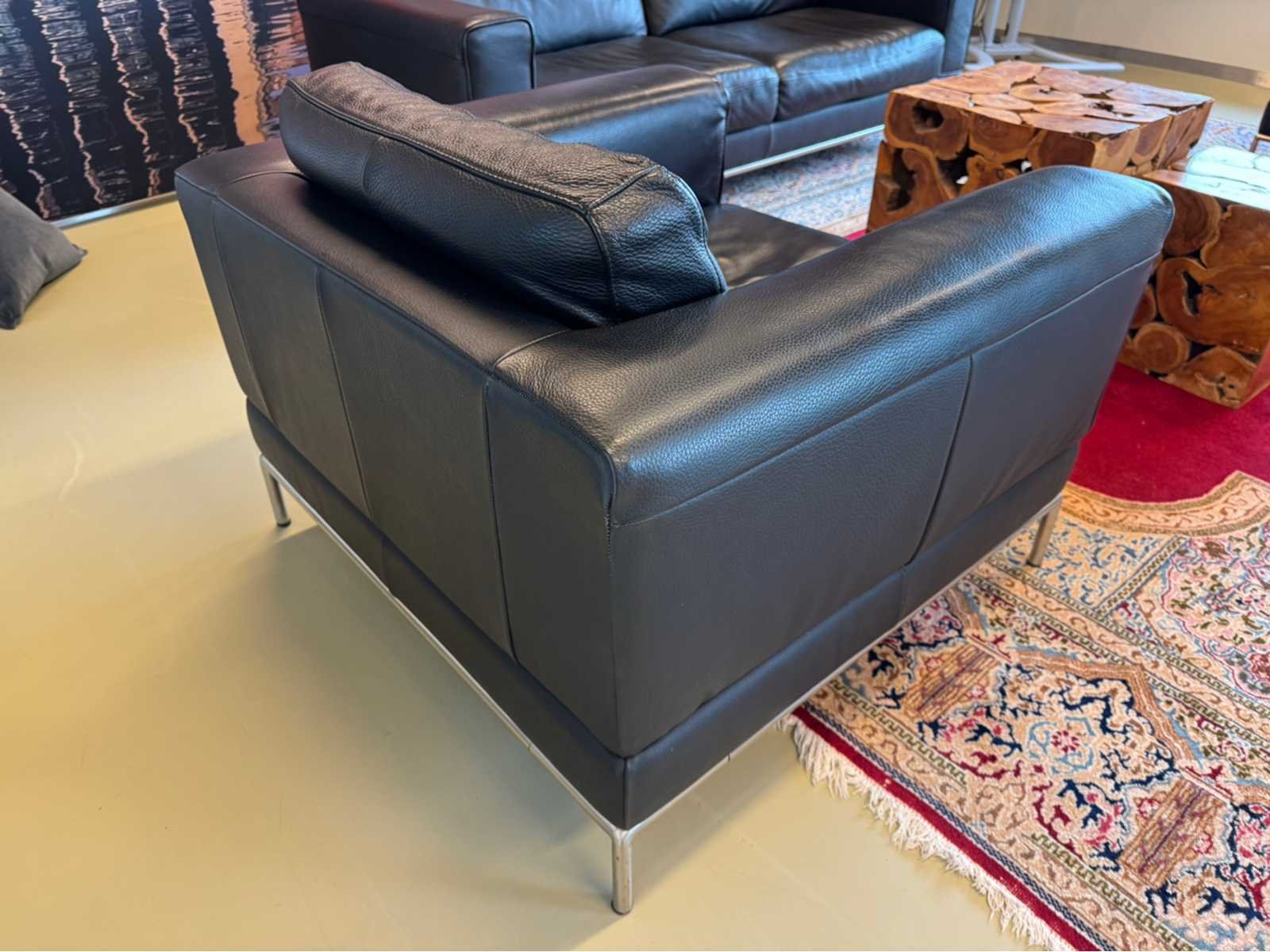 Voorzien van uitneembare kussens Op metalen poten Lengte: 90cm Breedte: 93cm Hoogte: 85cm