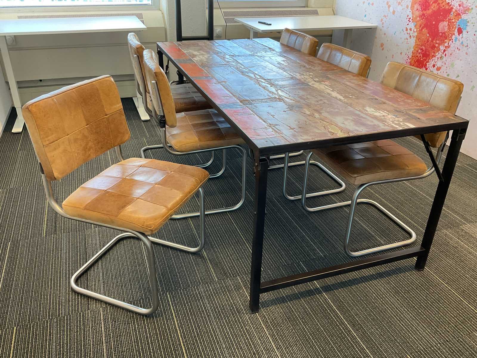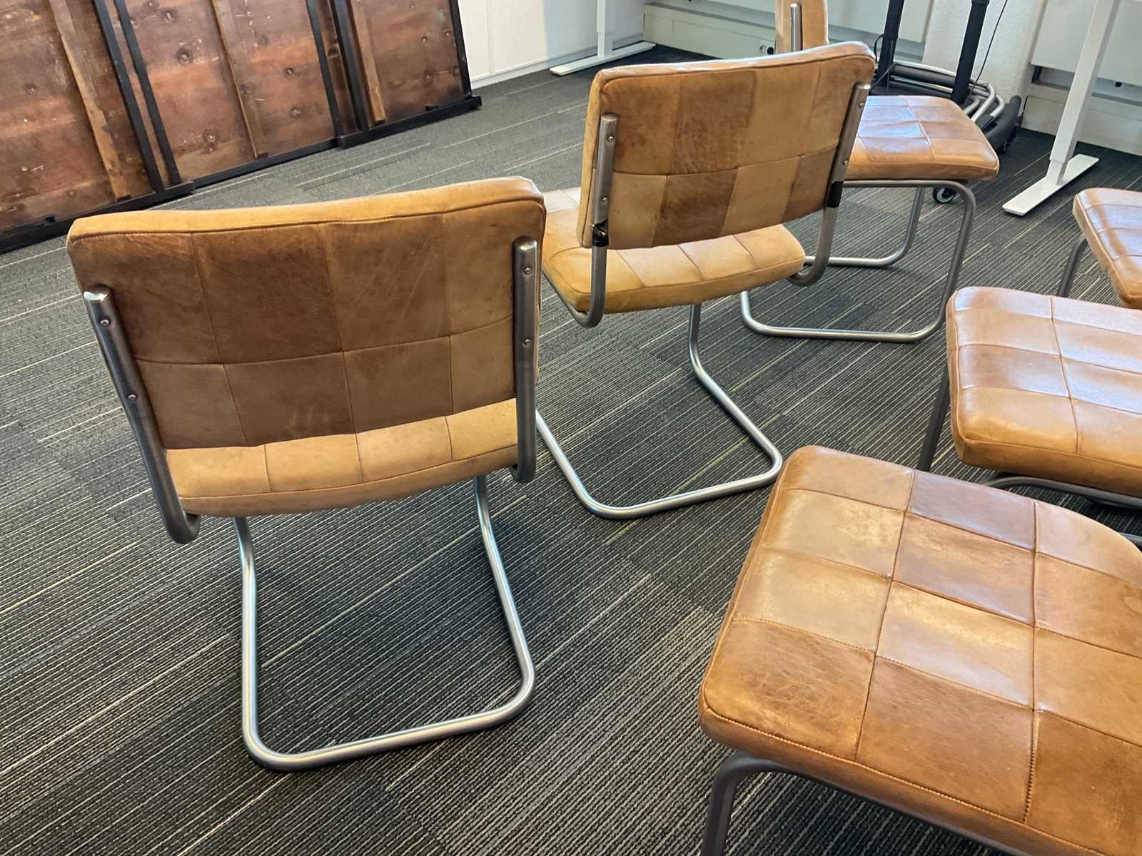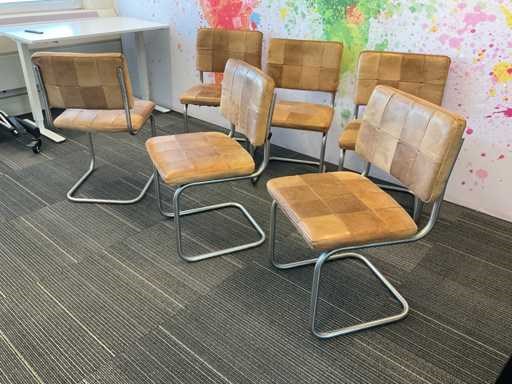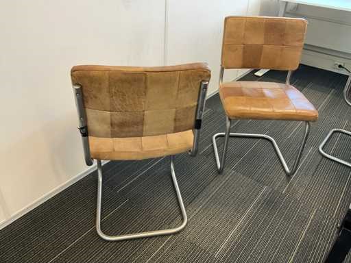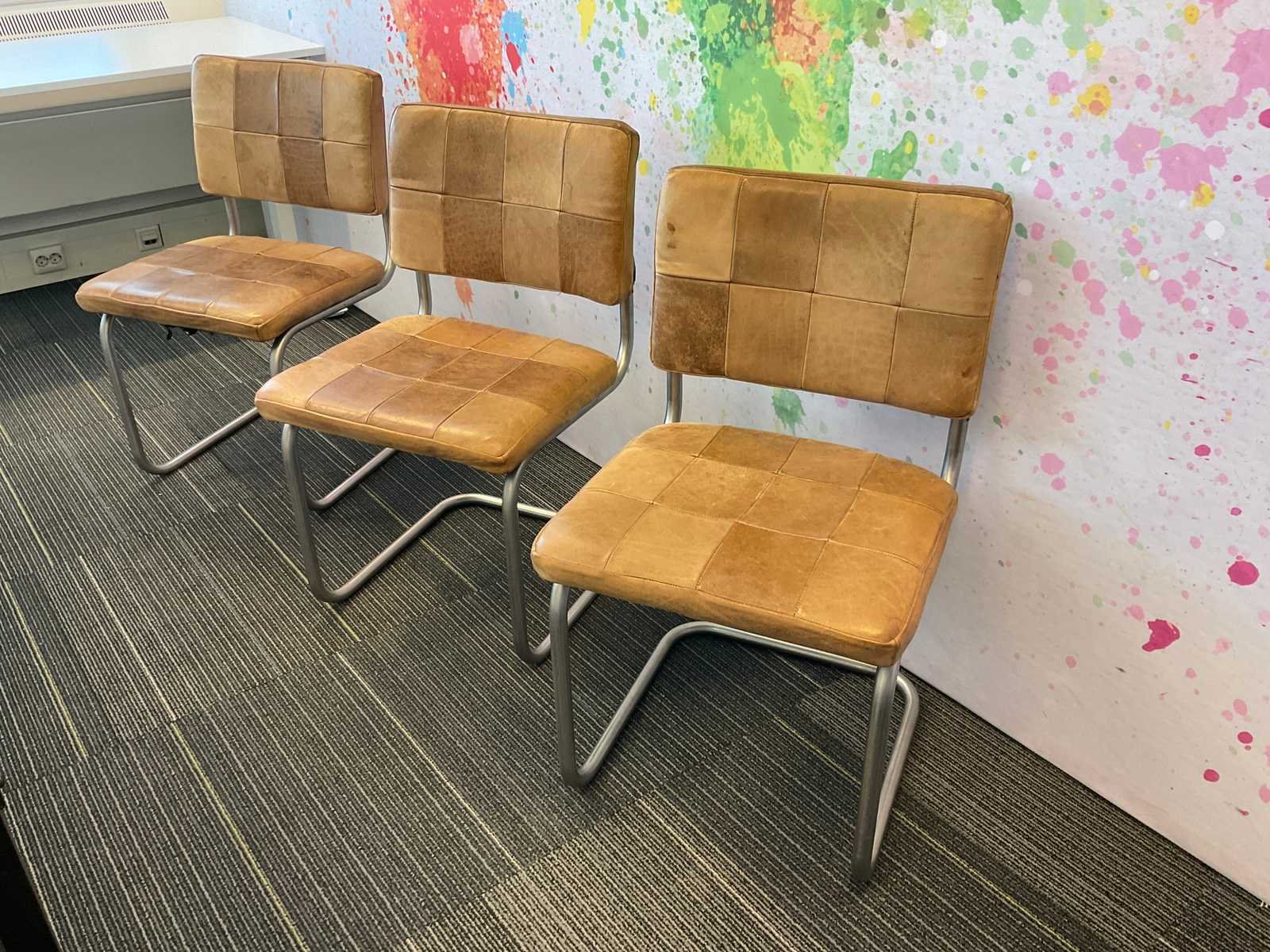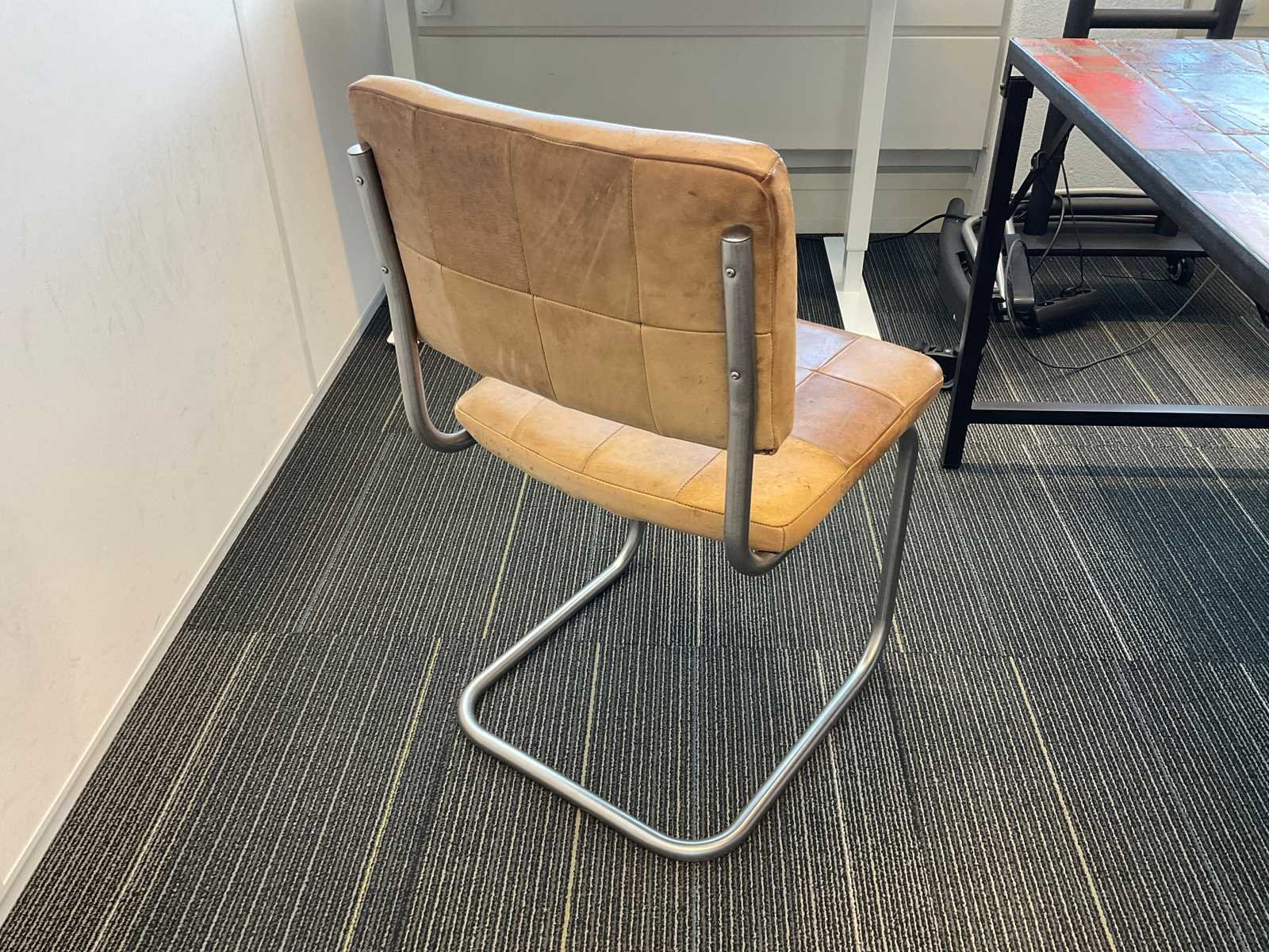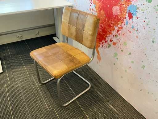 Voorzien van kunstlederen zitting, rugleuning en sledevoet Lengte: 51cm Breedte: 50cm Hoogte: 85cm Zithoogte: 49cm Diepte: 45cm