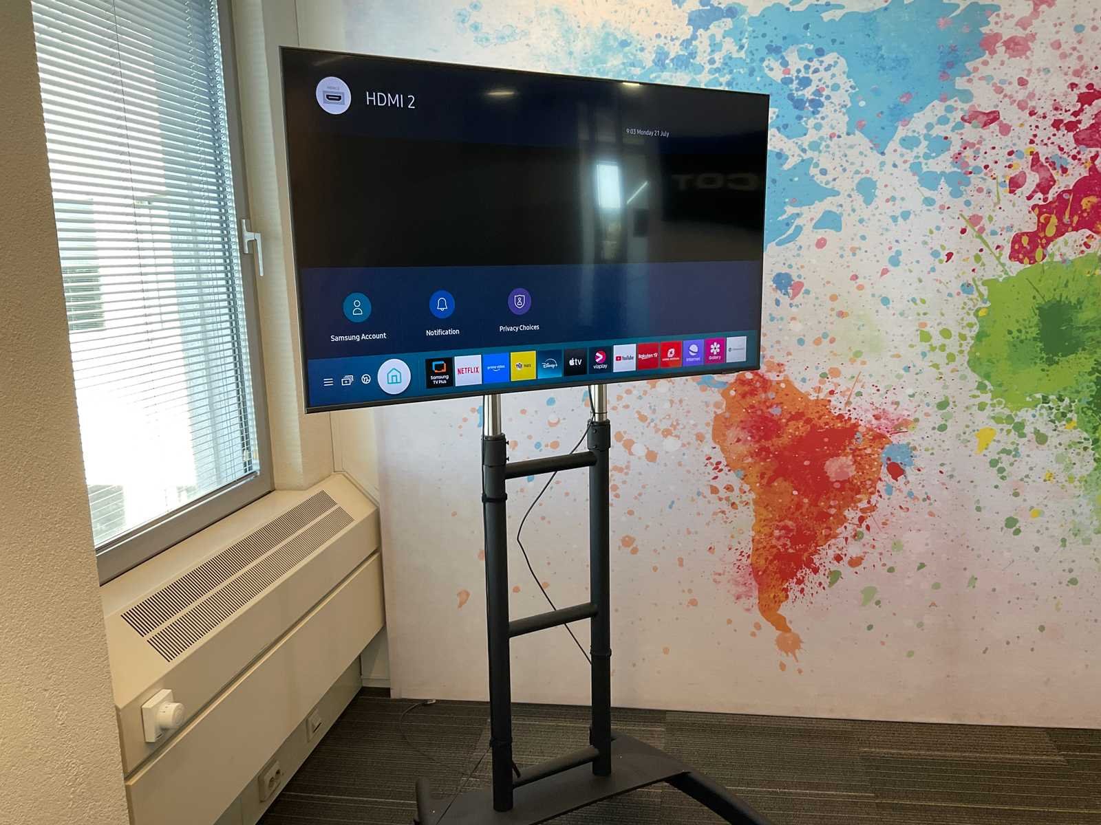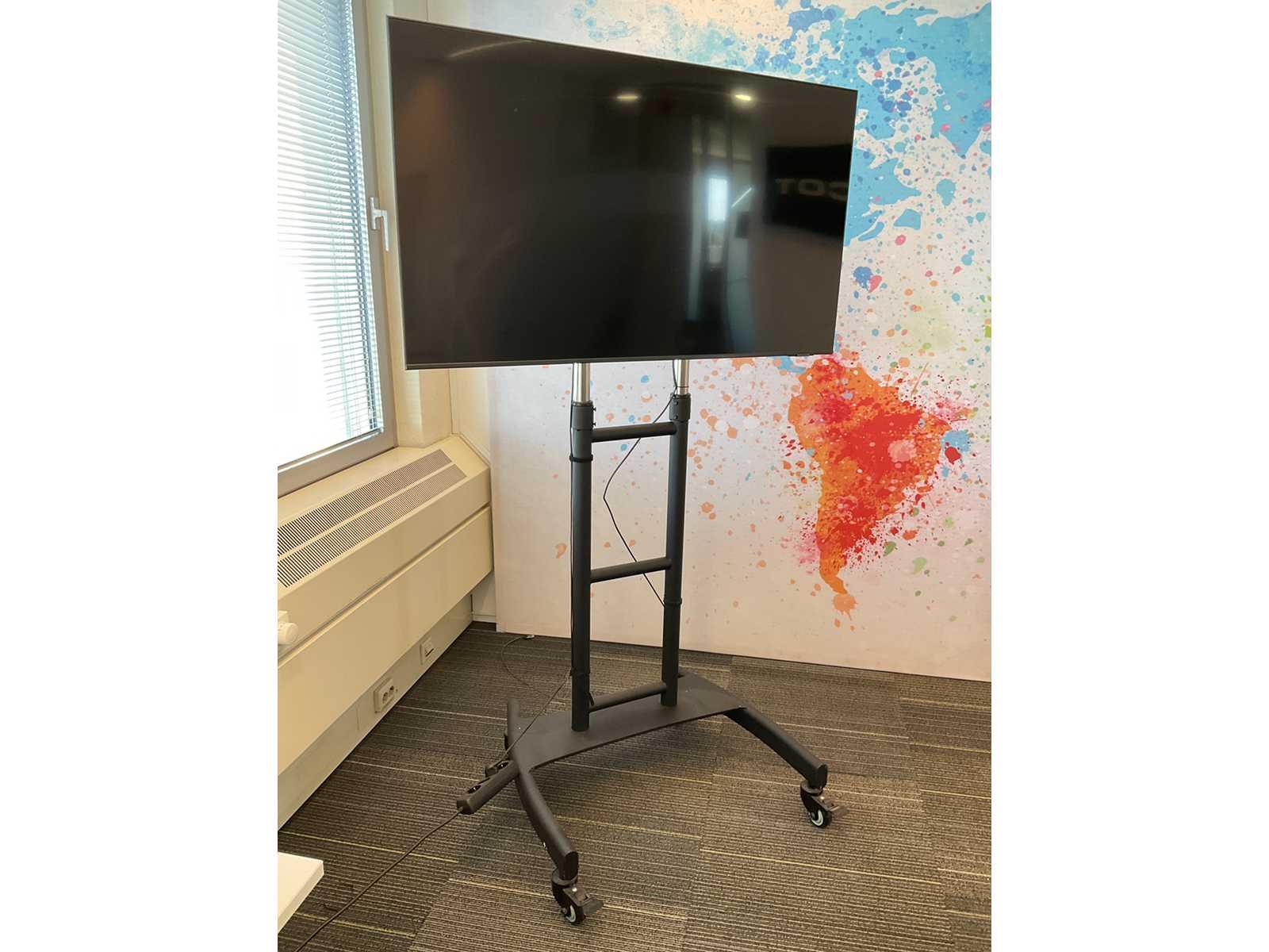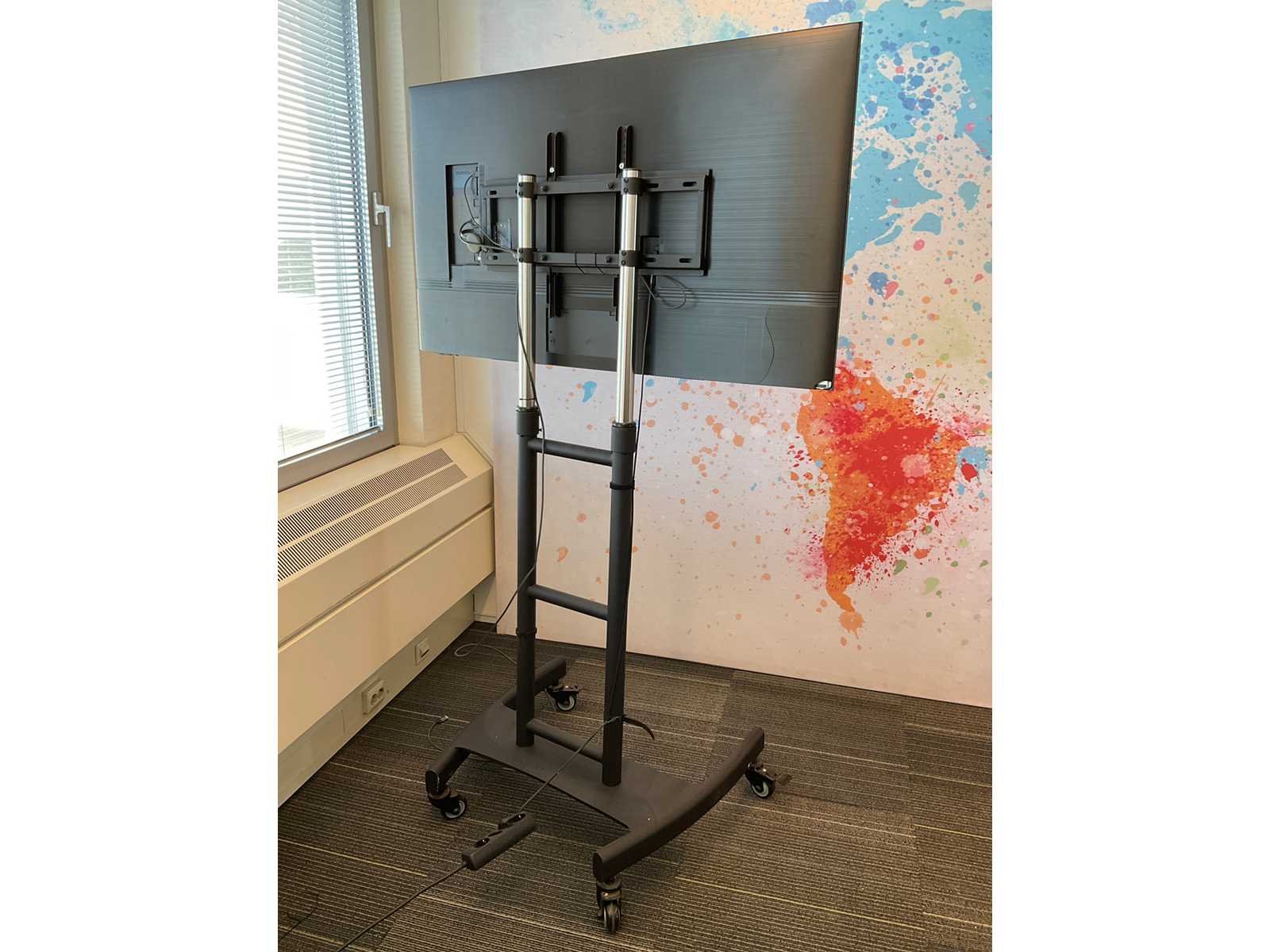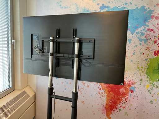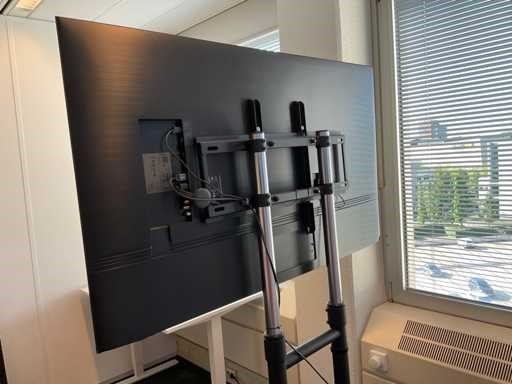 Voorzien van afstandsbediening. Op verrijdbaar in hoogte verstelbaar onderstel. Alsmede voet Merk: Samsung Model: QE55Q74AAT Beelddiagonaal: 55'' USB: 2 HDMI: 4 Smart TV: true Lengte: 123cm Breedte: 70cm