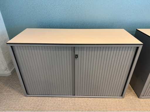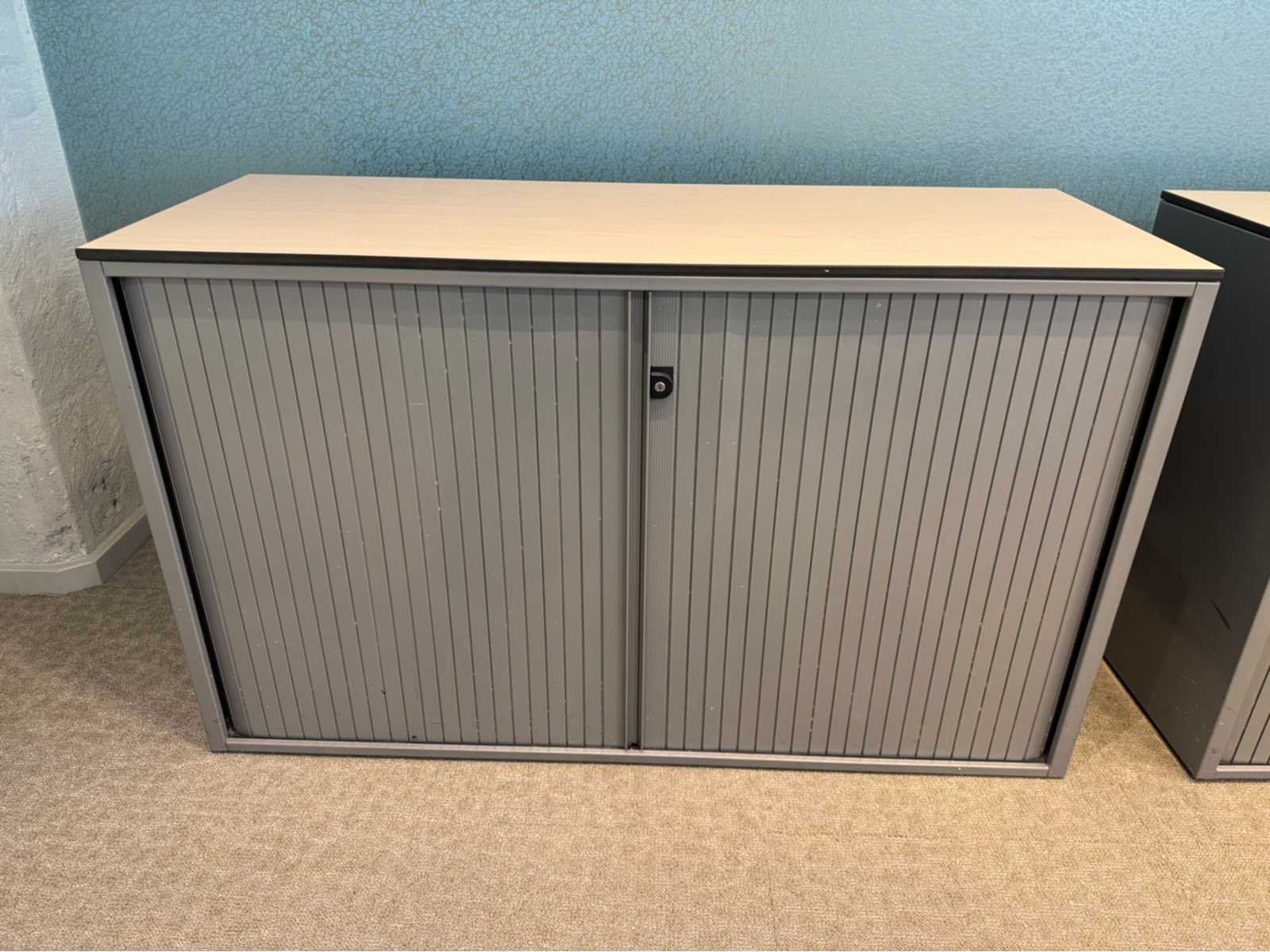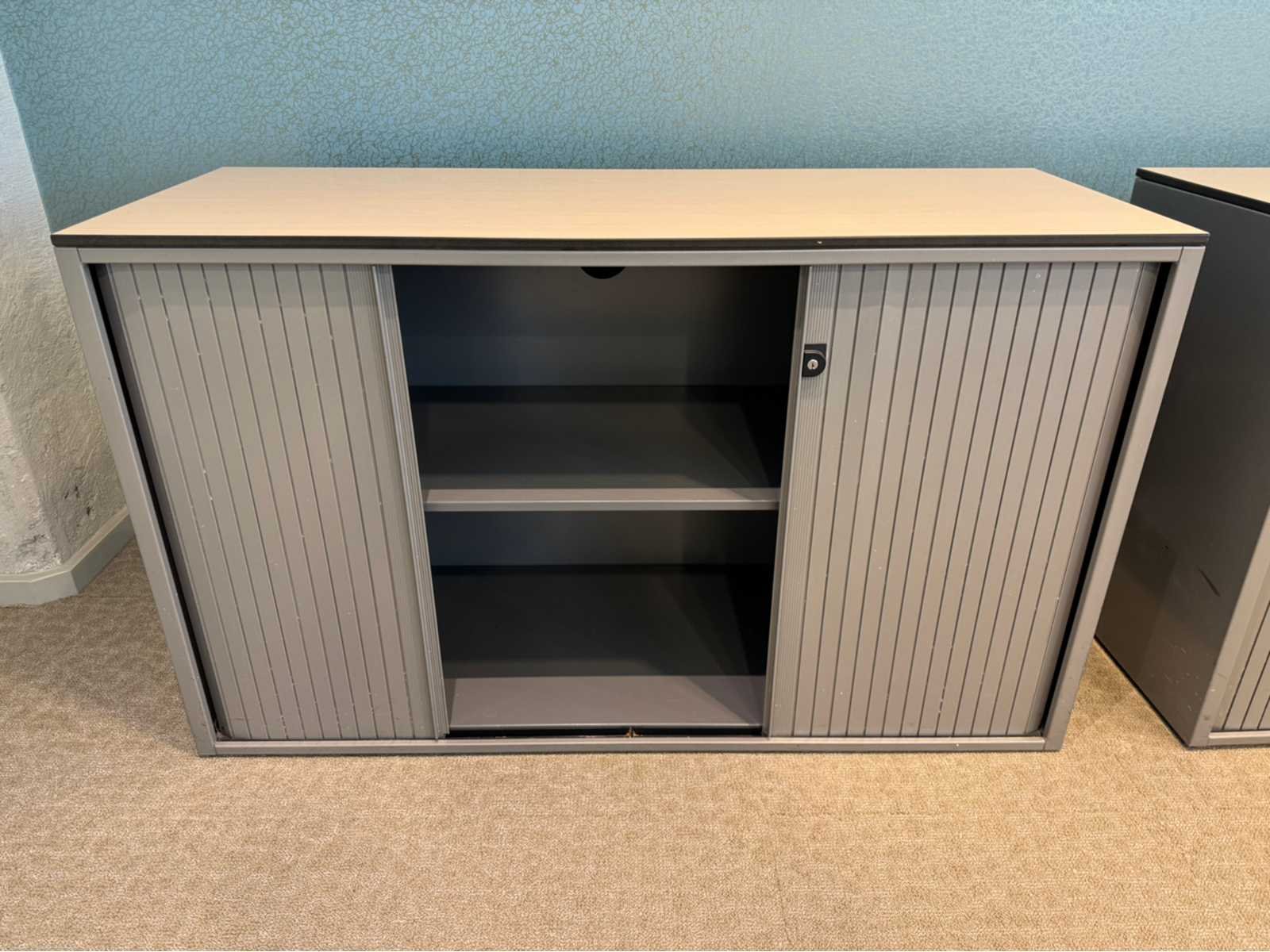 Voorzien van trespa houtnerf topblad en 1 legbord Merk: Ahrend Lengte: 120cm Breedte: 45cm Hoogte: 72cm