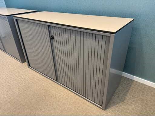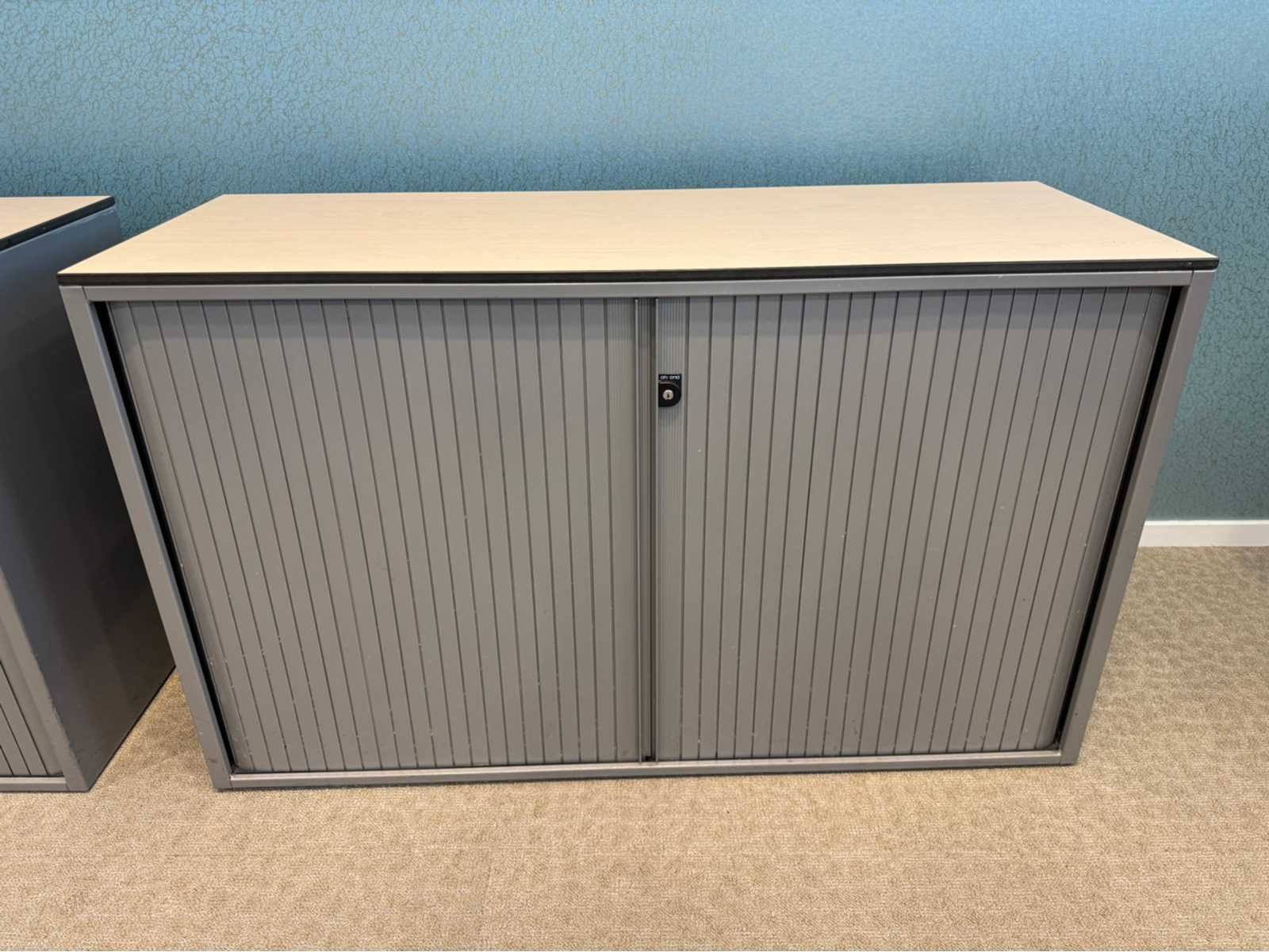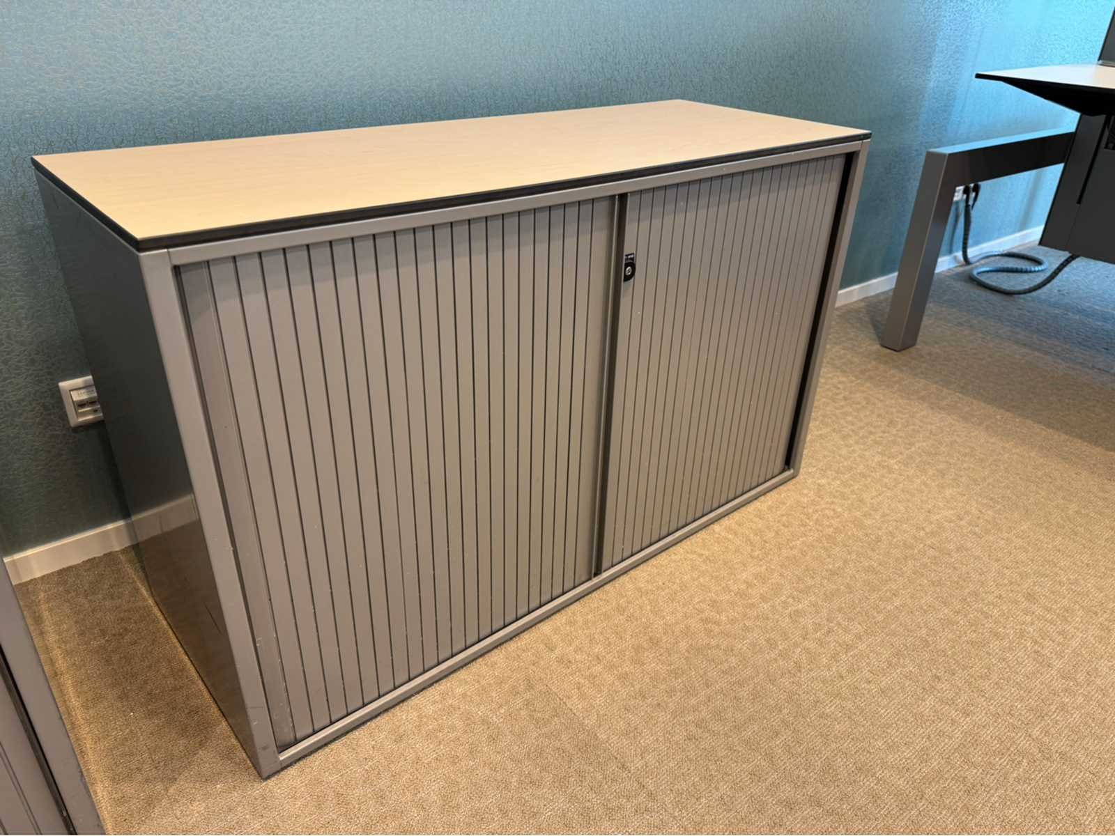 Voorzien van trespa houtnerf topblad en 1 legbord Merk: Ahrend Lengte: 120cm Breedte: 45cm Hoogte: 72cm