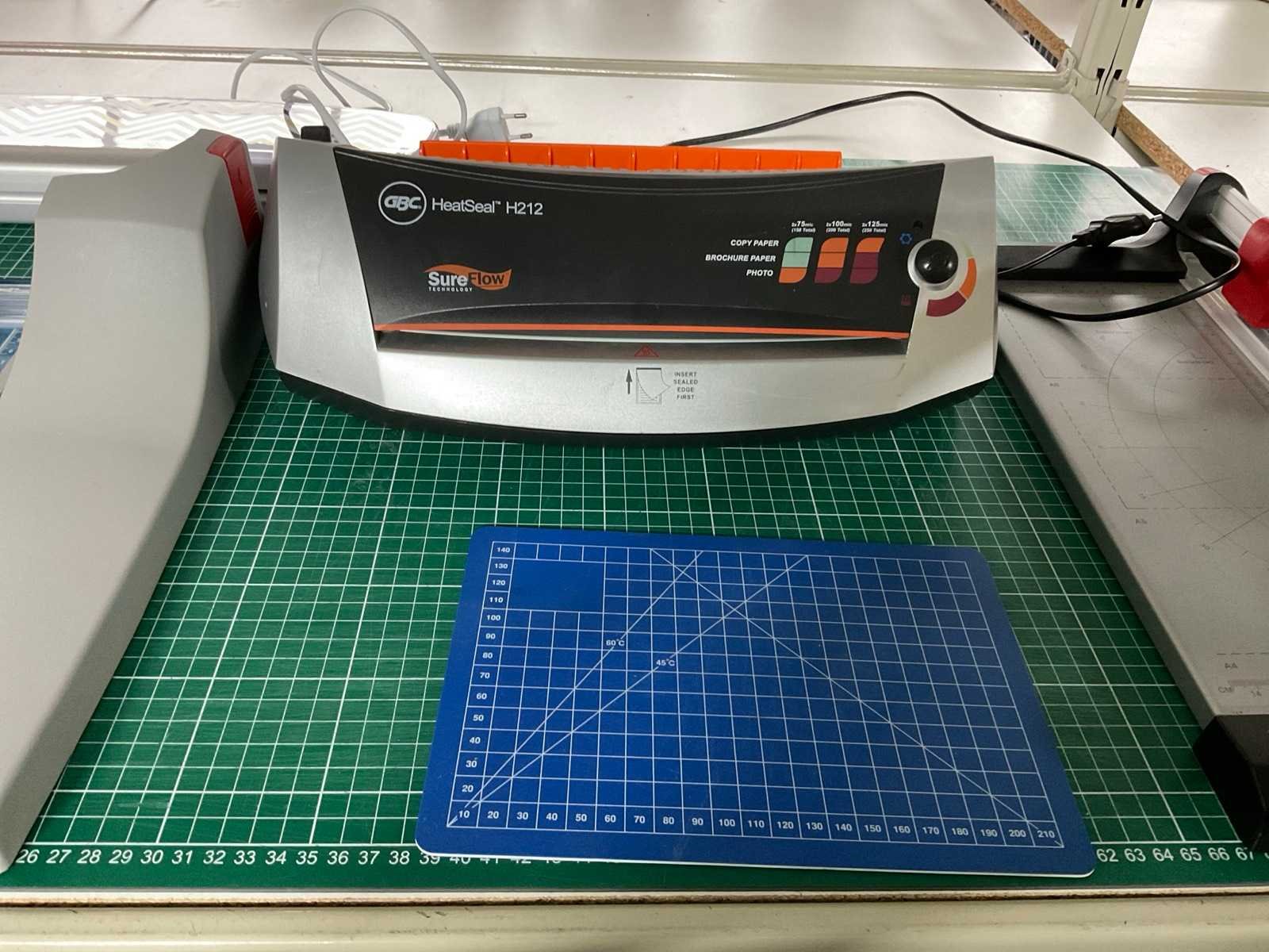 Diverse formaten snijmachines, GBC heatseal H212, lamineermachine, snijmatten en inbindringen Merk: Dahle Model: 444