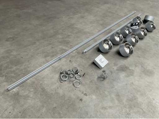 Bestaande uit 1x 3 meter rails, 1x 2 meter rails, 1x Famostar velo VS va-2 noodverlichting led spots, 10 stuks led spots 3000 lumen 28 watt en bevestiging kabels. Set bevat geen connectoren Merk: Oktalite Model: Downlight track Met lichtbron: true
