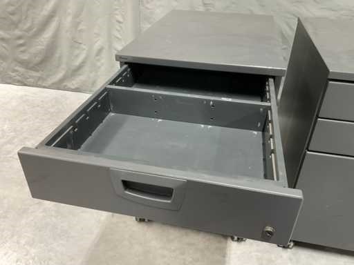 Bestaande uit Bureautafel afm ca. 140x80x75 cm Bureaustoel voorzien van armleuningen en kunstlederen bekleding ladeblok afm ca. 40x60x61 cm voorzien van hangmapgedeelte en 2 laden Merk: Kinnarps Breedte: 40cm Hoogte: 61cm Diepte: 60cm
