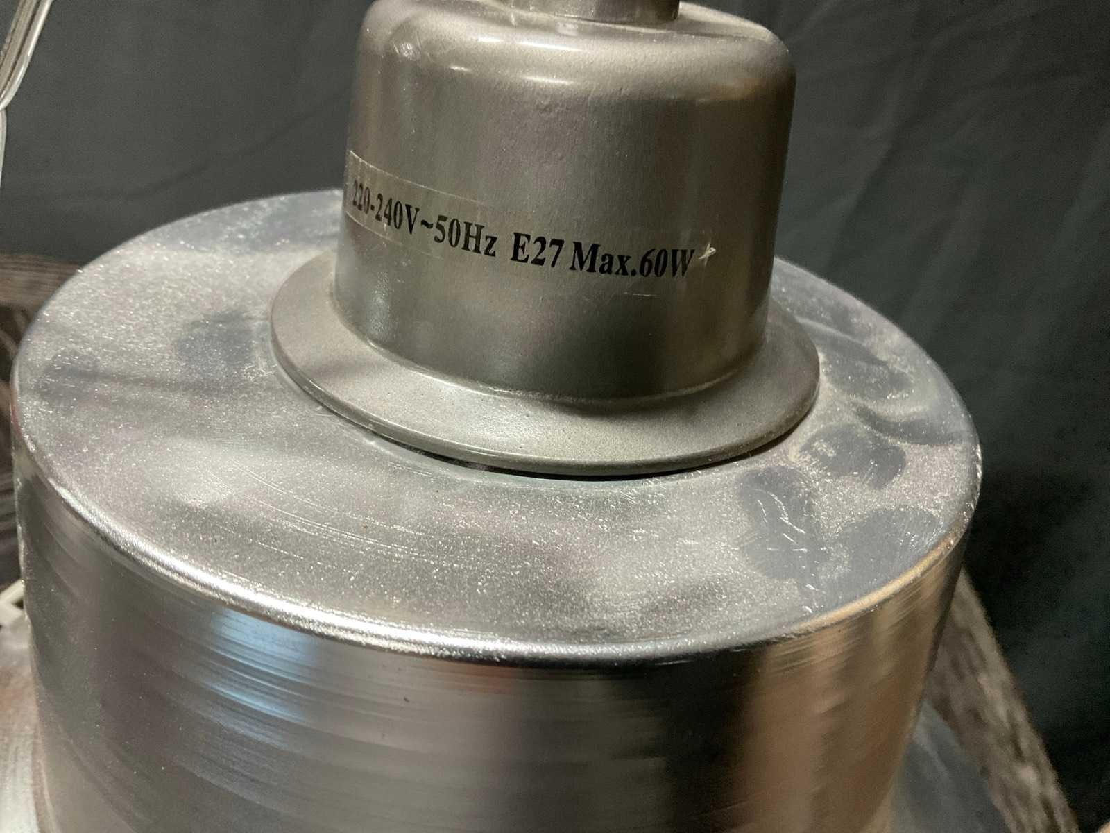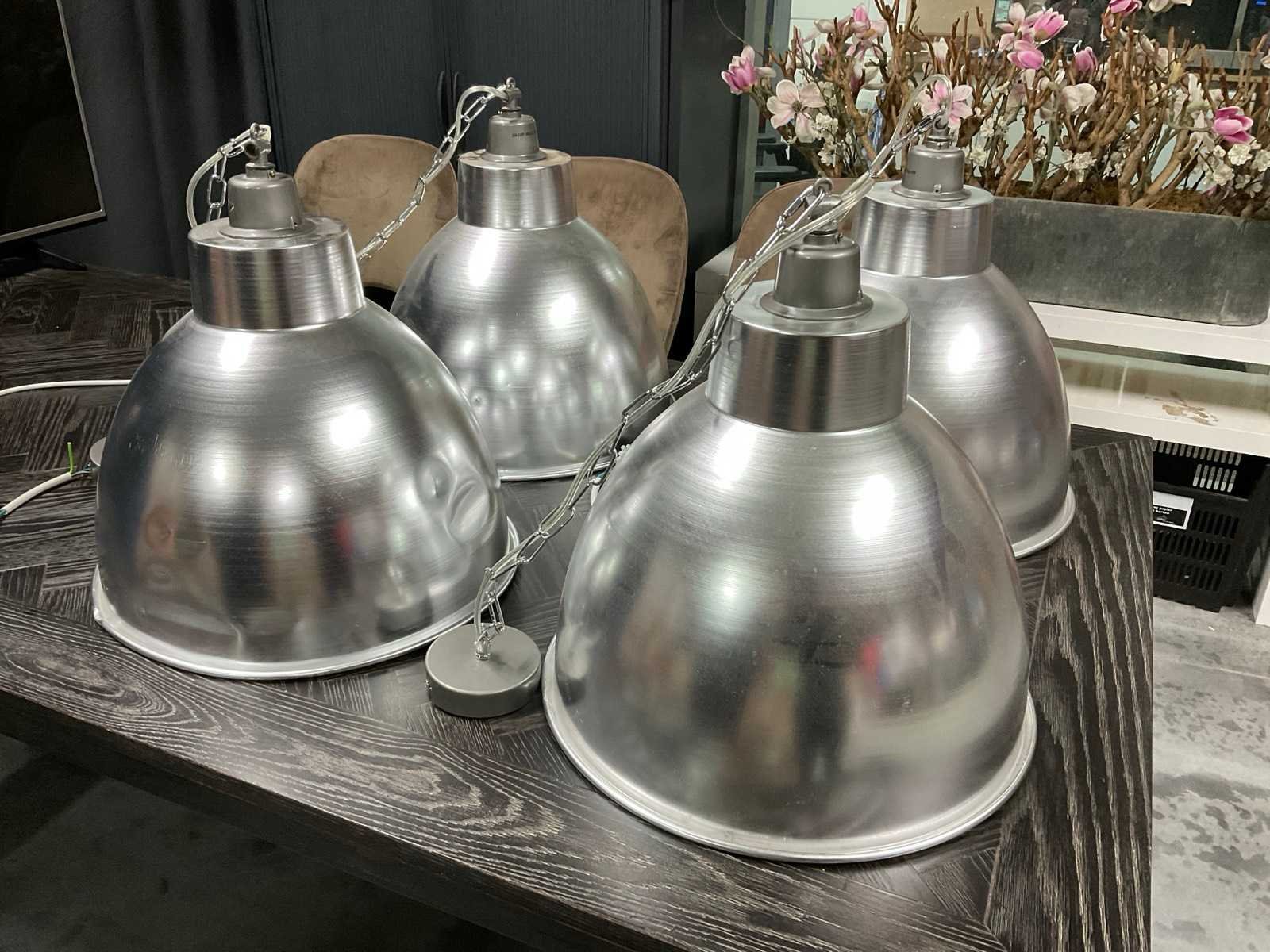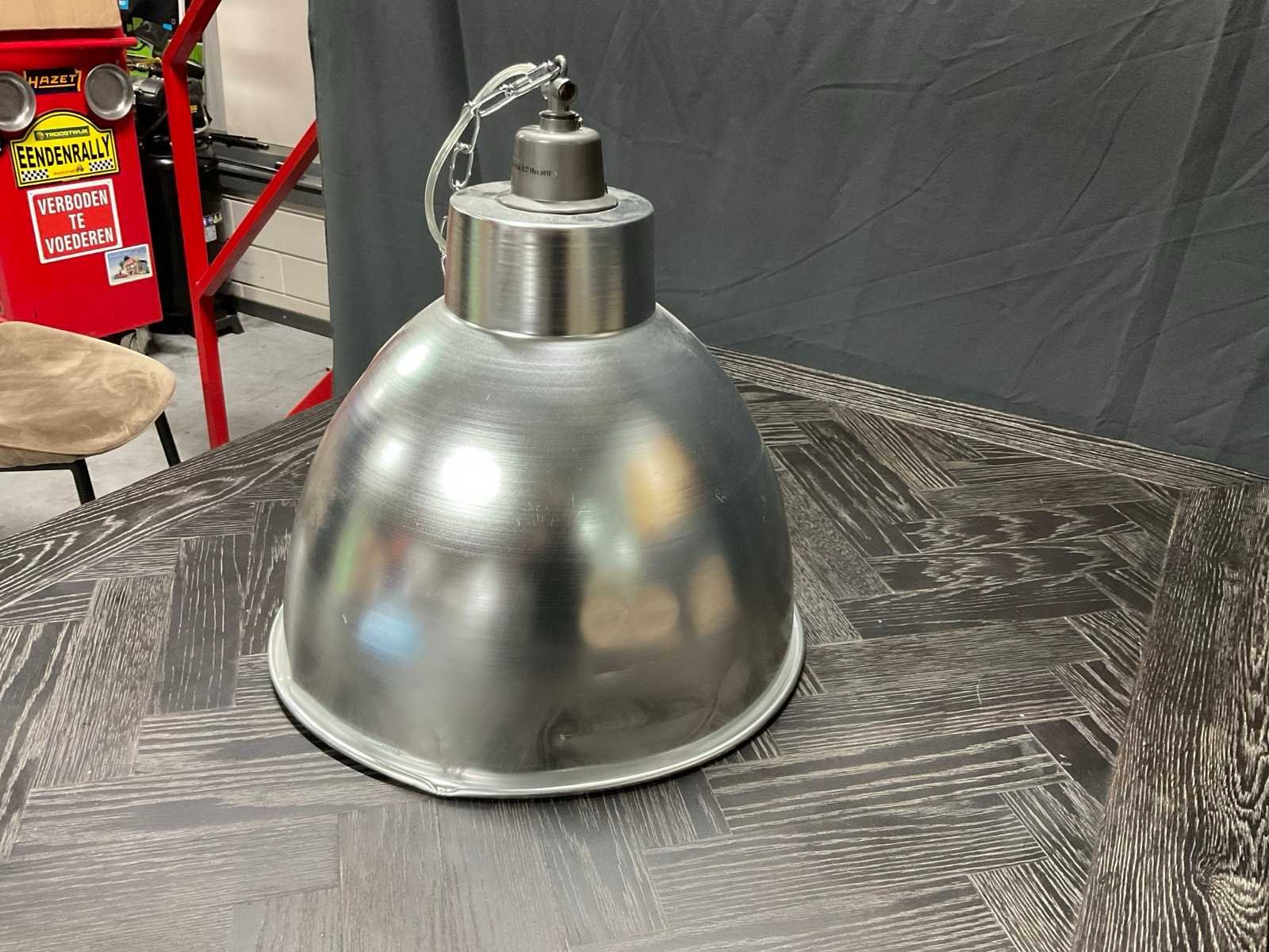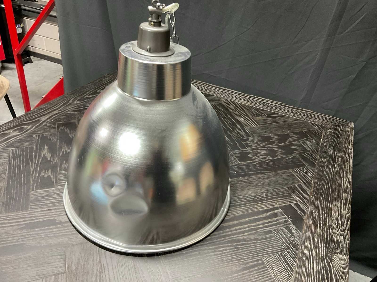 Diameter ca. 42 cm Reeds gedemonteerd Waarvan 1 beschadigd Met lichtbron: true Hoogte: 40cm Materiaal: Aluminium
